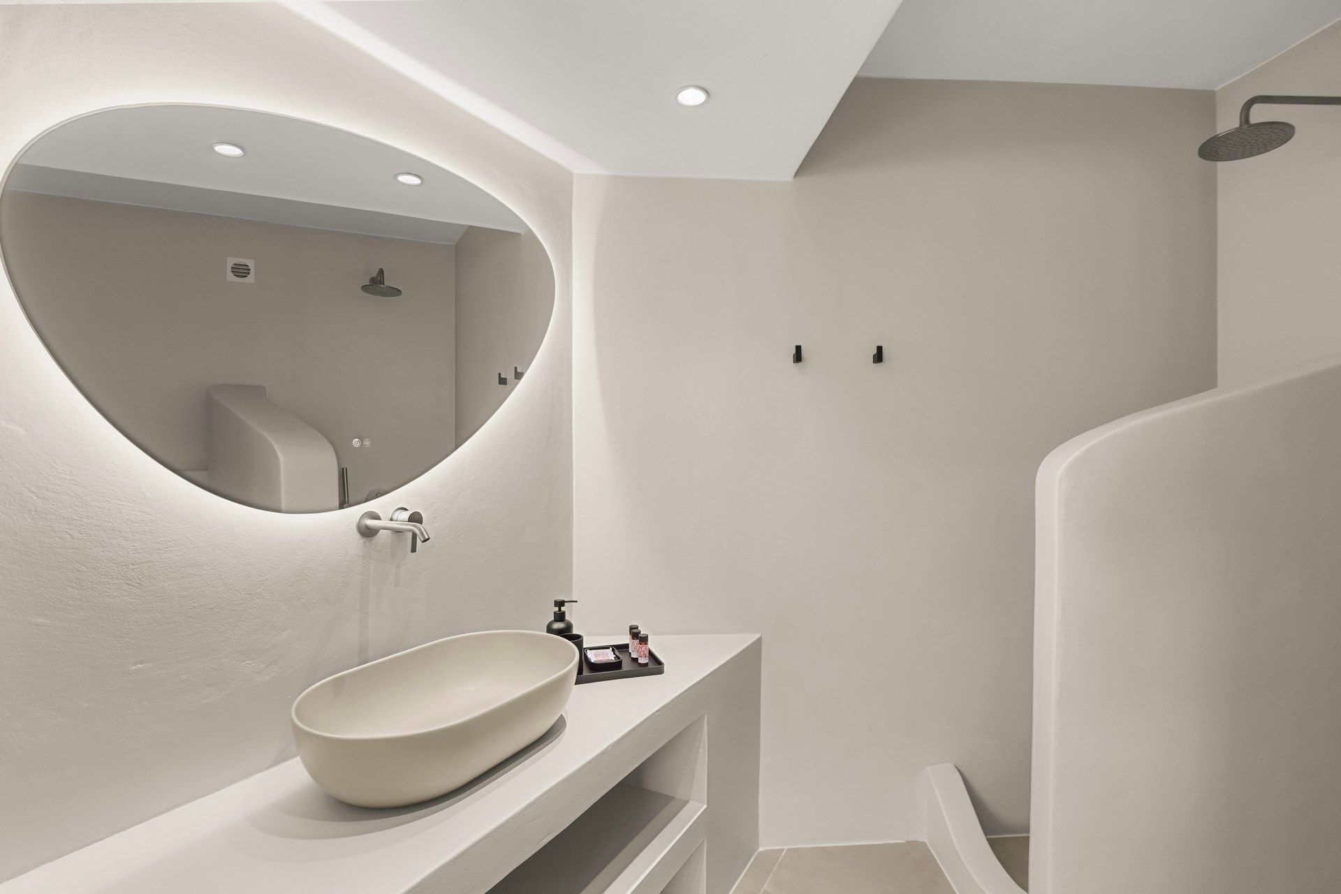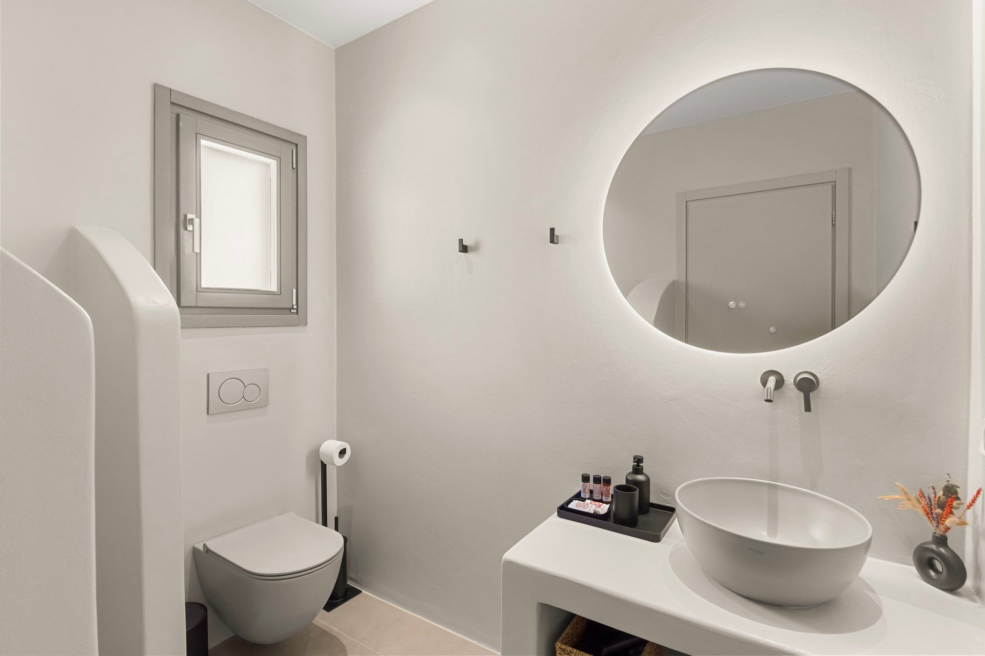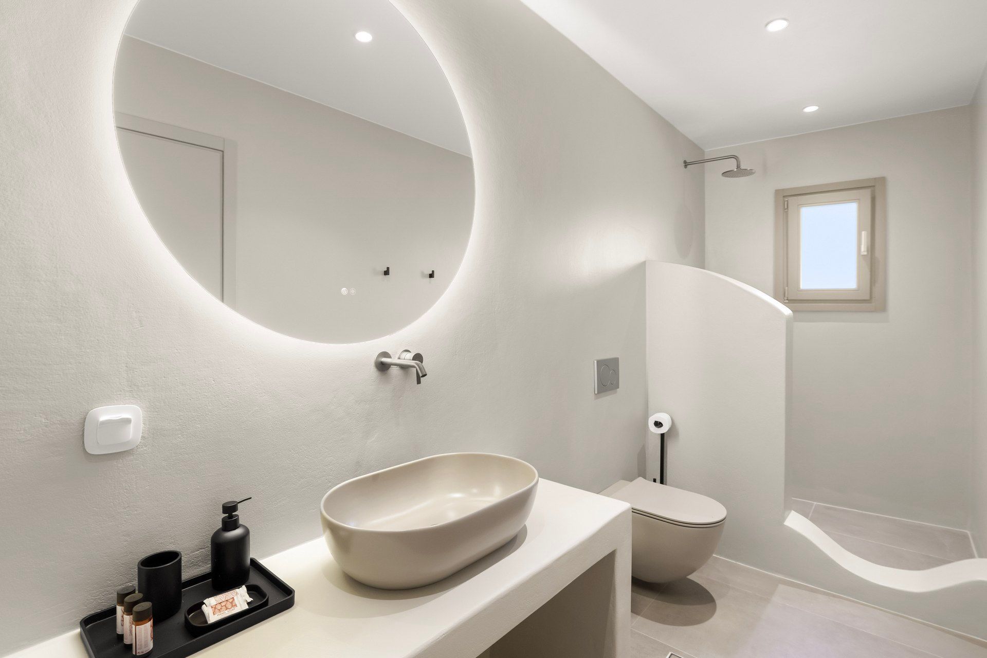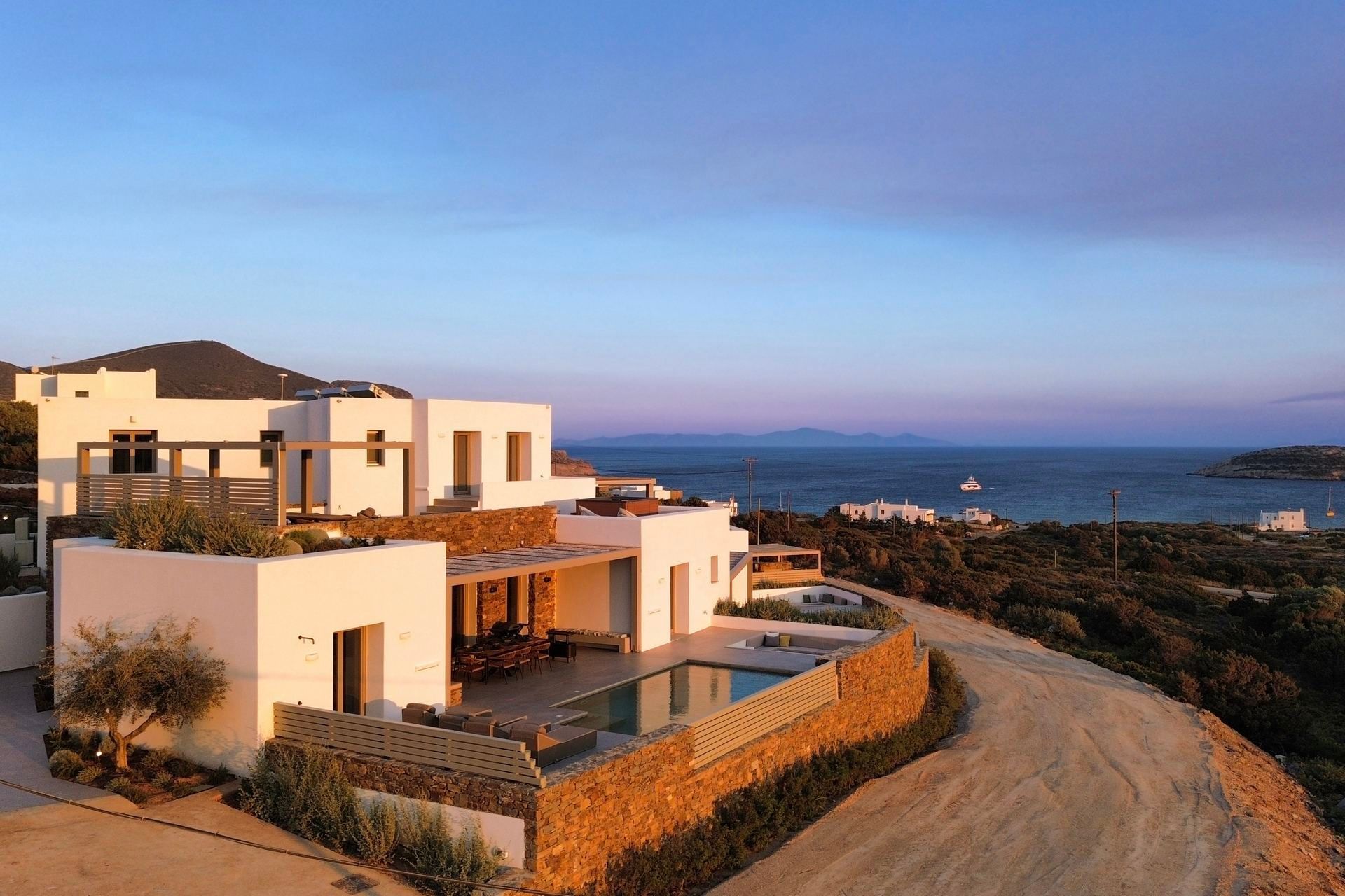 With its clear lines, open outlook, and easy connection to the coastline, Villa Abyss captures a more relaxed side of Antiparos. The villa hosts up to six guests across three bedrooms, with two on the ground floor and a master suite above, creating a layout that is compact in size but well balanced in the way it lives. There is a simplicity to the architecture that suits the setting well, with white volumes, stone details, and broad openings allowing the island light and the wider landscape to shape much of the atmosphere from the start.