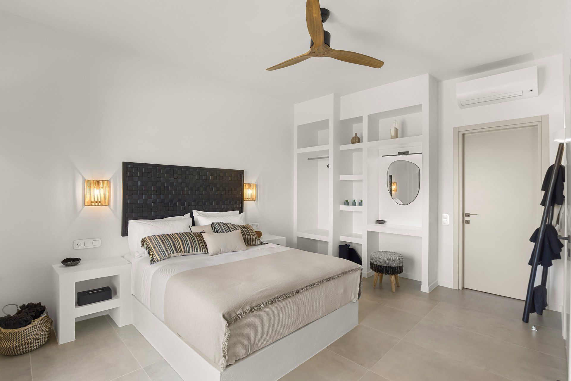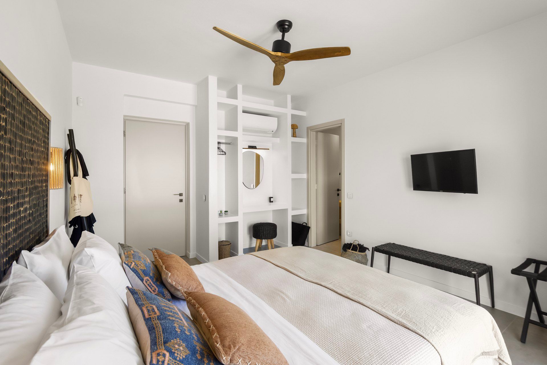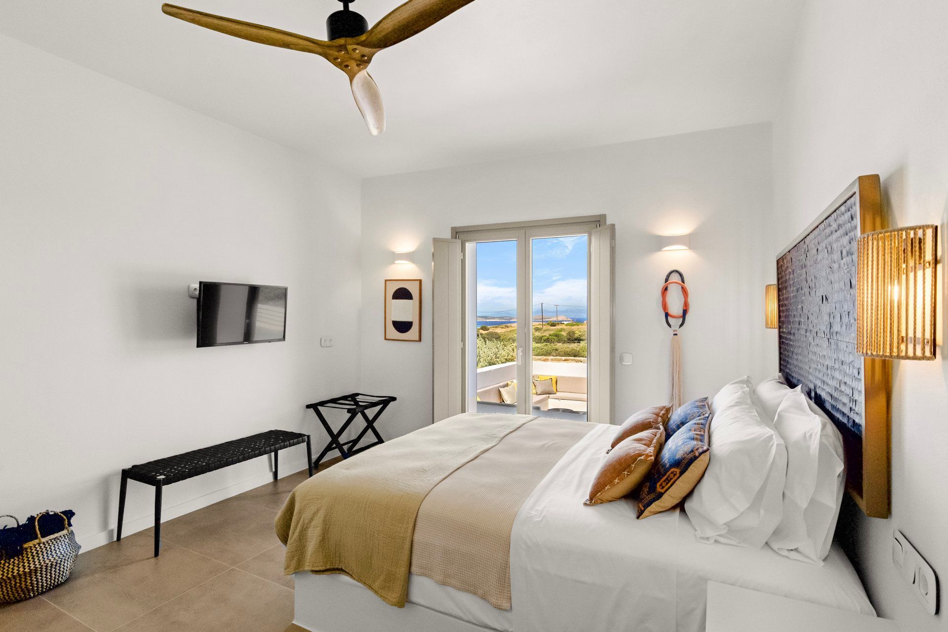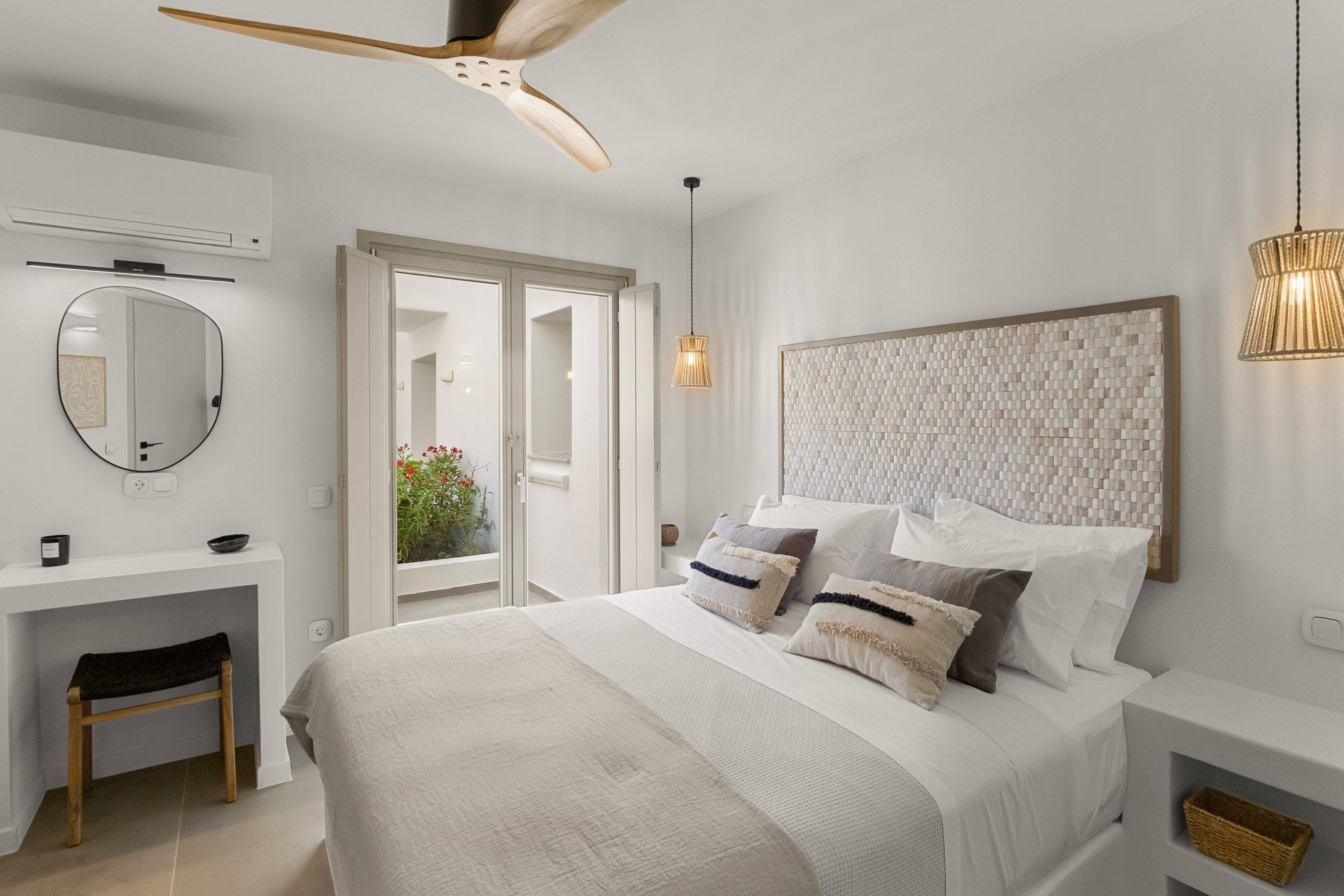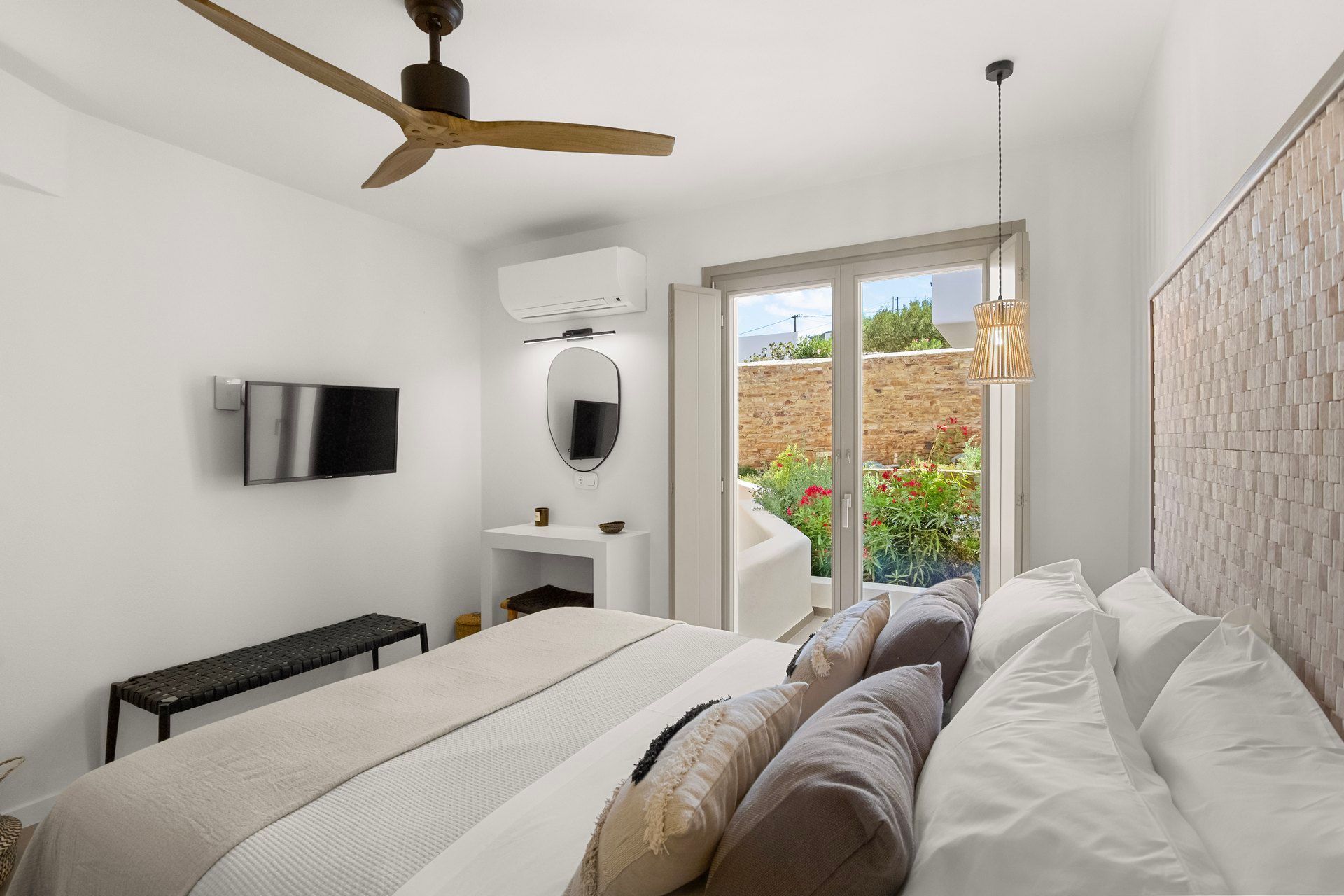 2 bedrooms with king-size beds, ensuite bathrooms, A/C, TV, ceiling fans