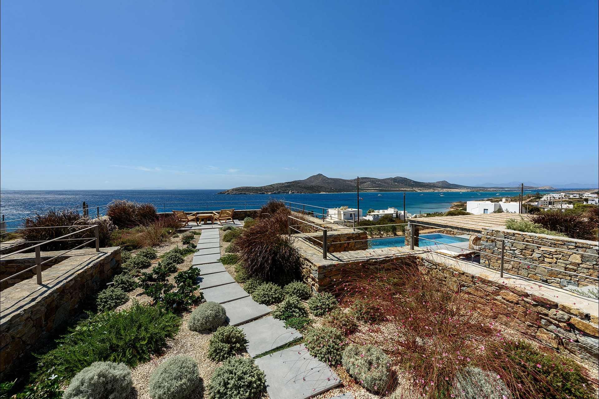 Villa Skyblue brings together the elements that define some of the most appealing stays in Greece, with open sea views, contemporary Cycladic architecture, and a layout that flows with ease. This luxury Antiparos villa accommodates eight guests across a main house and an independent guesthouse, which gives it a more spacious and layered character. From the upper master terrace with jacuzzi to the lower terraces that open directly from the shared living spaces, the experience here is shaped by light, openness, and a steady connection to the island.
