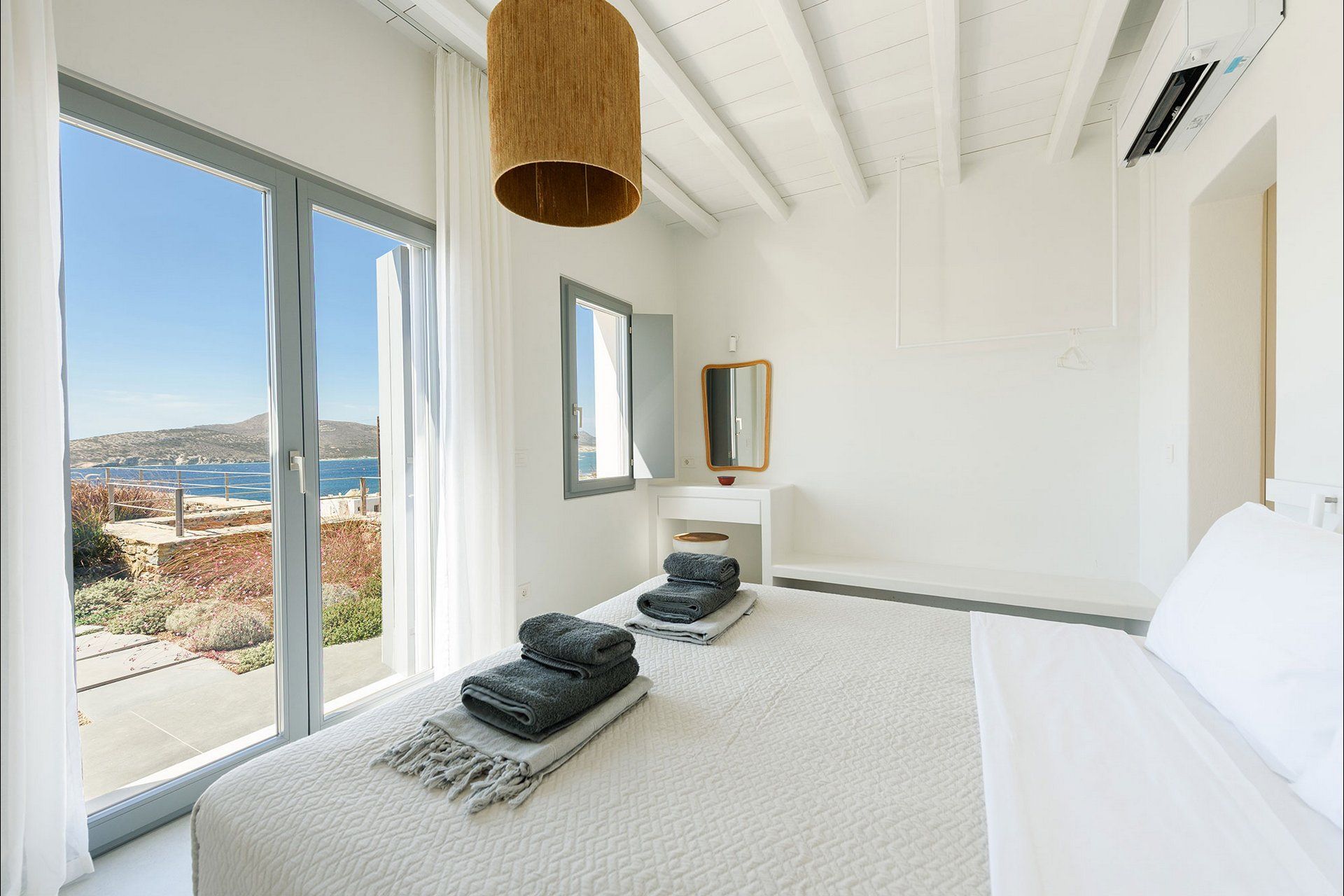 2 bedrooms with king-size beds, ensuite bathrooms, A/C, mosquito nets, access to terrace, sea view