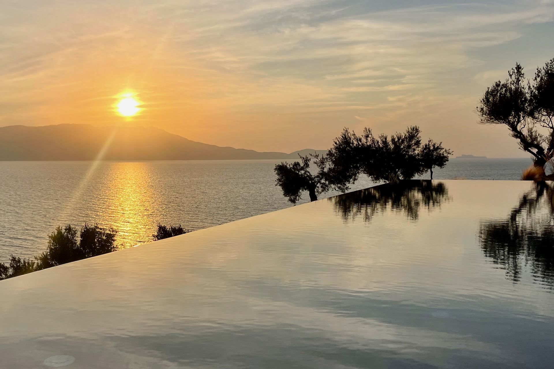 Outside Naiad, lush gardens lead to quiet nooks, perfect for yoga, meditation, or simply losing track of time. The outdoor dining area, with its built-in barbecue and ambient sound system, sets the stage for alfresco gatherings, full of laughter and Mediterranean flavor. At the center of it all, the private heated pool with unobstructed sea views is surrounded by luxurious seating areas inviting you to unwind. And by the property's edge, the secluded waterfront spot inspires memorable activities, using the snorkeling and fishing gear available.