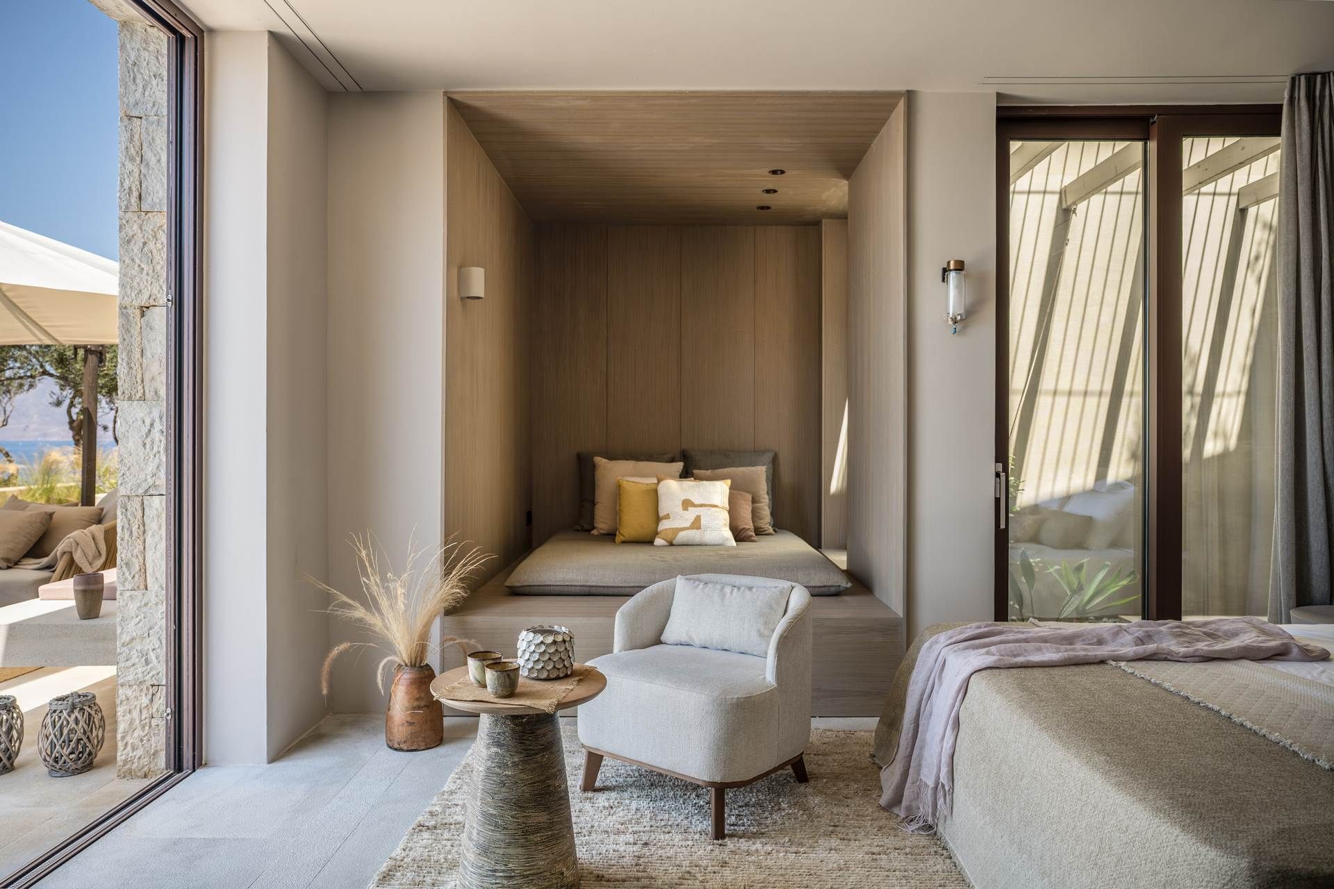 Guided by the vision of its owner and architect, Naiad harmonizes innovation with authenticity, expressing its surroundings through a unique design philosophy. Inspired by the soothing rhythm of the sea and the charm of a nearby fishing village, this Signature Portfolio villa offers a sanctuary where time slows down enabling you to nurture deep connections between people and the land. Here, a private pathway will lead you to the edge of a rocky shore, a raw, intimate encounter with Crete’s untamed spirit.