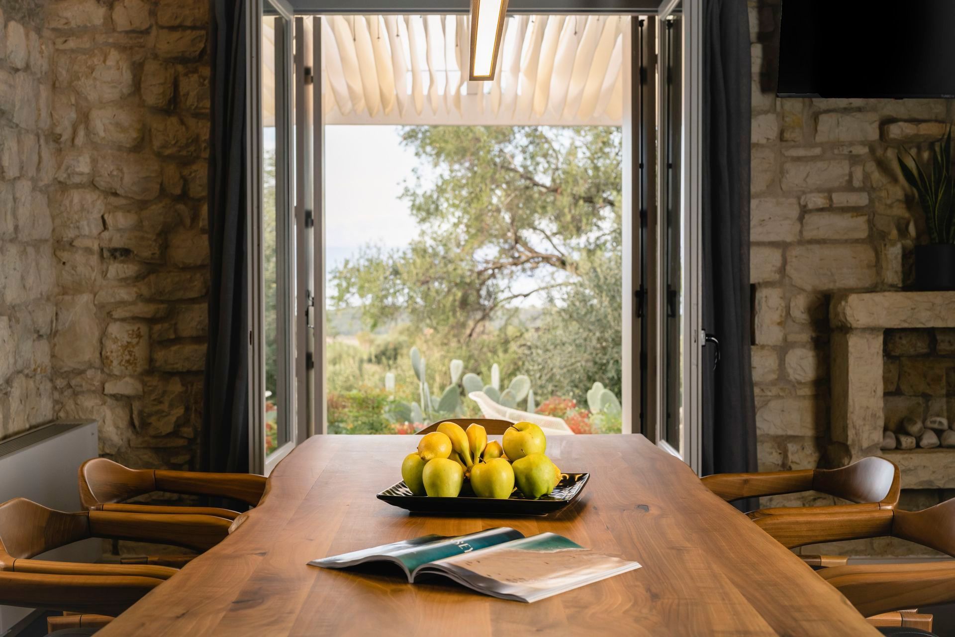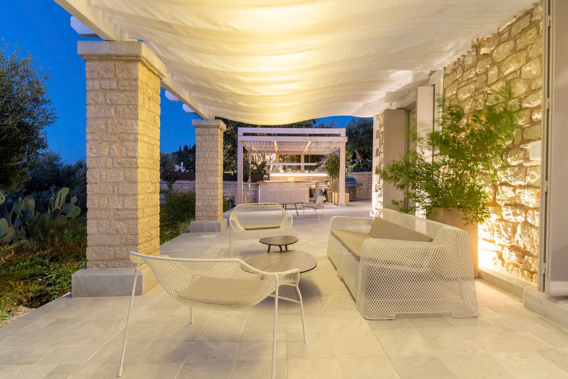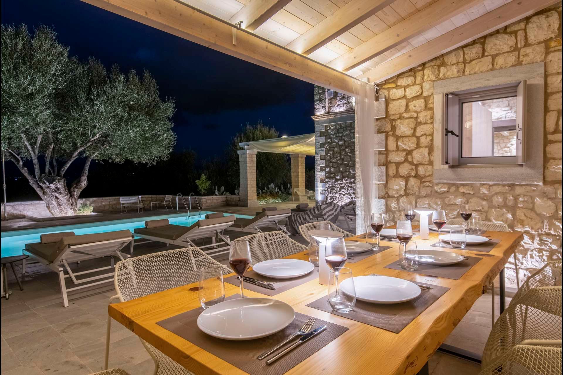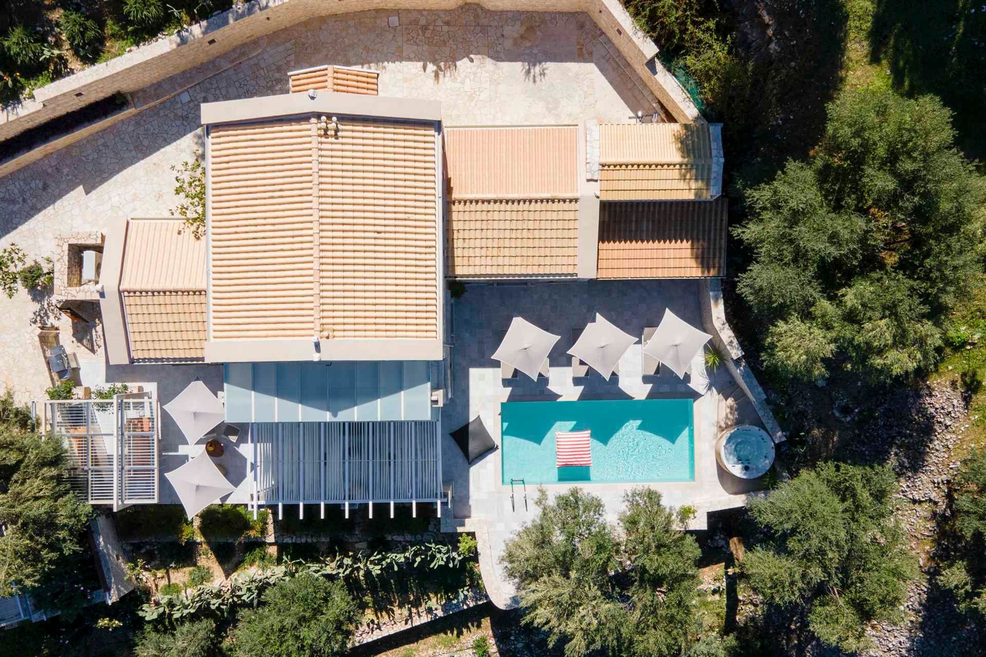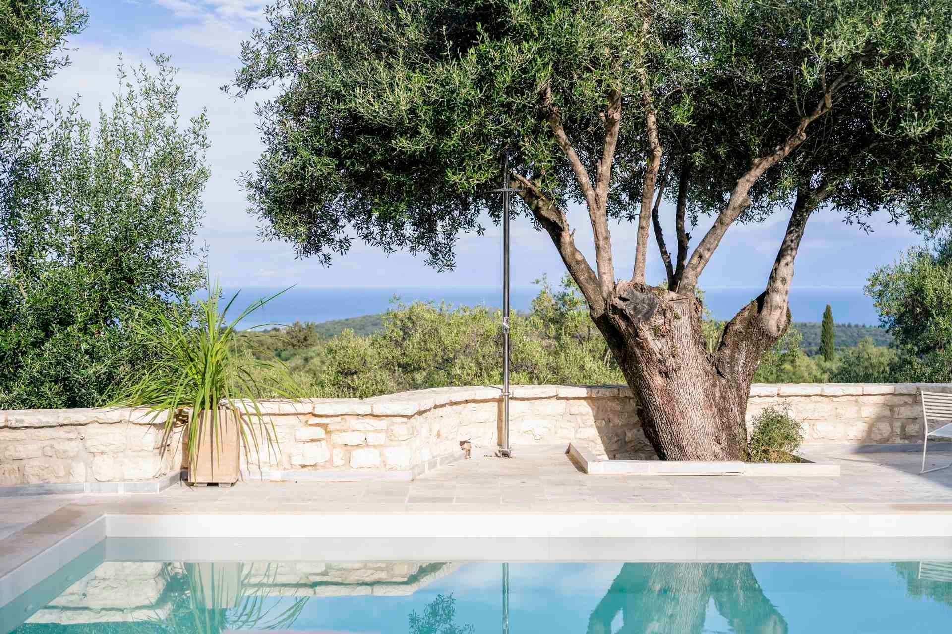 Villa Albatross sits in the green, picturesque landscape at Vasilika, Corfu, offering a stay for up to eight guests that feels both refined and deeply settled in nature. Built in stone and softened by sea-facing views, the villa brings together four bedrooms, four bathrooms, a private pool, a heated jacuzzi, and generous outdoor living. It is especially appealing for guests who seek comfort, privacy, and a slower rhythm, with enough space for shared time.