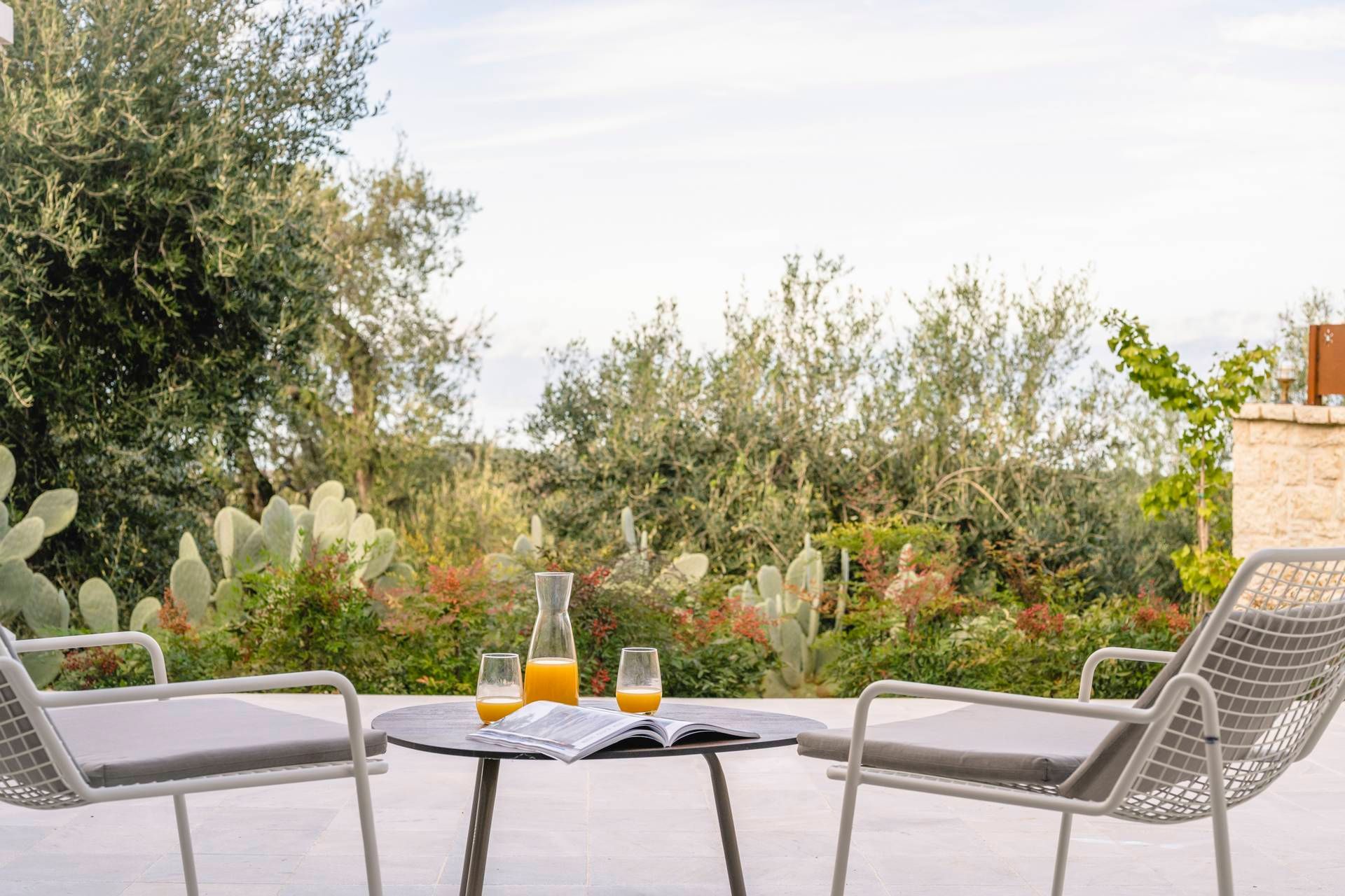 Outdoors, the villa opens into a private garden setting that is bright, peaceful, and naturally sheltered. The pool becomes the center of the day, framed by loungers, umbrellas, and relaxed sitting areas that invite long afternoons outside, while the heated jacuzzi adds another layer of comfort. An outdoor kitchen and dining area make meals feel part of the landscape, and with the sound system, gym equipment, and in-pool training gear, the exterior can shift easily from restful to active depending on the mood.