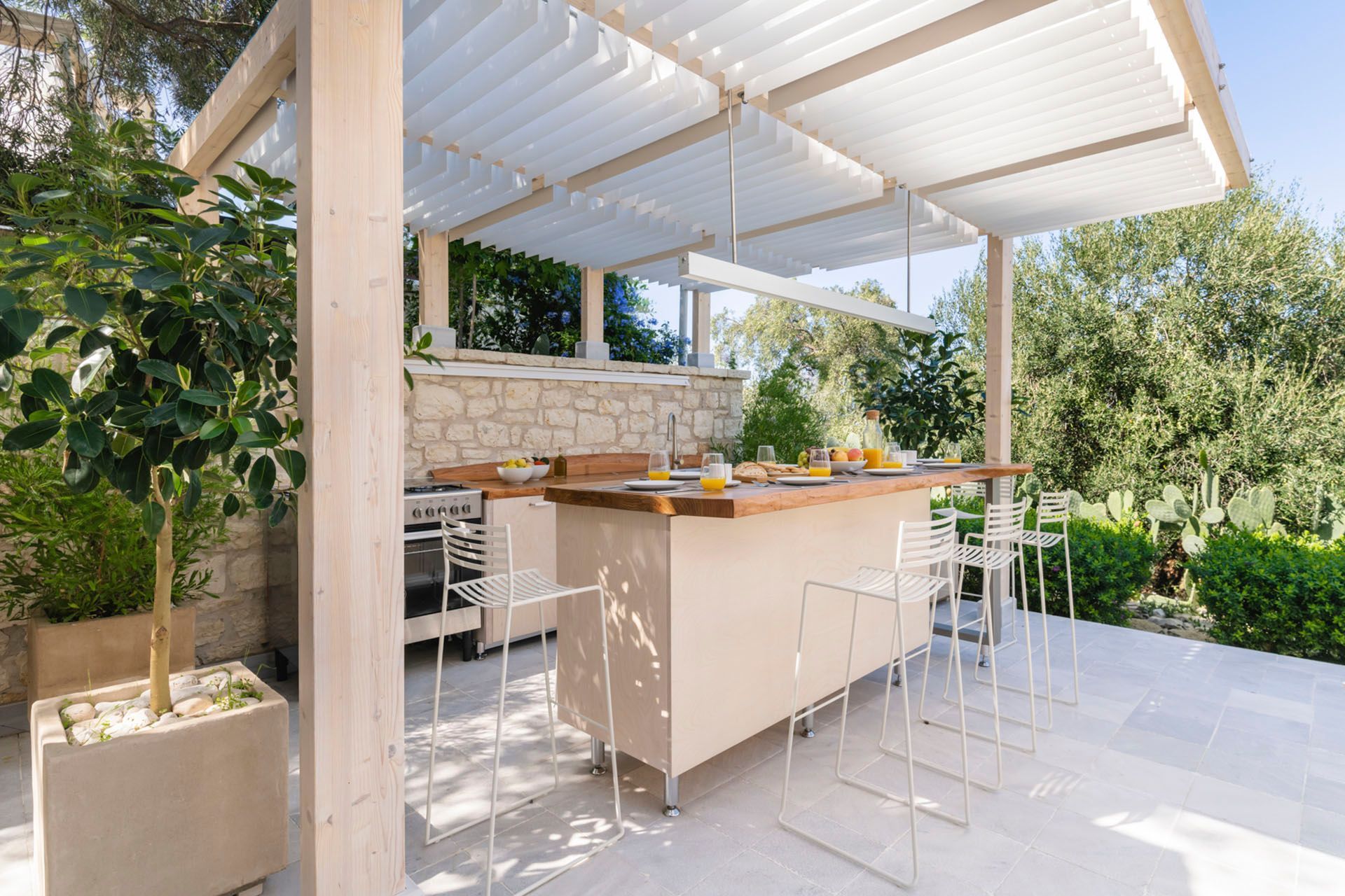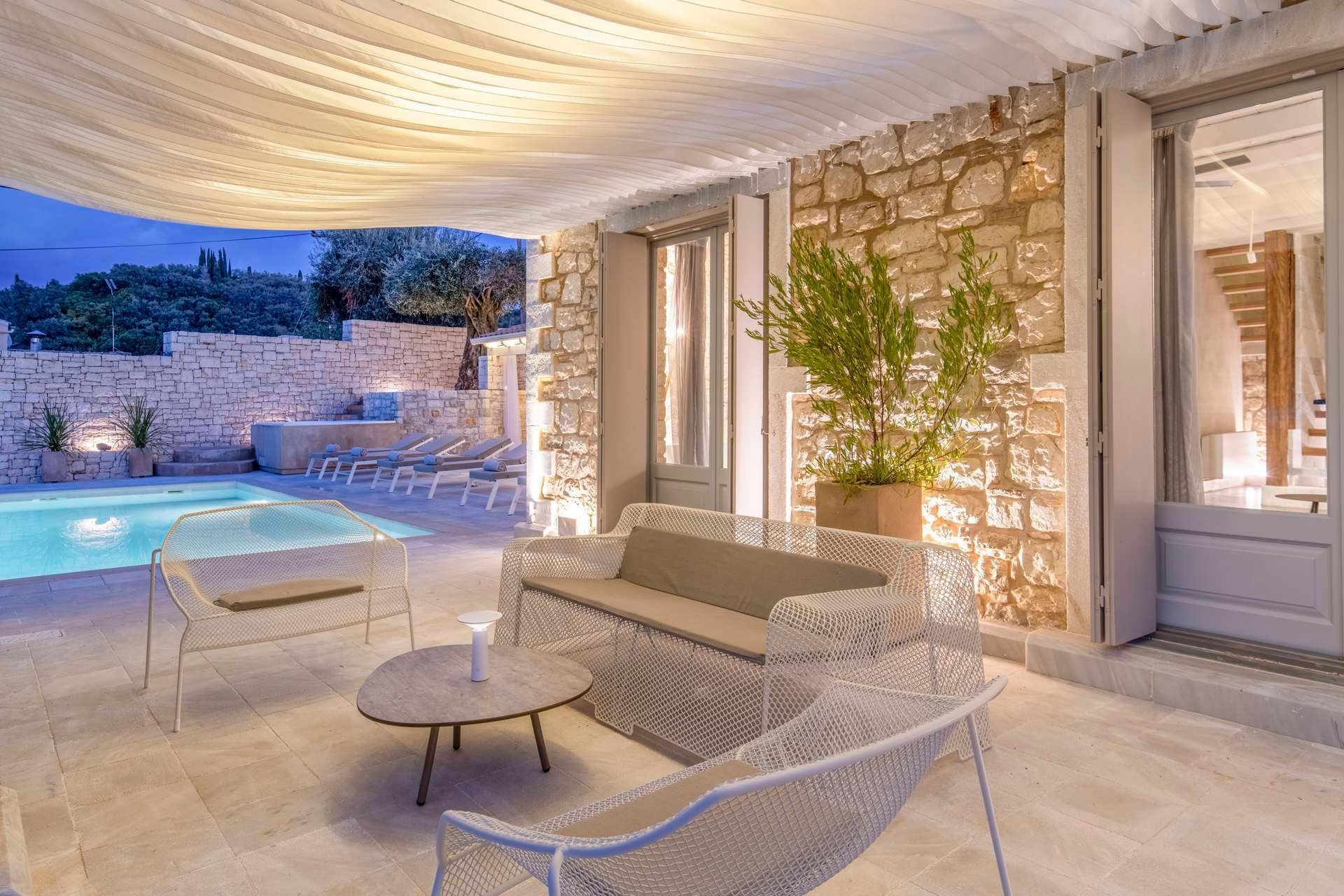 Skylark is the kind of villa that encourages a very specific rhythm. Wake slowly, open the doors, spend more time outside than inside, and let the day move between pool, shade, food, and sea air. Set in Vasilika and sleeping up to eight guests in four bedrooms, it combines a lush Corfu setting with a layout that feels easy for shared holidays. The stone-built architecture gives it a sense of place, but the real appeal lies in how effortlessly the villa supports a long, outdoor summer day.