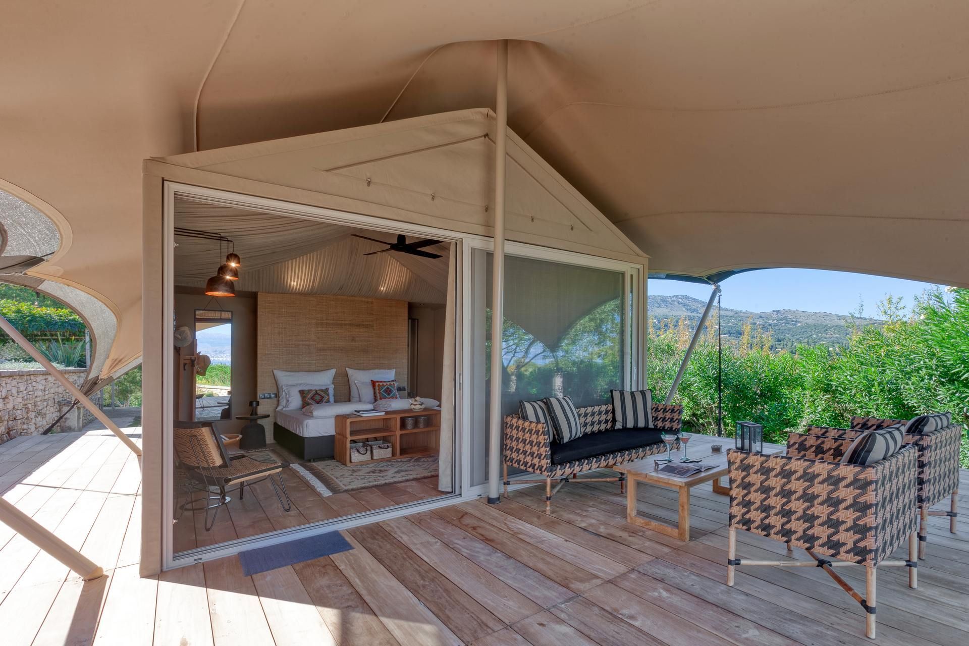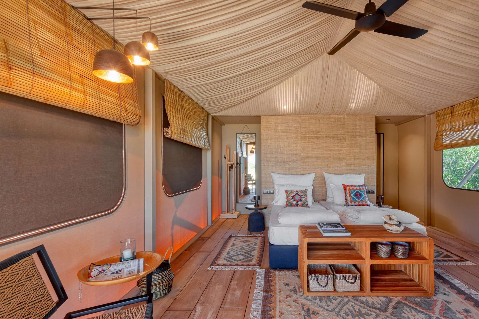 The entire property is designed with attention to every detail, featuring modern wooden furniture and contemporary décor, with a calm, residential feel throughout. The shared living areas are bright and practical, made for easy time together, and the layout supports a natural indoor–outdoor flow for long days by the pool and shoreline. The villa offers six bedrooms with deluxe comforts and direct outdoor access, while a secluded luxury tent adds a more laid-back, bohemian option within the estate. A fully equipped gym is also available if you’d like to keep your routine.