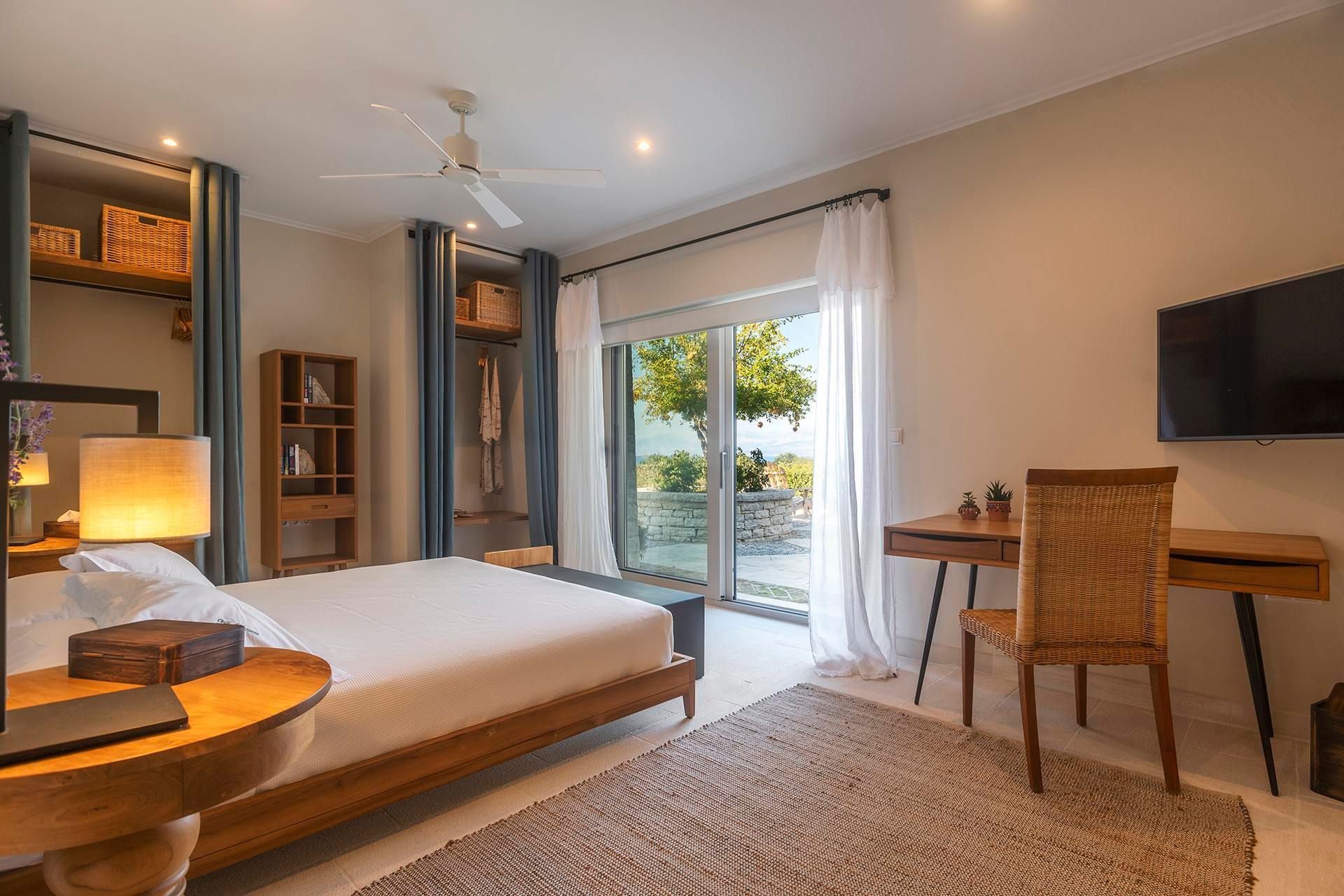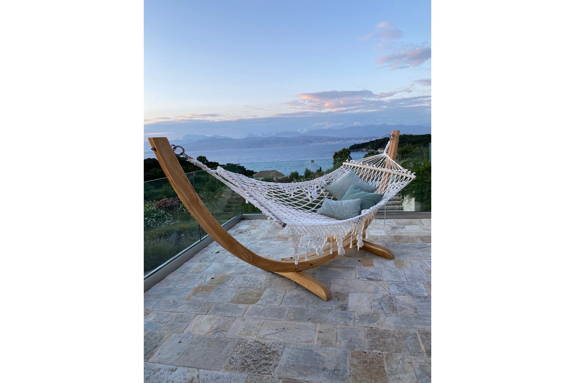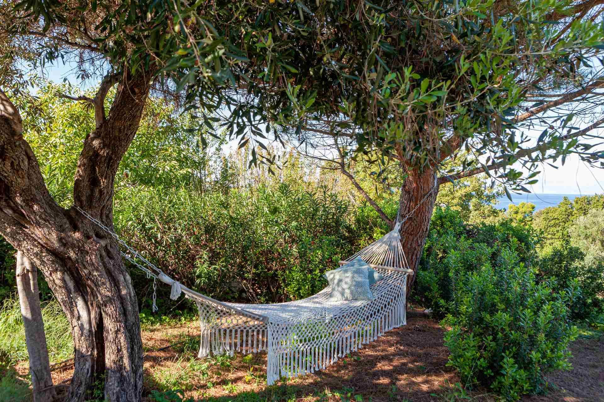 The alfresco area will be your private paradise, offering wide views of the countryside and the sea from every corner of your pool terrace. The lush scenery that surrounds the property will make you feel like being in a forest, with lots of lounging spots to relax. There is a gorgeous private pool at your disposal, as well as plush loungers and hammocks to unwind while listening to the calming nature sounds. Are you in need of some saltwater? Then, put on your flip-flops and walk to the private beach – just 100m away.