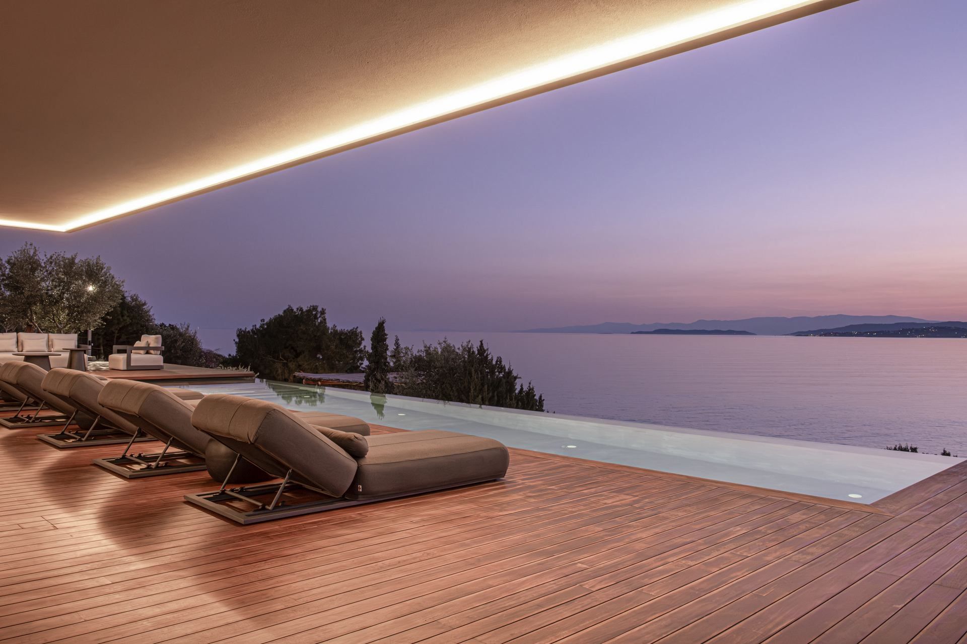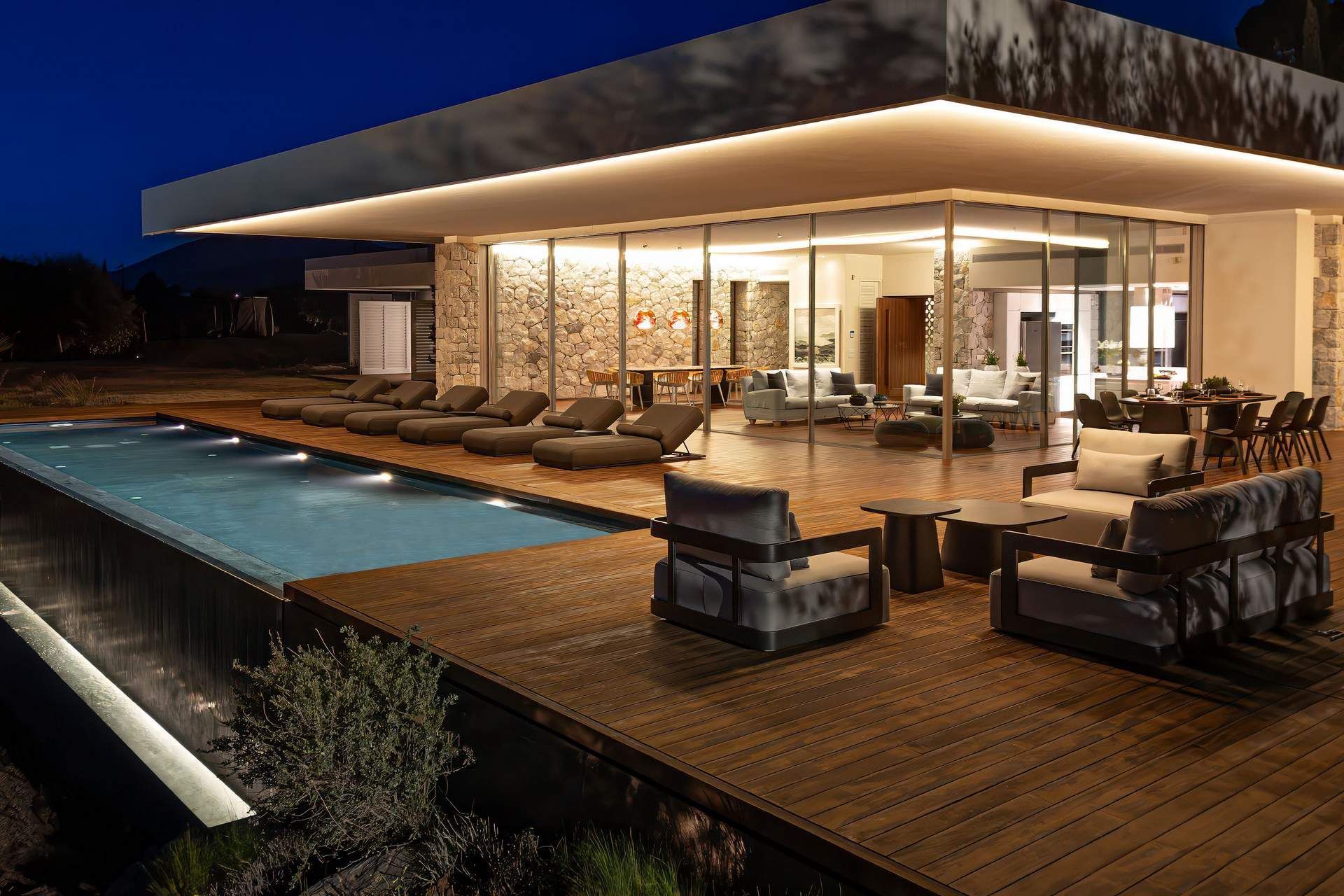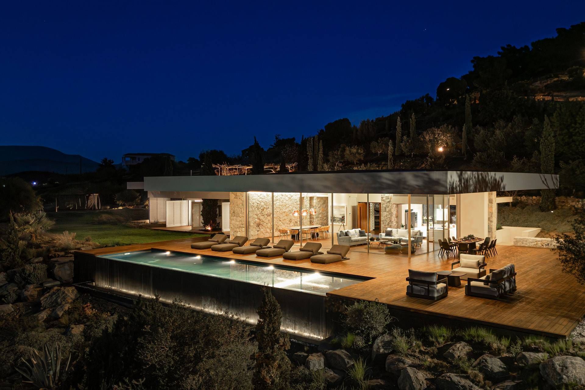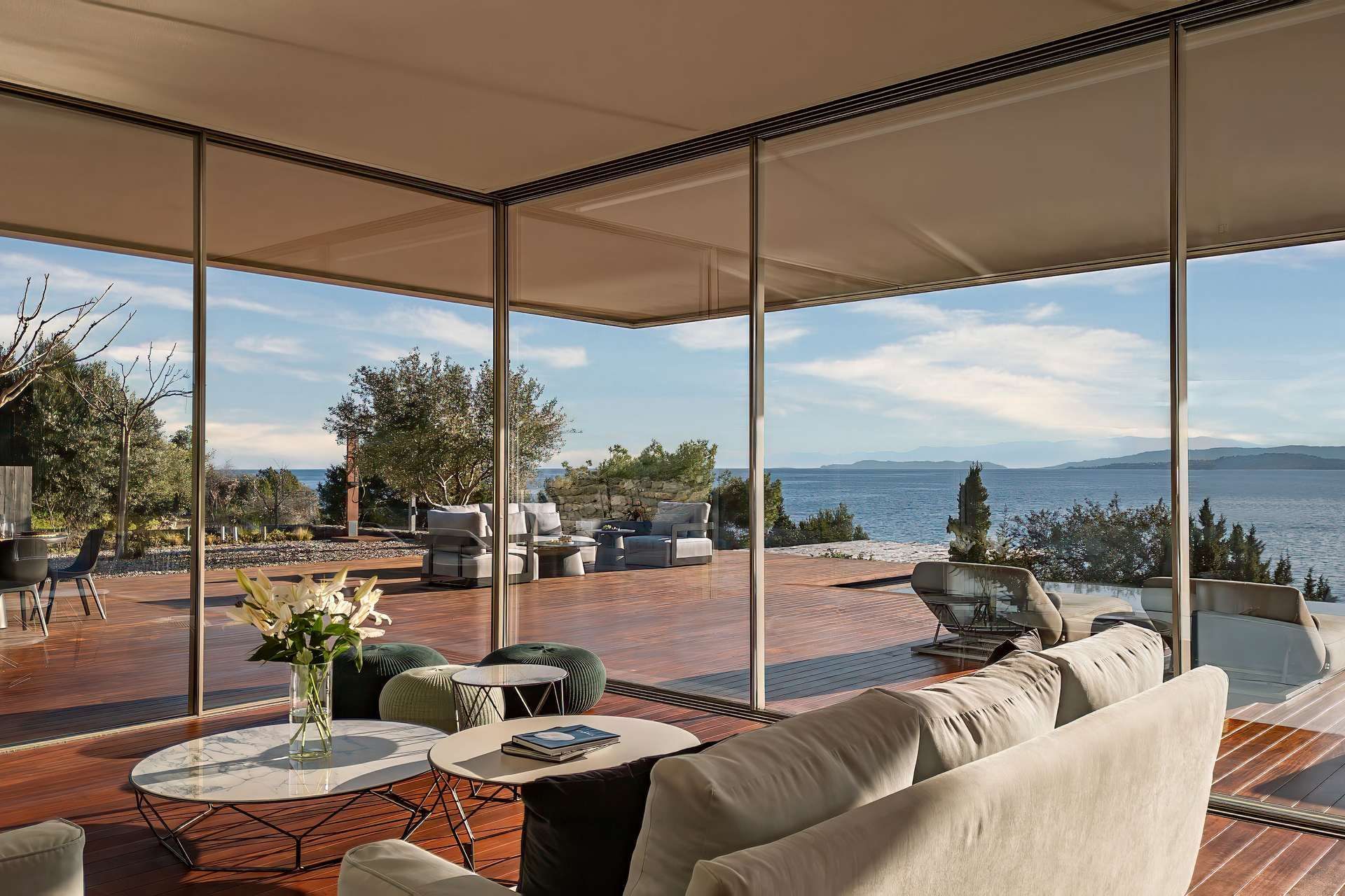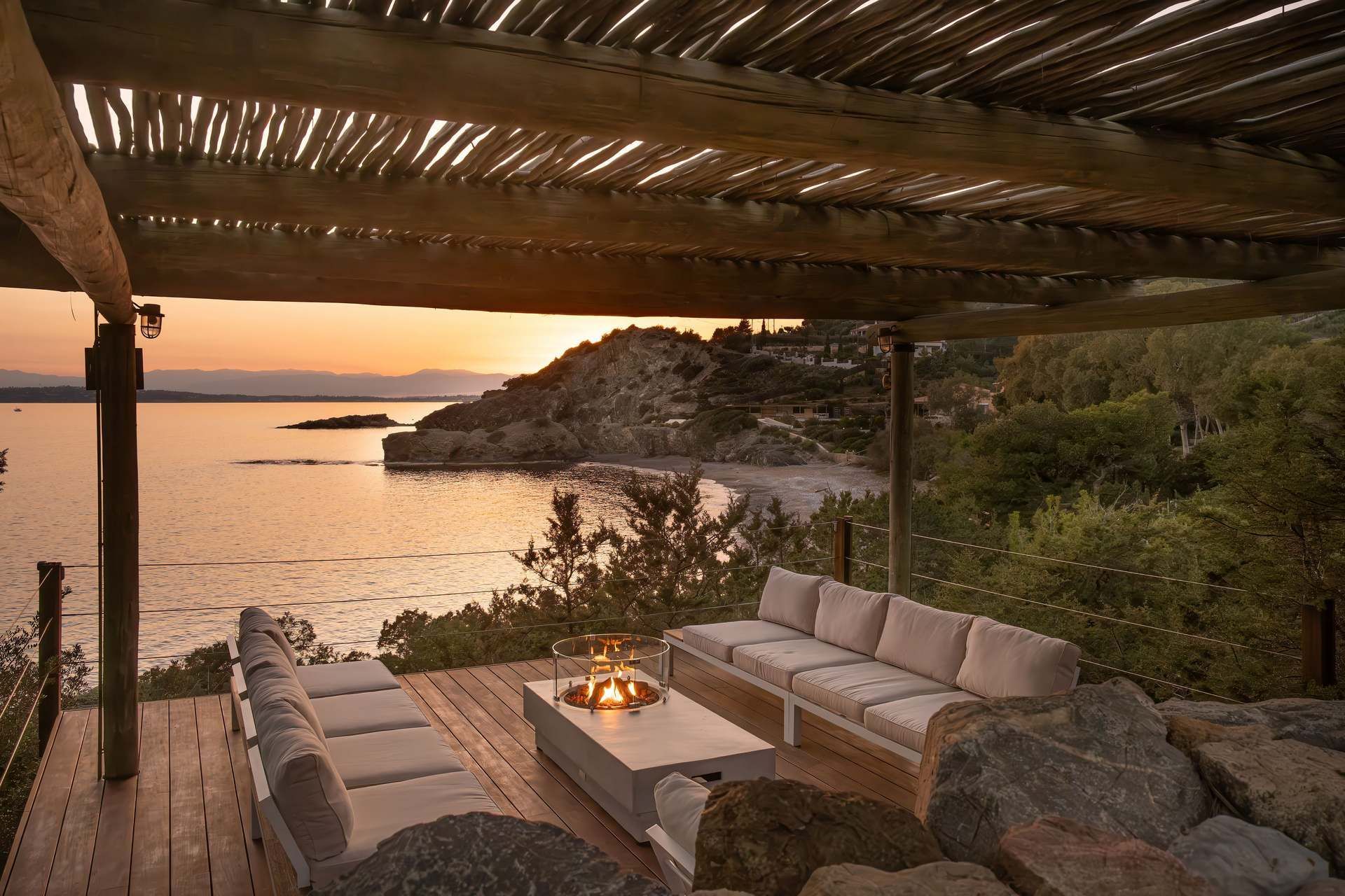 Bayleaf is a luxury Peloponnese villa defined by light, seclusion, and a powerful relationship to the horizon. Located on the waterfront in Ermioni, it accommodates up to six guests in three ensuite bedrooms and combines direct beach access with uninterrupted sea views and an absolute sense of privacy. The materials are central to its identity, with glass, stone, and wood creating a structure that feels both precise and warm, contemporary in line but deeply rooted in the landscape around it.