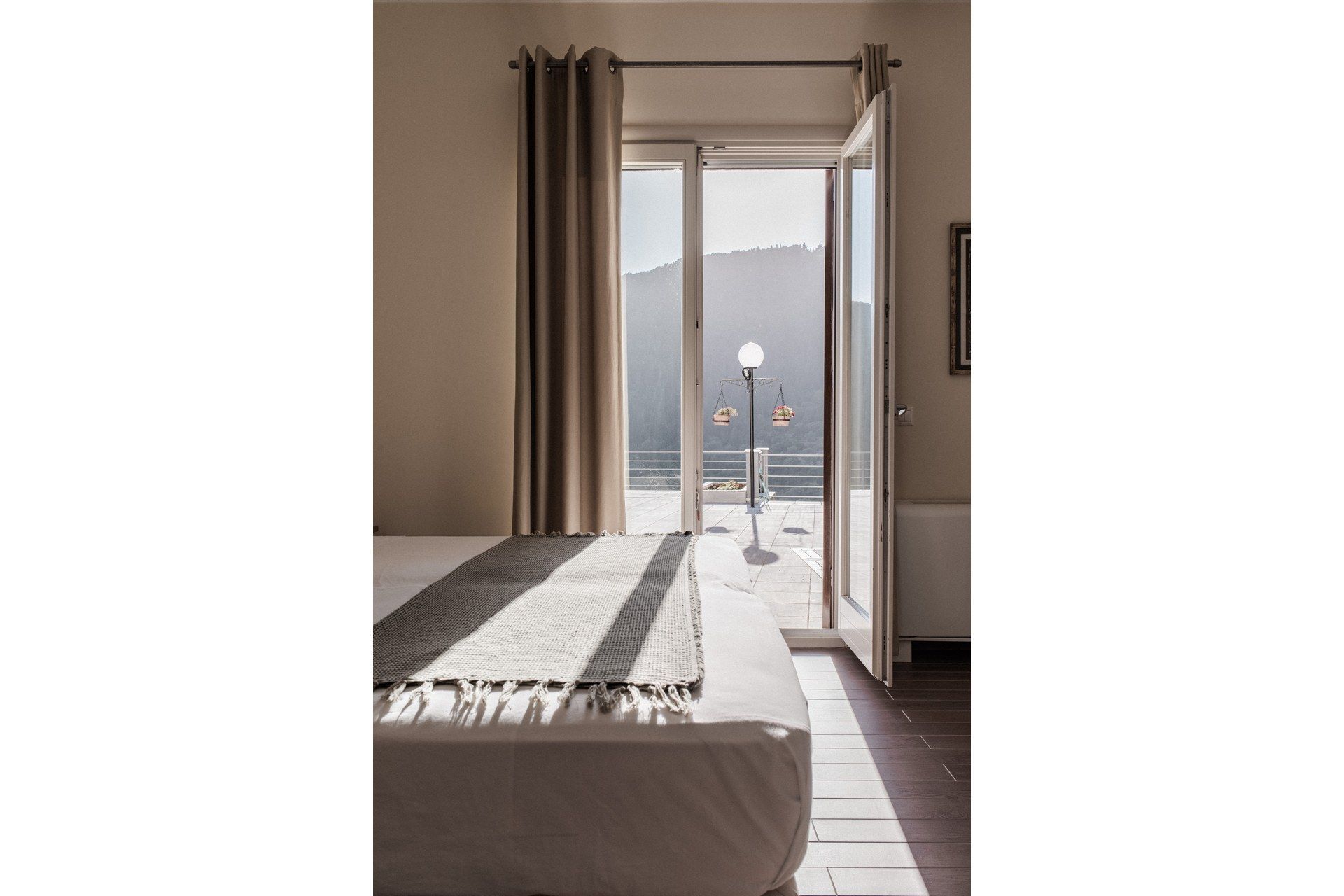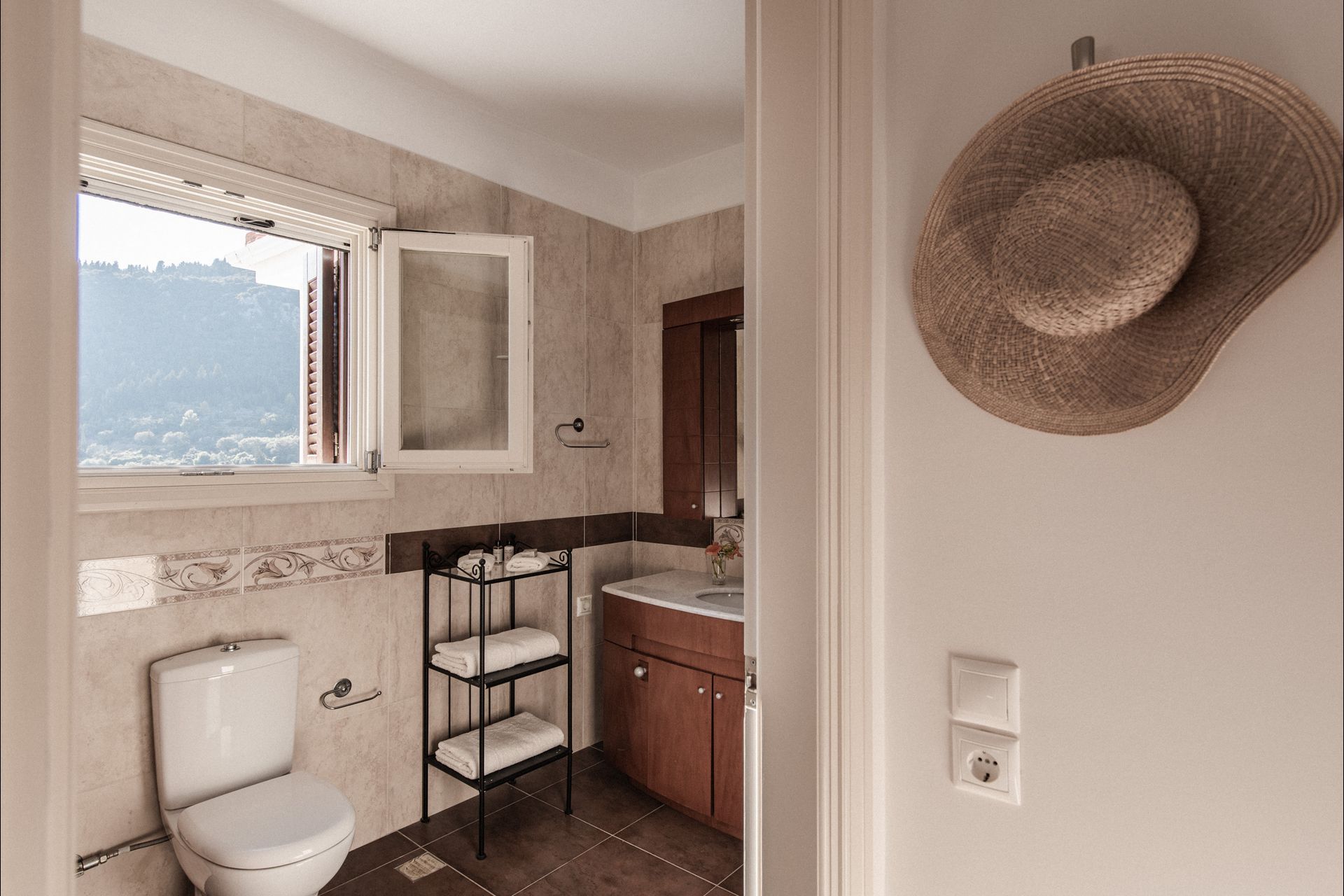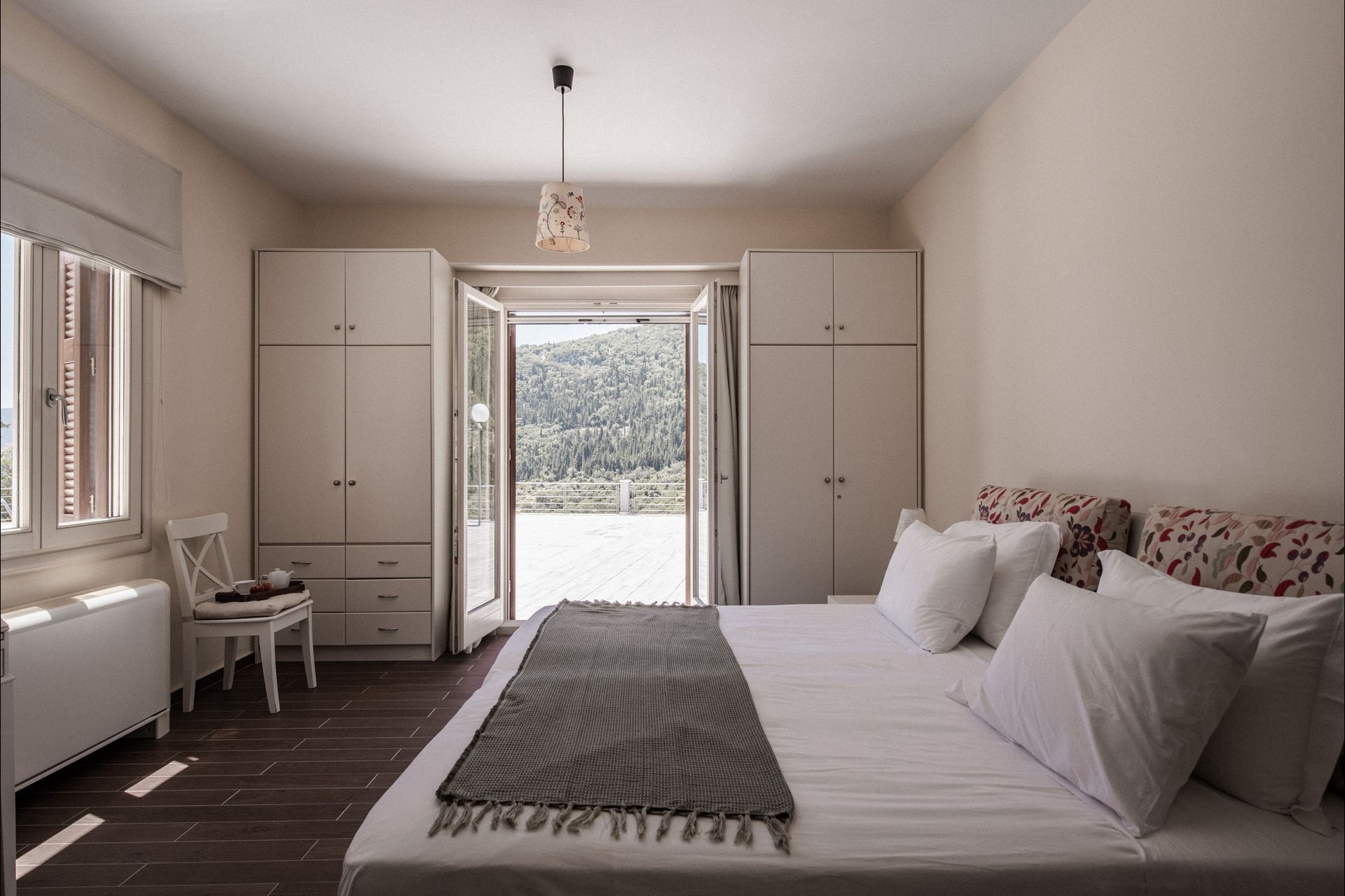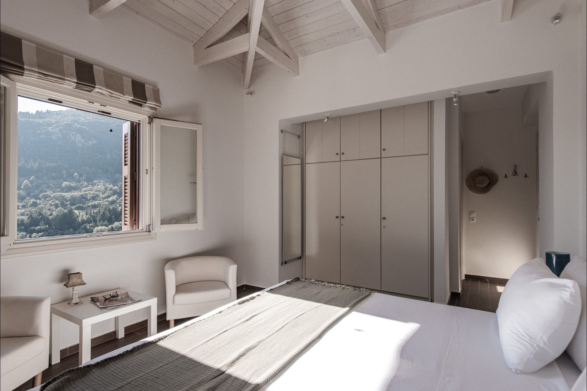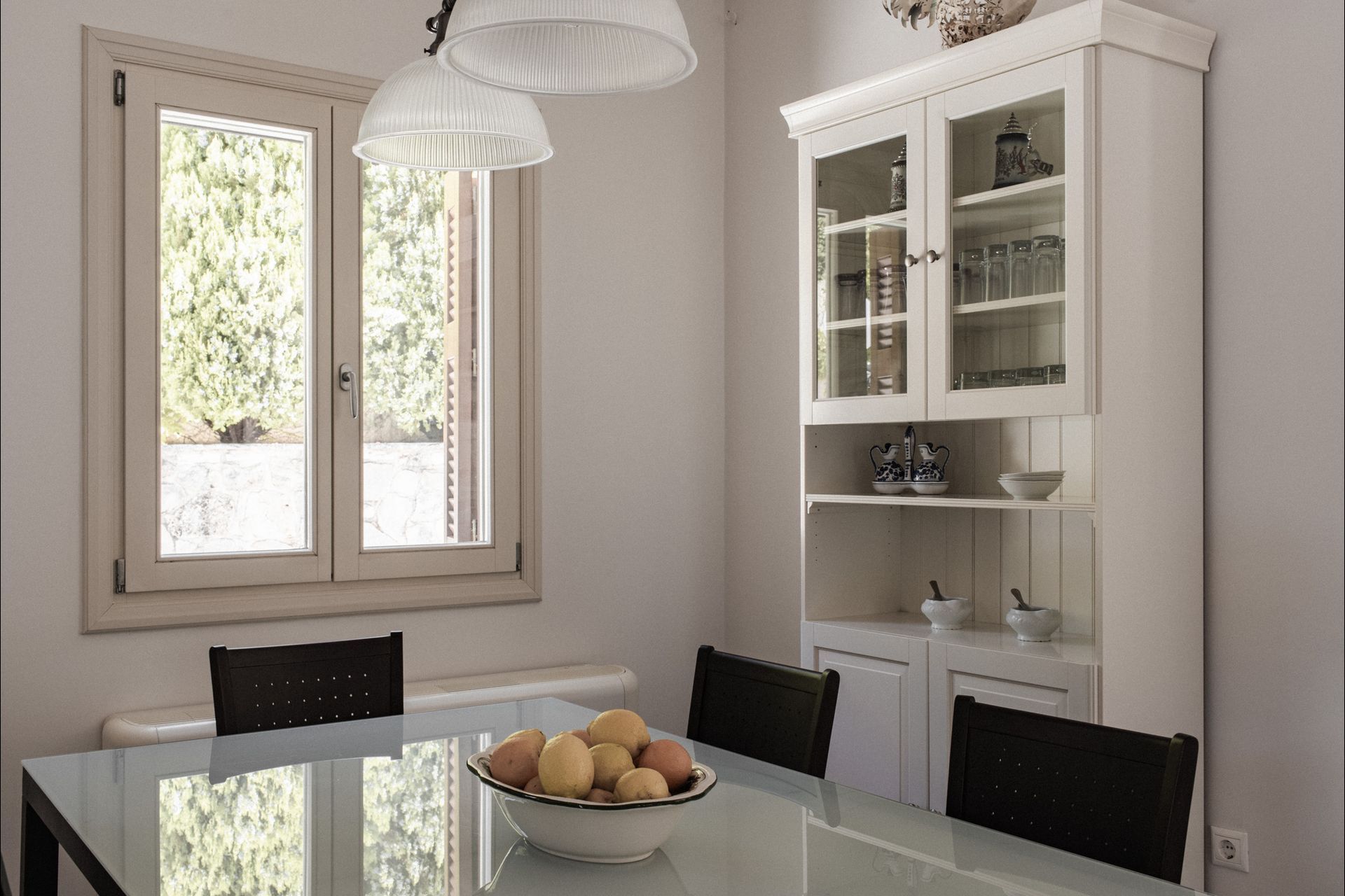 Perched on Ithaki’s northern side near Stavros, Villa Raspberry offers a secluded stay with the sea close by and the island’s greenery all around. It sleeps up to nine guests across four bedrooms and is laid out over two levels that feel comfortably independent. Two living and dining areas, along with two fully equipped kitchens, make the villa especially easy for families, couples traveling together, or groups who appreciate a little separation. The style is calm and local, with the view remaining the main feature throughout.
