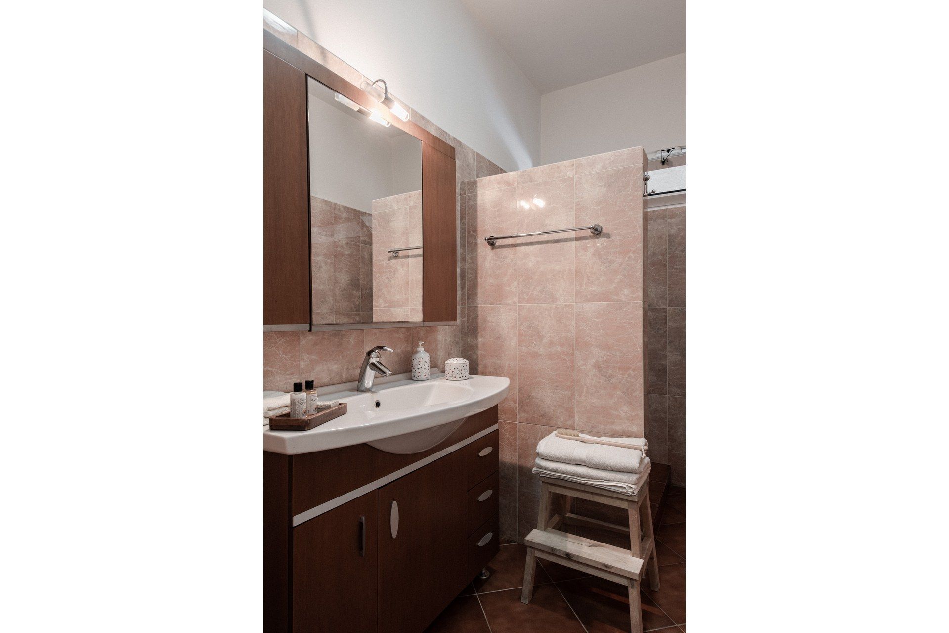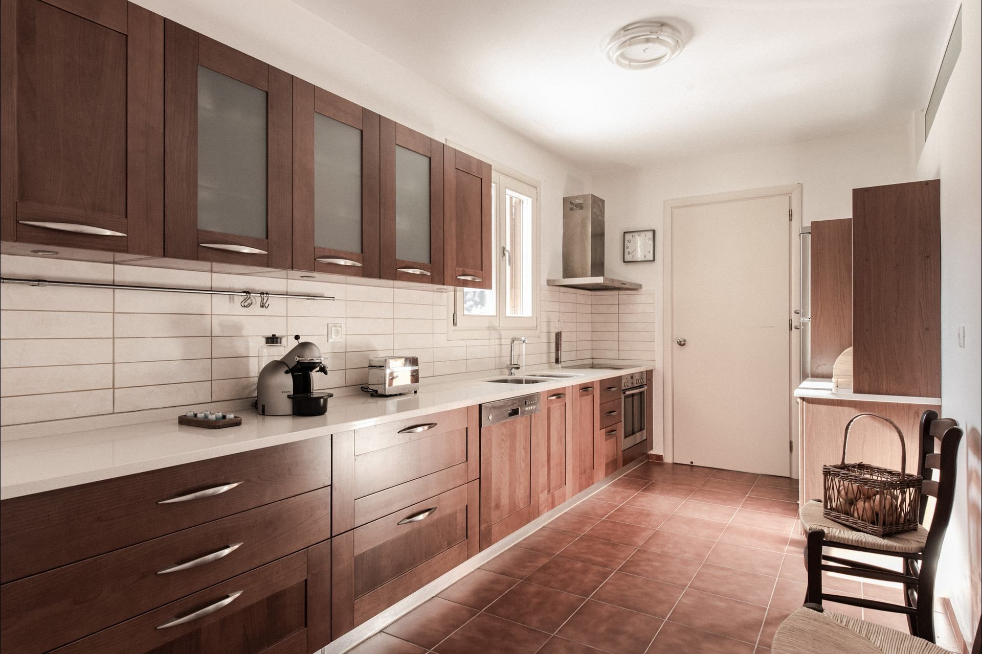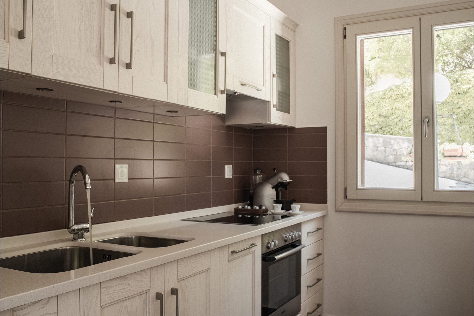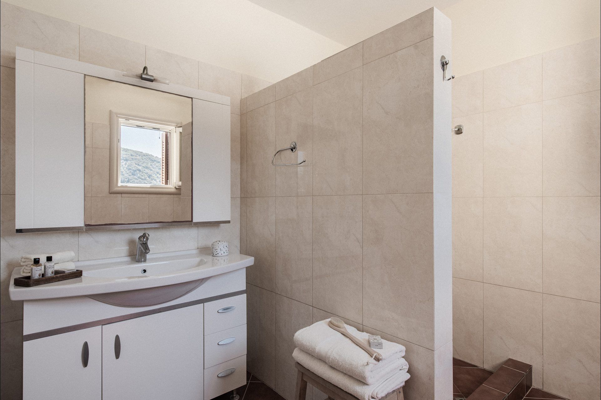 Indoors, Raspberry feels comfortable and authentic, with earthy floors, simple finishes, and natural light that keeps the villa fresh and airy. Two kitchens and two living rooms make everyday living easy, whether you’re traveling as one group or sharing the villa as two households. Bedrooms are arranged across both levels, while each floor has its own kitchen, living and dining area. The overall mood is more “comfortable summer home” than staged luxury, which fits Ithaki’s character perfectly.