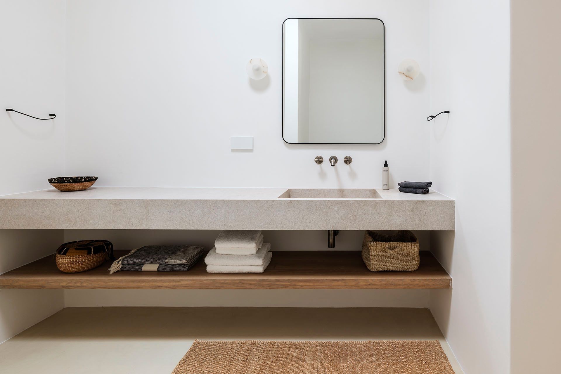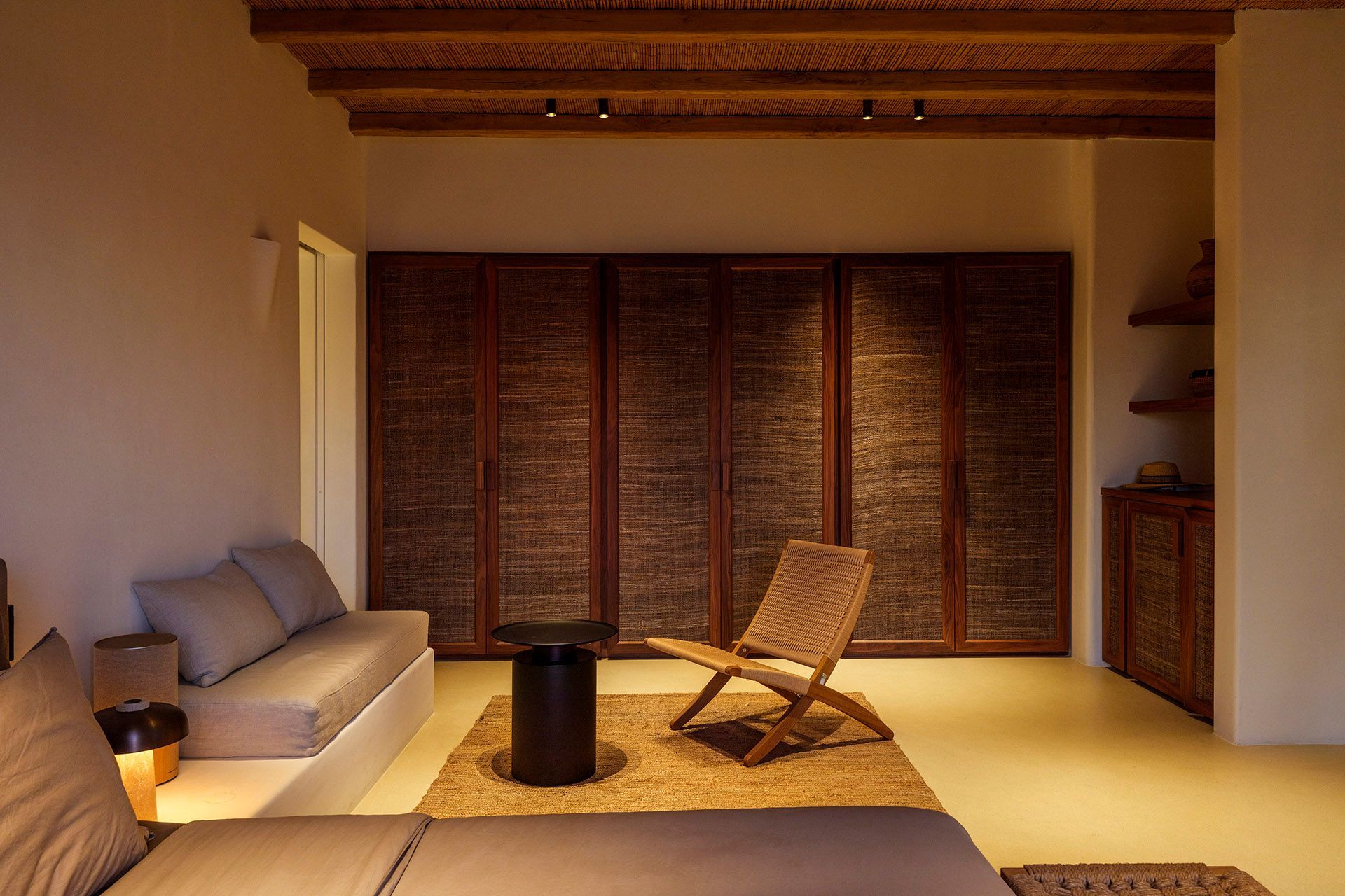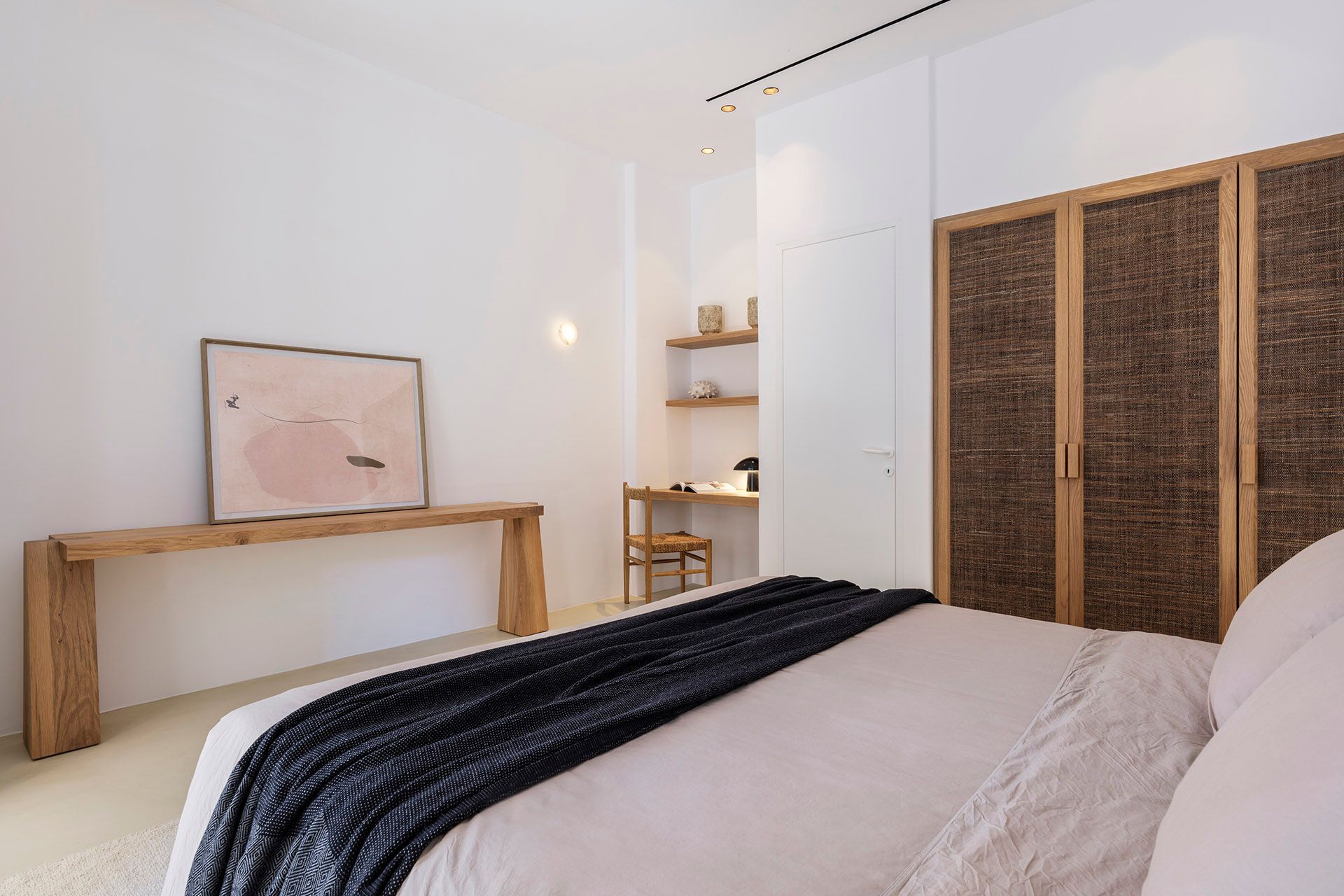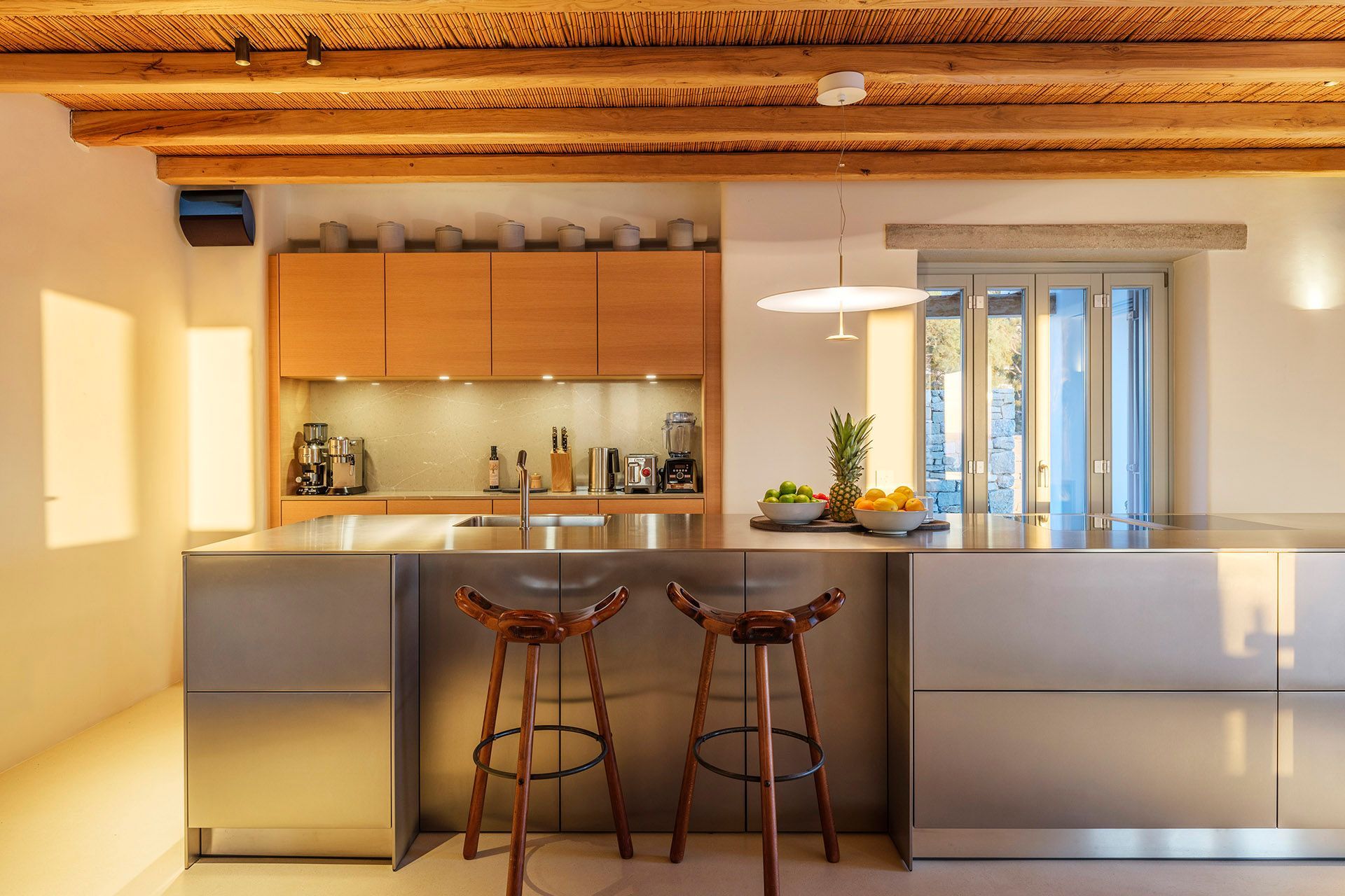 Bellatrix’s location in Kanalia offers an easy balance between seclusion and access, which is part of its appeal. Ornos, Mykonos Town, and Psarou are all a short drive away for beach clubs, shopping, and dining, but the villa itself keeps a much quieter rhythm once you come back. The pool can be heated on request, and the private beach access gives the house a sense of independence that stands out even in this part of the island. It is especially appealing to guests who want a more private, sea-led side of Mykonos.