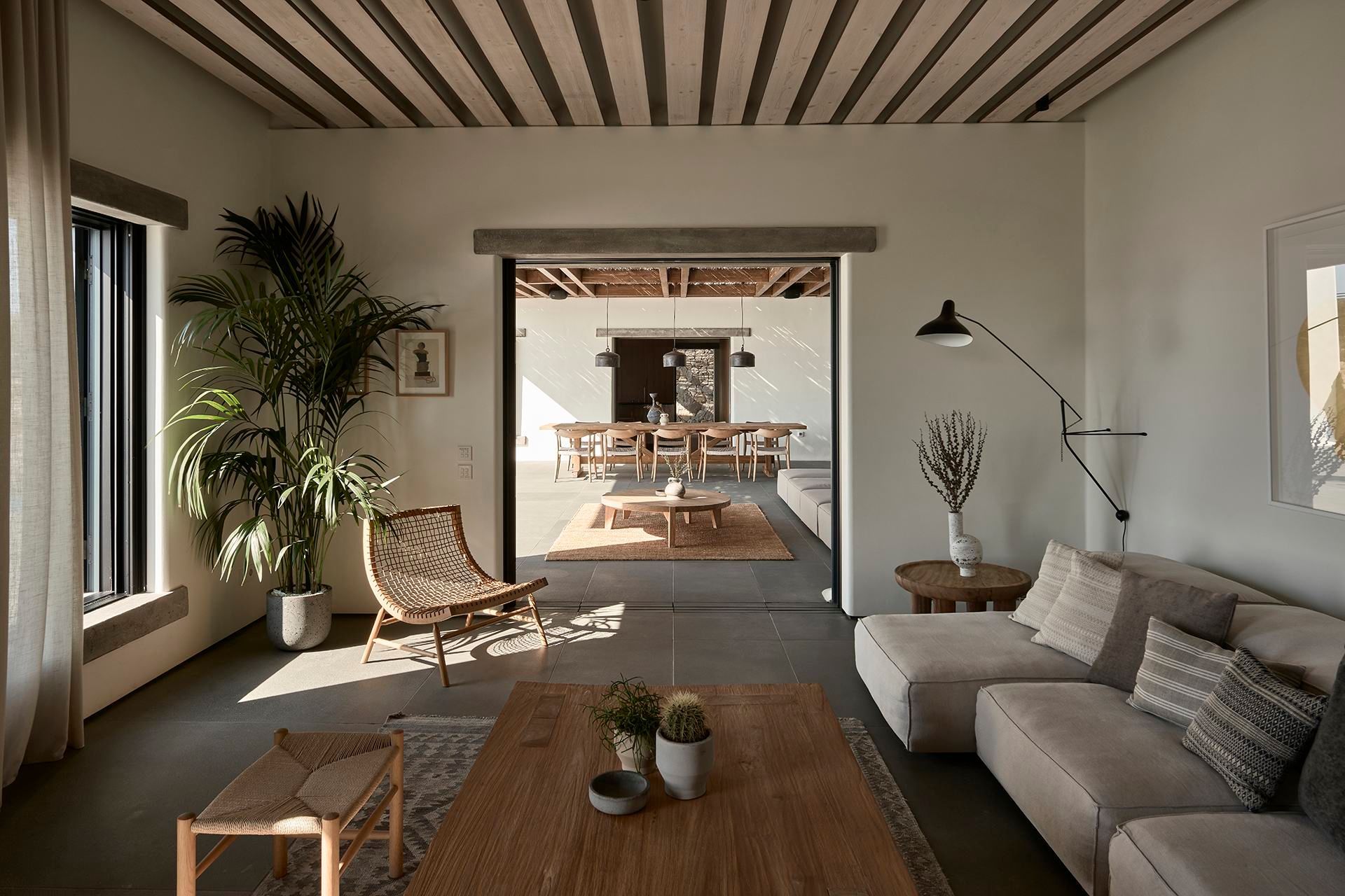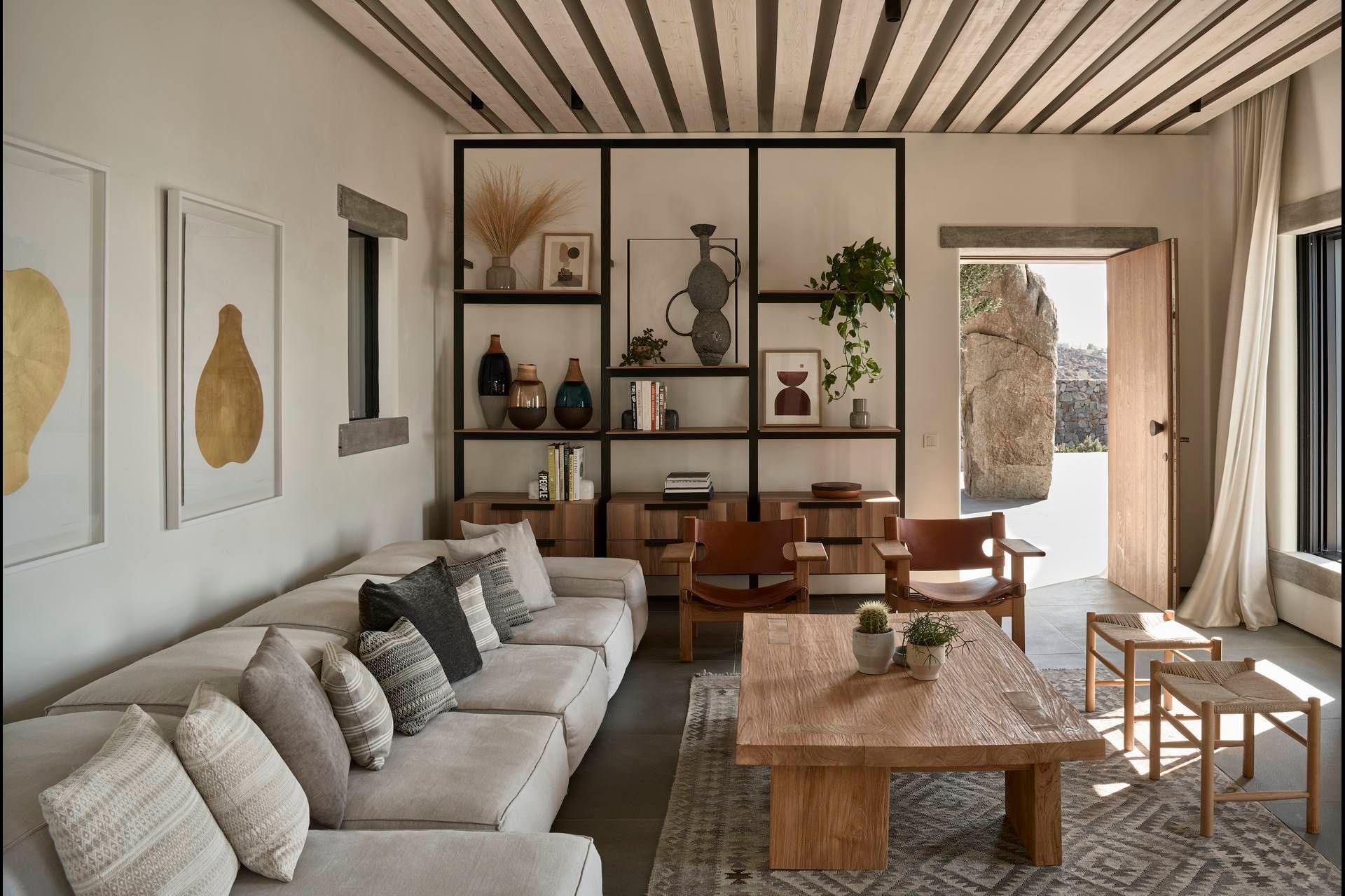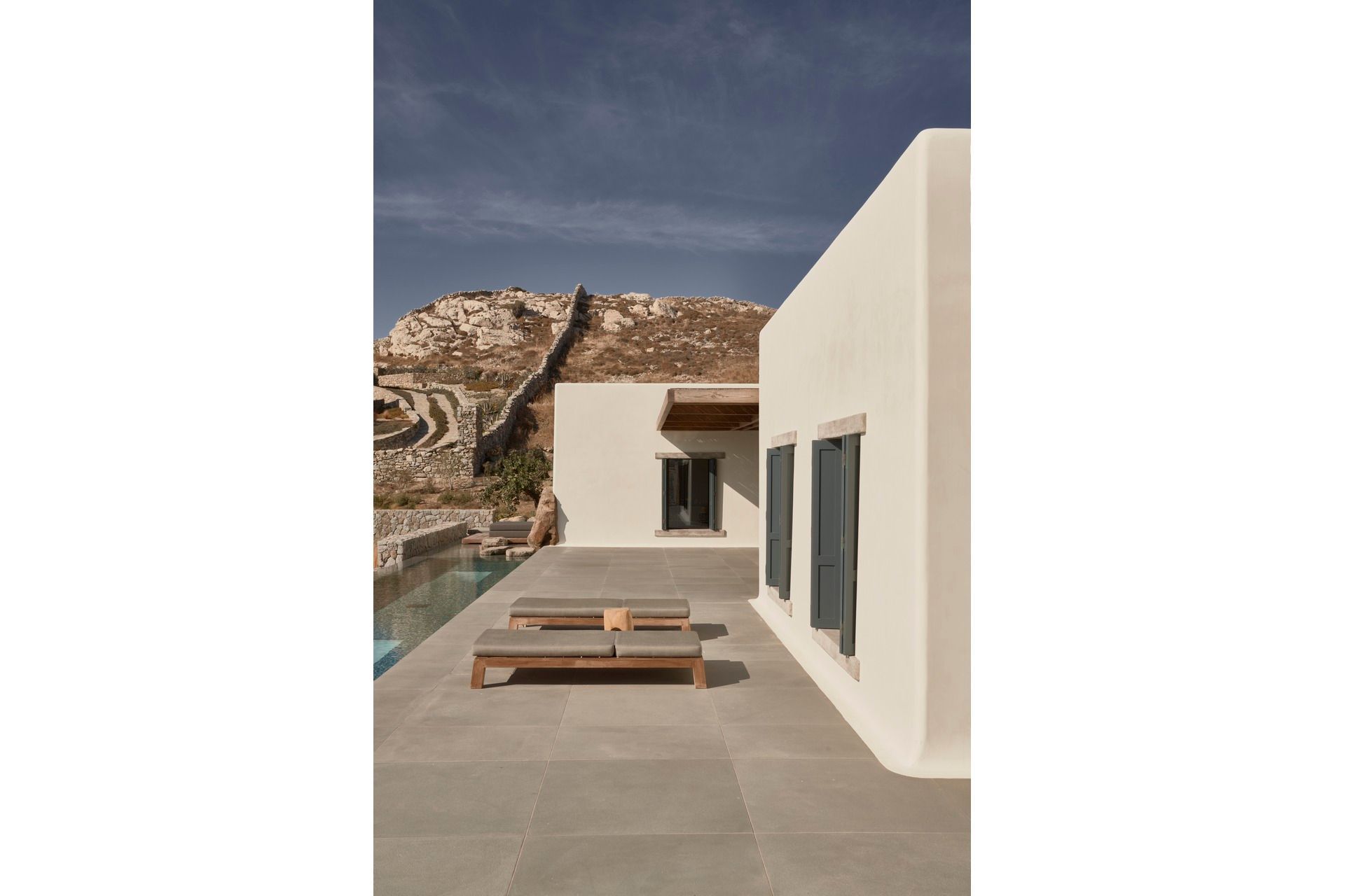 With respect to the traditional Cycladic architecture and to the wild surroundings, the alfresco area offers you ample space and facilities for your chill-out moments, a true paradise on earth. Nothing can disturb your peace, so lay on the sunbed by the pool with a drink at hand and enjoy the calming sounds of nature around you. Take full advantage of the large infinity pool and rejuvenate your senses while your private chef prepares a delicious feast on the BBQ. Get together at the shaded dining area to have a tailor-made dinner before you head out to explore the magic of the island. Pure bliss!