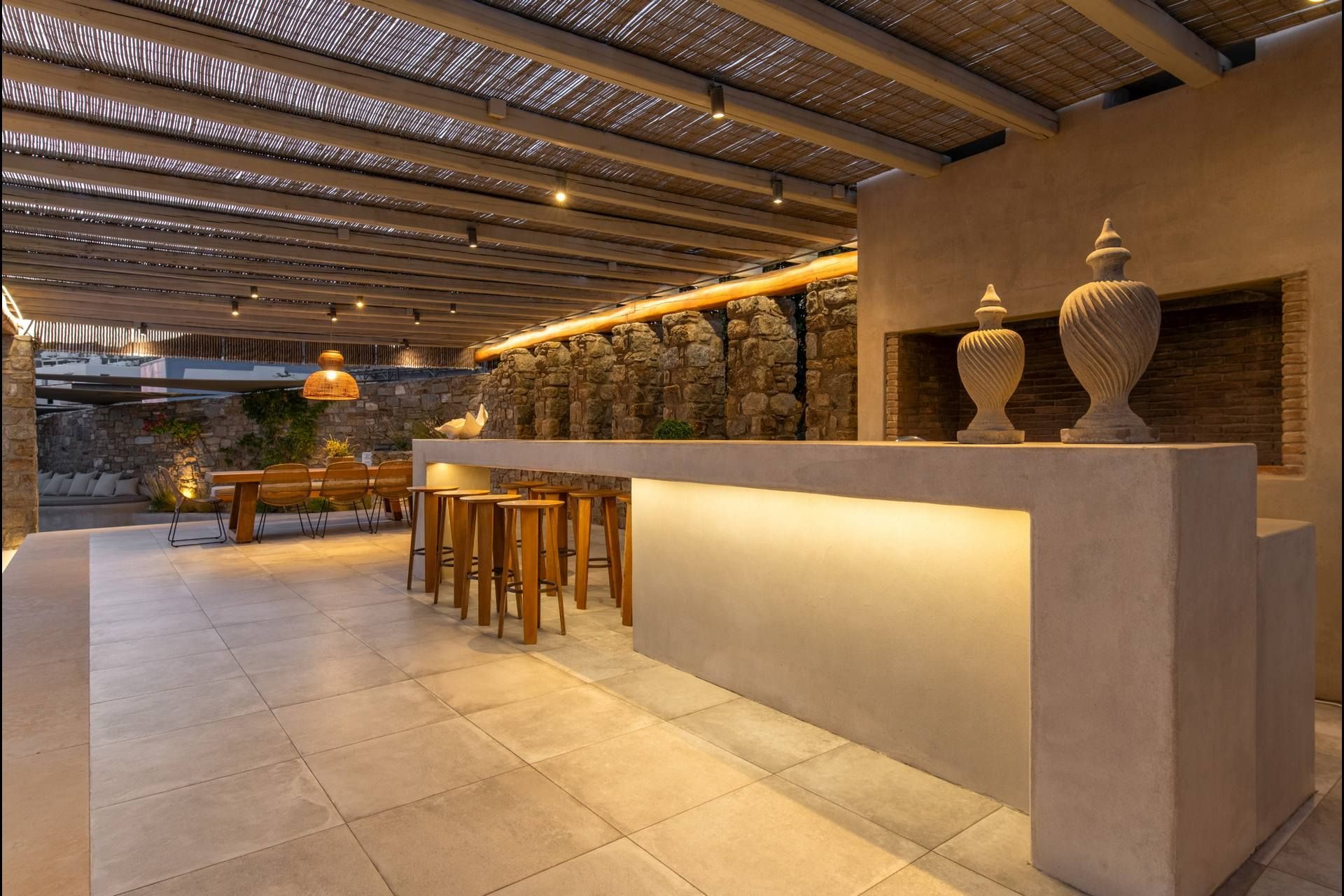 Carefully designed to offer protection from the strong winds in Mykonos, M One’s spacious pool terrace is a real paradise on earth. Lush gardens in front of the heated swimming pool will travel your senses, while you enjoy a refreshing plunge or unwind on the comfy sunbeds. You are going to love the BBQ, where you can grill local delicacies and enjoy them under the large pergola that features a big dining area. Sit back and relax. This is your vacation and all you have to do is let the sea breeze blow your worries away, while you take in the impeccable views of the Aegean archipelago.