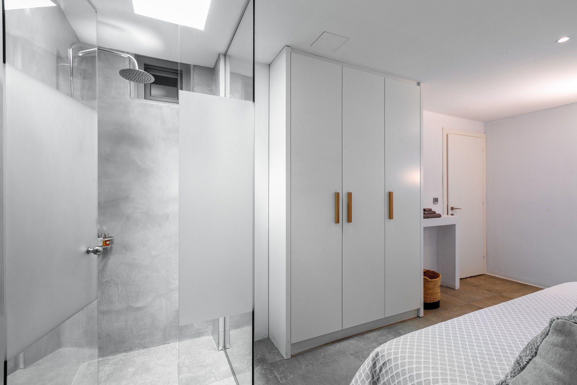 M One’s interiors are dressed in a classic white color scheme, with exposed-beam ceilings and the rounded edges of traditional Cycladic design. Mix that with sophisticated minimalism and some modern influence and you get a welcoming home to spend your summer days in Mykonos. The dining area is incorporated in the hyper-modern living room, while the kitchen is right beside and fully equipped. The en-suite bedrooms will spoil you with their luxury amenities and if you are looking for some homemade fun, a private fully equipped gym outside for you and a playroom for the little ones, or vice versa…, will keep everyone satisfied while at home.