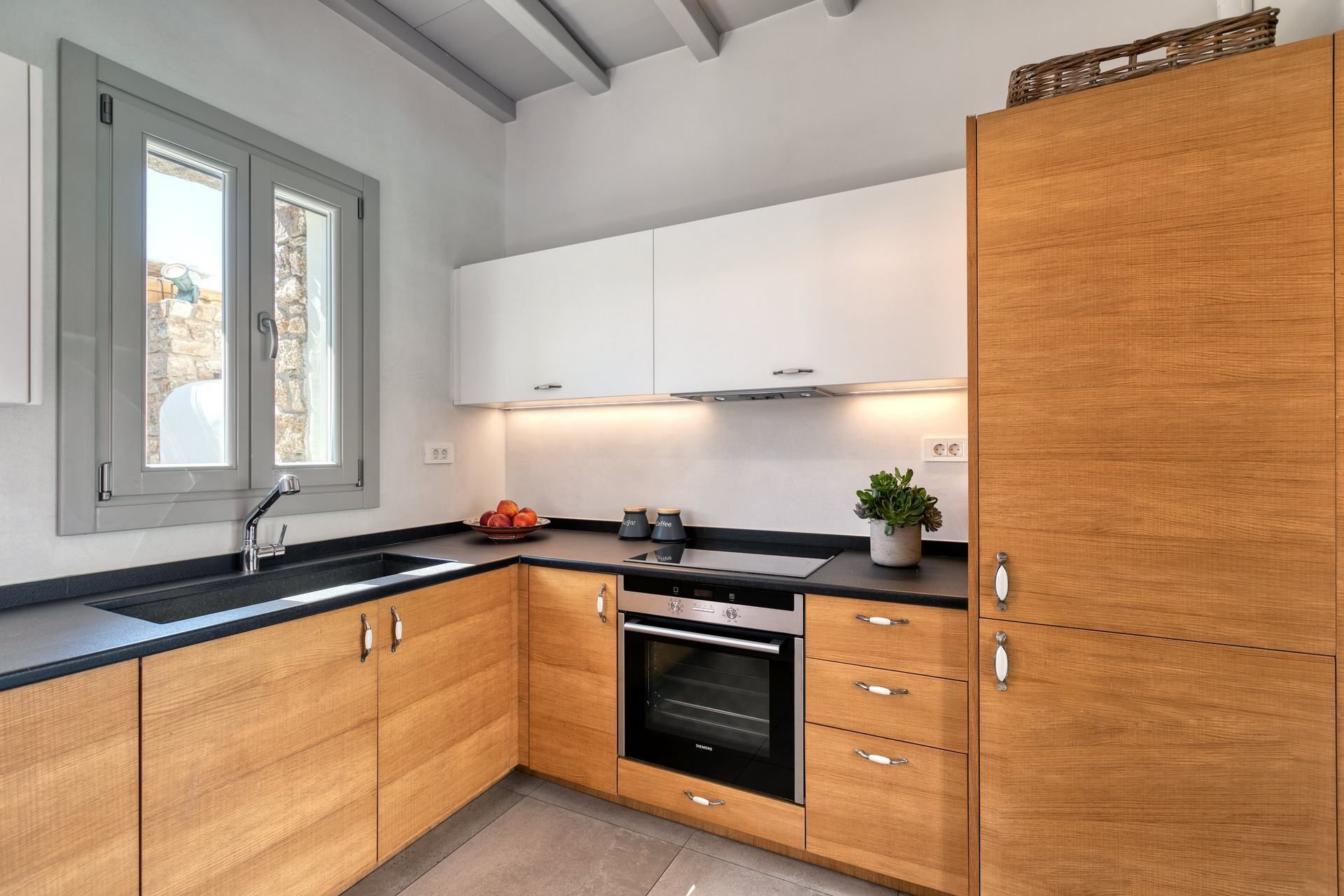 The interiors are minimalistic and aesthetically pleasing, combining state-of-the-art amenities with traditional Cycladic architecture. Each villa is unique, as far as facilities and design are concerned, yet all four share the same special qualities of coolness, calmness, and breathtaking views. Fully equipped kitchens, king-size beds, A/C, safe boxes, hairdryers, and satellite TVs, there is nothing missing to make you feel at home here. Leave everything behind and let the Greek light and the villas’ open plan ambiance travel your senses.