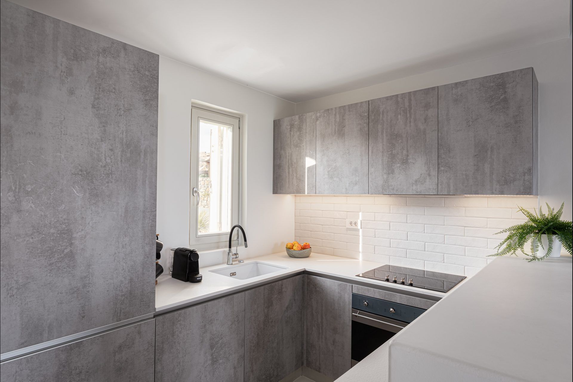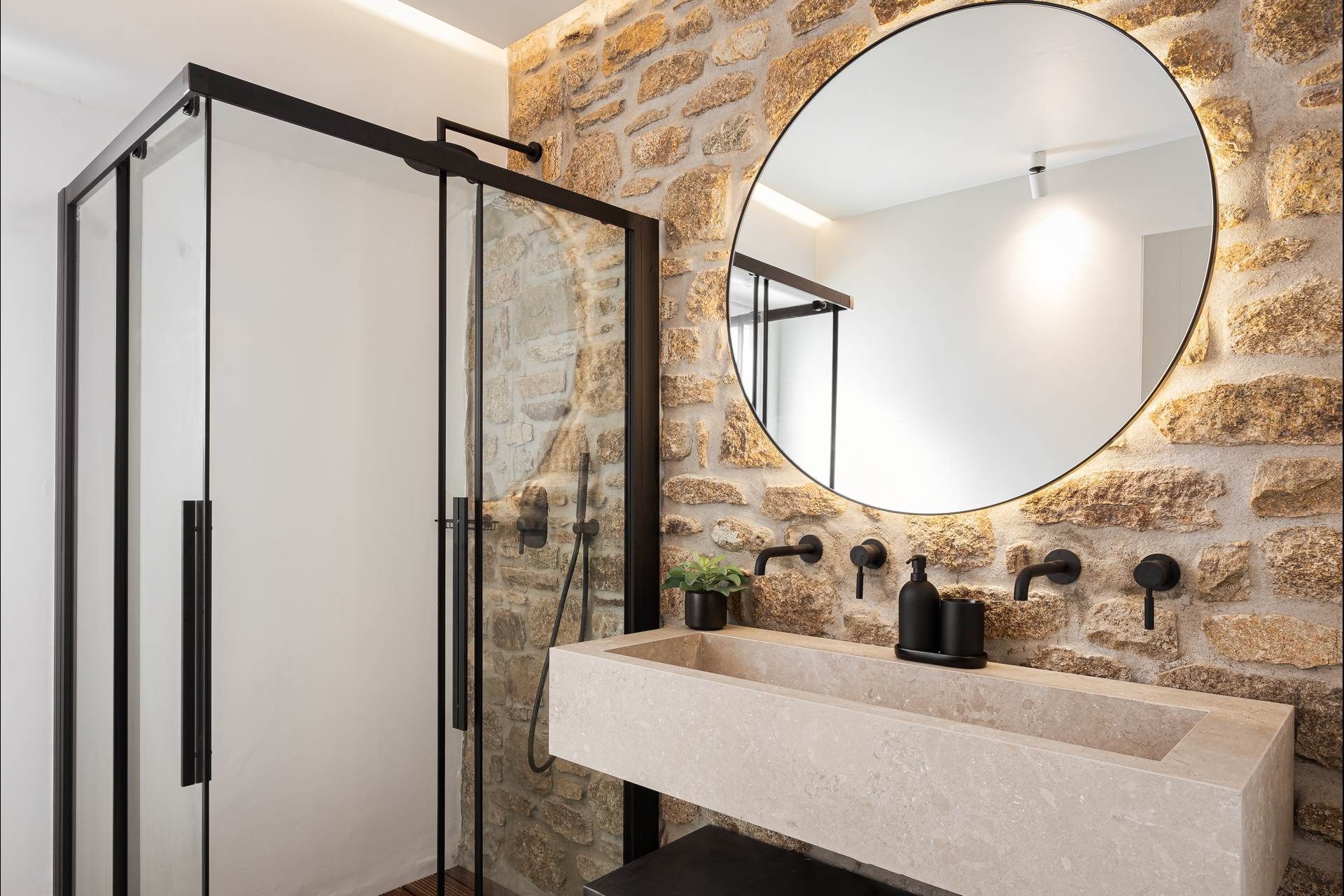 Inside, Mareblu keeps its look simple and welcoming. The pool level holds the living room, the fully equipped open plan kitchen, and a dining area for up to six, all opening to the terrace. Bedrooms are distributed for comfort, with a sea view suite opening onto the pool terrace and upstairs rooms enjoying access to a balcony with a heated jacuzzi. Twin configurations work well for children or friends, and desks in select rooms offer a quiet spot for emails without taking over the holiday.