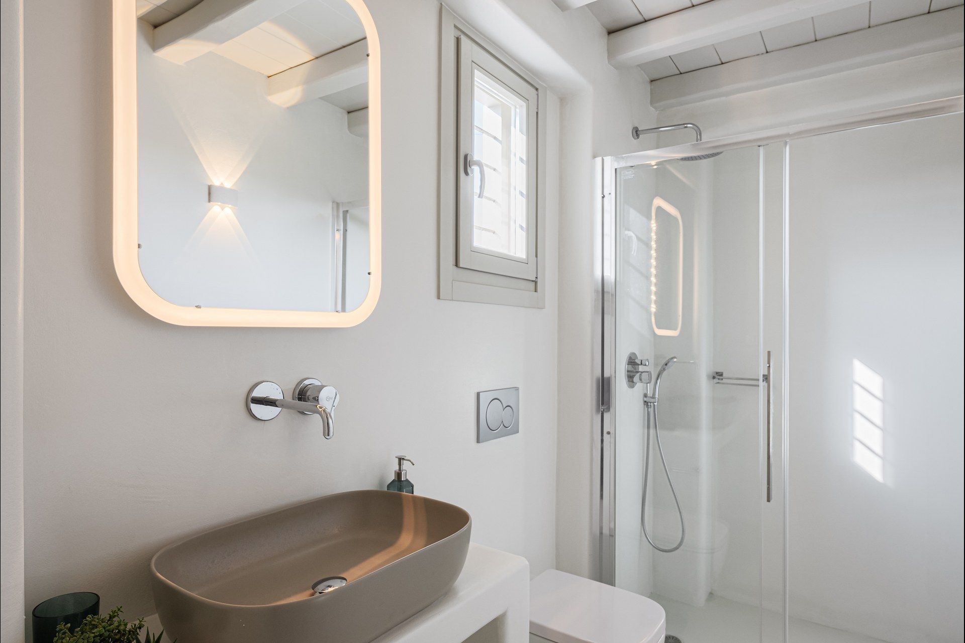 Kalafatis and nearby Agia Anna beach are a short drive away, making beach days easy, especially for families who like to keep plans light. Mykonos Town is an easy drive for shopping and evenings out, and popular venues on the south side are also reachable when you want a change of pace. Mareblu is pet friendly upon request and family friendly by design. With private parking for up to seven cars, it is well suited to guests who like independence and smooth logistics.
