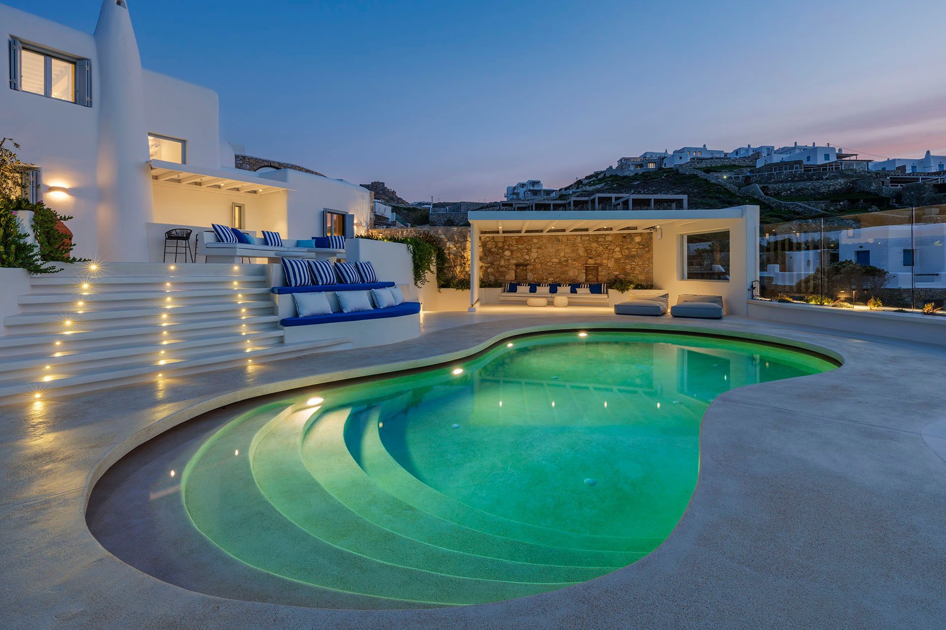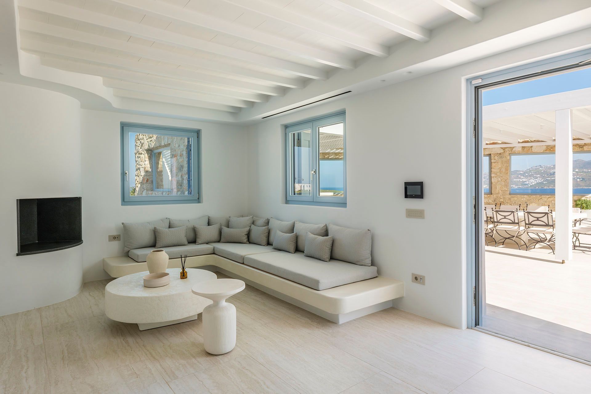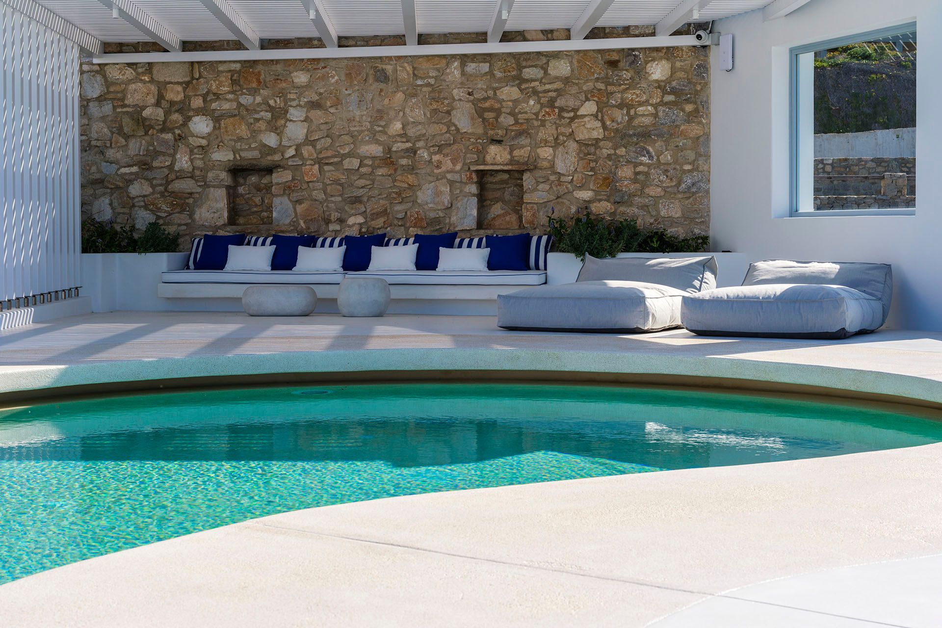 A small sandy beach sits a short walk away from Nostos for quick swims, while Ornos is an easy drive when you want organized beaches and a livelier shoreline. Mykonos Town is also within comfortable driving distance for shopping, dining, and nights out, and Nammos is easy to reach when you are in the mood for a more social scene. Overall, it’s a luxury Mykonos villa that suits guests who prioritize privacy but still like to move around the island without being in the thick of the busiest areas.