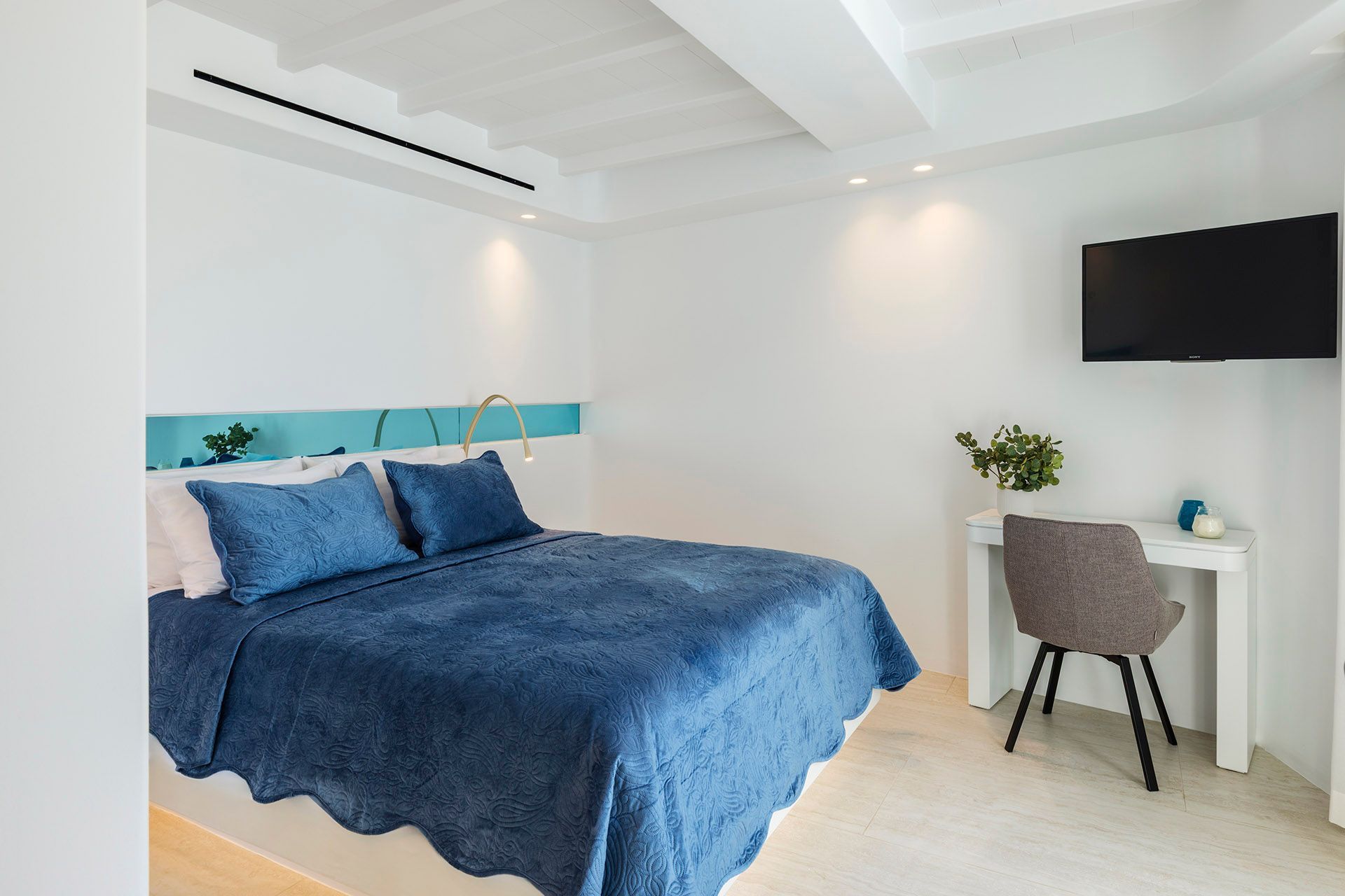 2 bedrooms each with built-in queen-size bed, A/C, TV, ensuite bathroom with shower, mini fridge, safe box, desk, closet, access to balcony, sea & sunset view