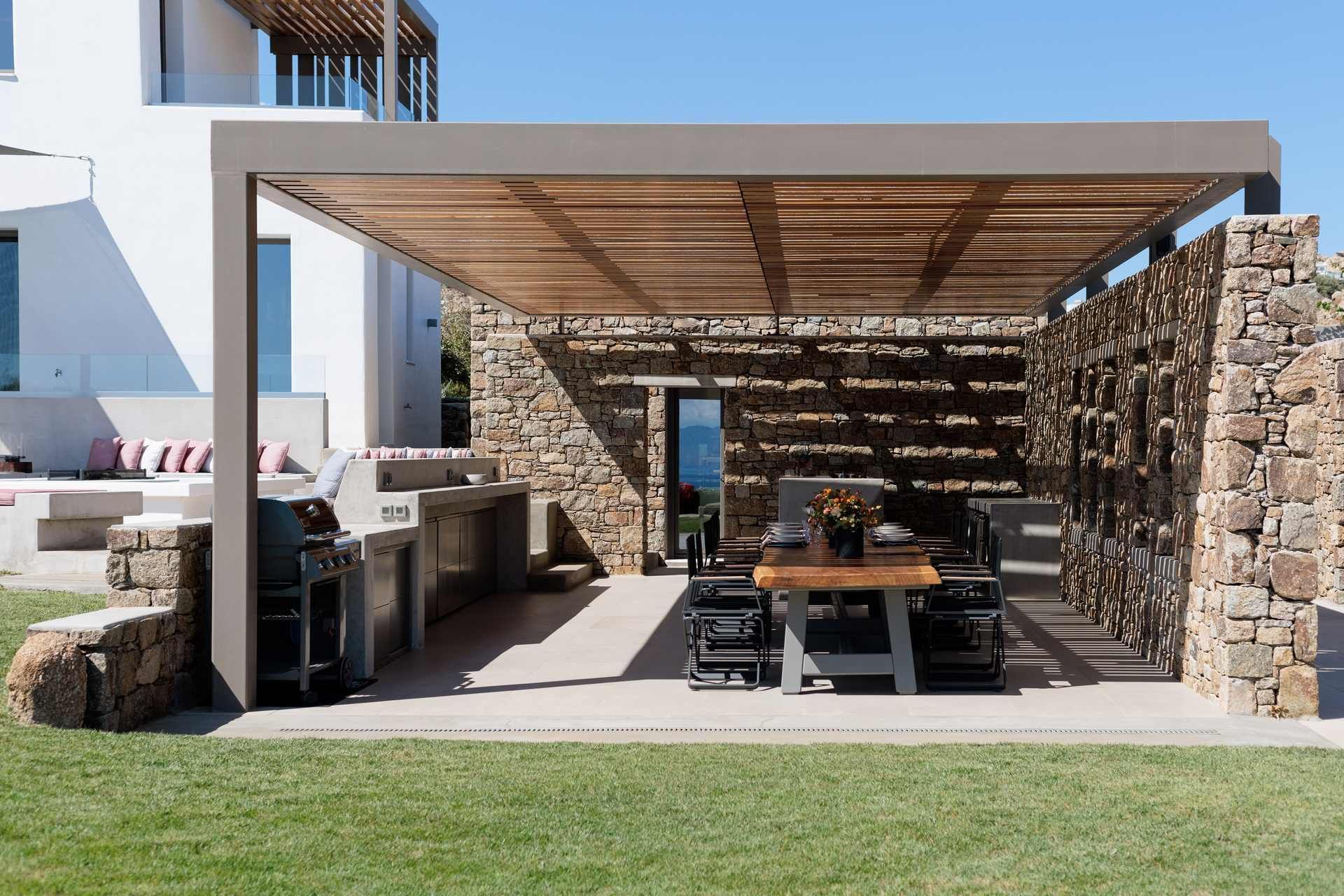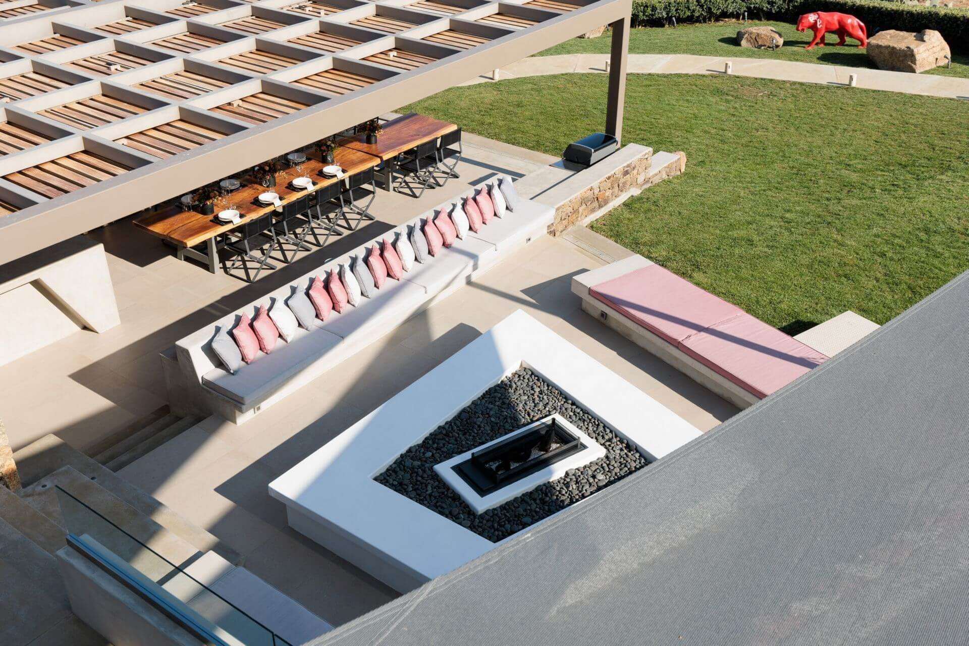 Surrounded by nature, and built with natural materials, the villa offers majestic views of the setting sun and Paradise Beach. Scarlet has private landscaped gardens as well as a green grass lawn by the pool. The large 120 sqm pool has a reverse swimming feature and there is an adjacent hot tub for up to 12 people. There are two sun-lounging areas, one by the pool and one on a lower-level, which has a center fireplace for those special moments under the stars after a long day of holiday bliss. As if all this wasn’t enough, there is also another private jetted and heated pool outside one of the bedroom suites, and 2 of the suites have an outdoor hot tub. For your alfresco dining there is an outdoor dining area with a BBQ grill for the private chef to cook, while you relax and unwind in your paradise villa.