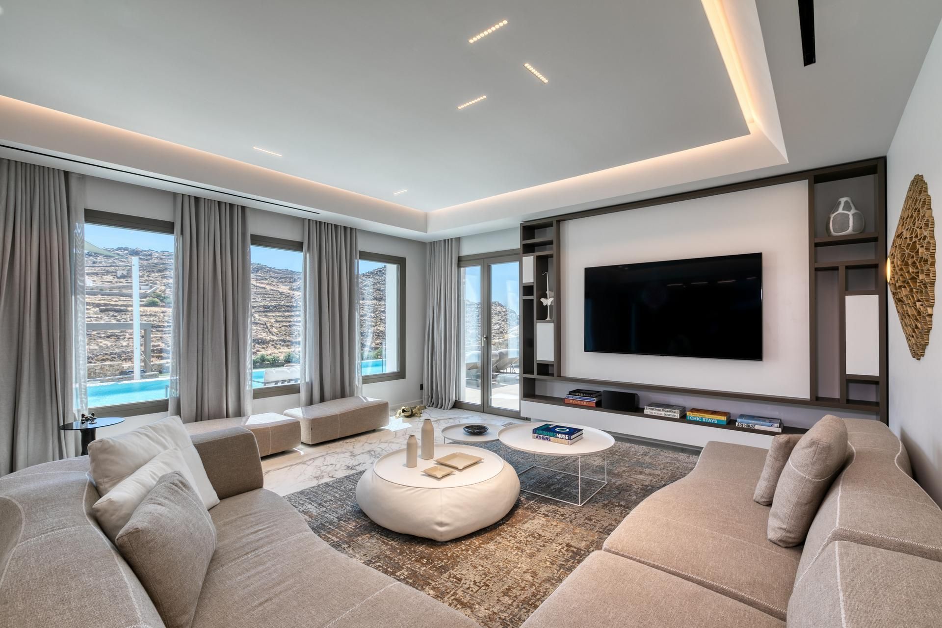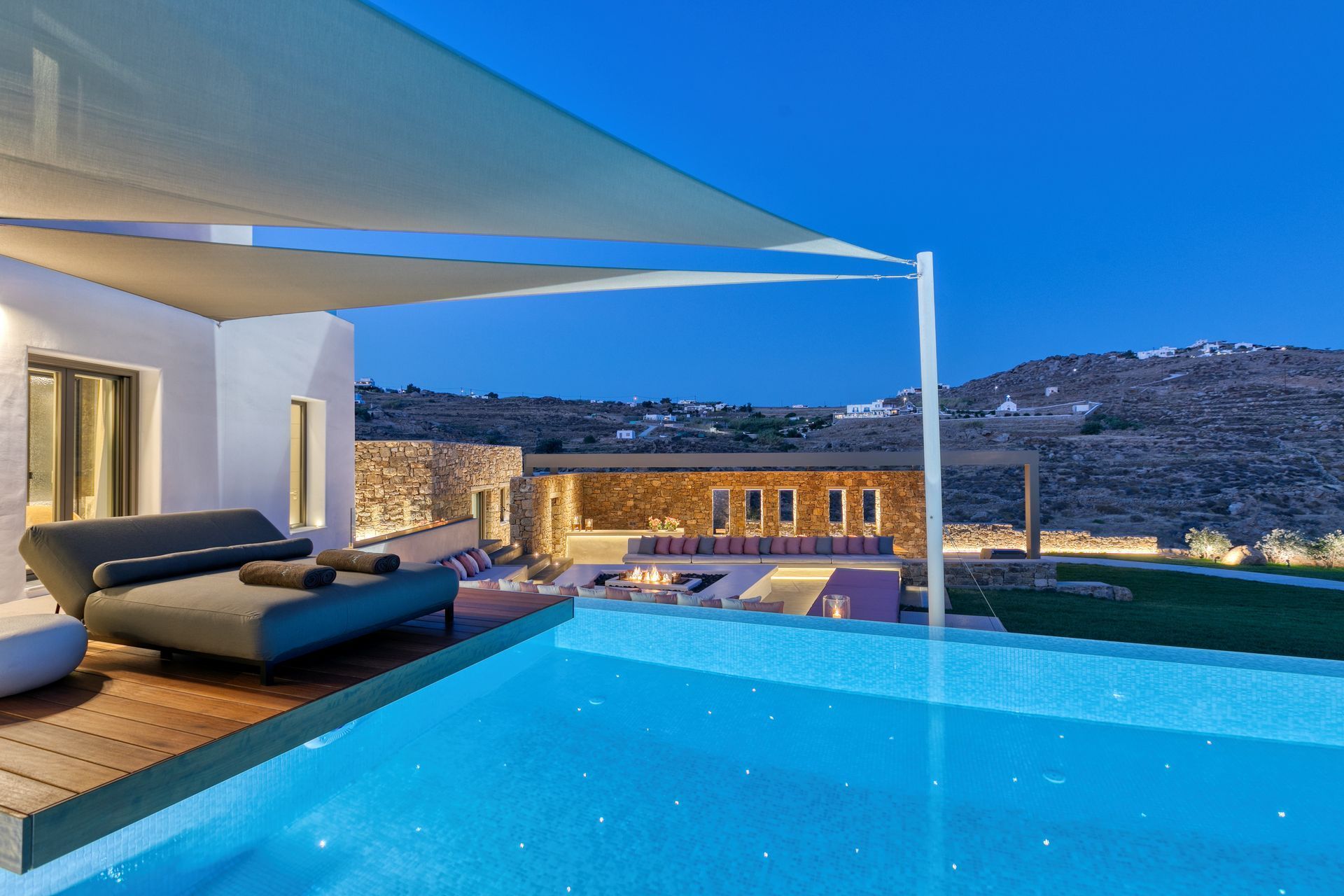 Built on a privileged hillside location, Scarlet is a secluded haven with panoramic sea views. Only a few miles away from the vibrant Mykonos town and 800 meters from the famous Paradise Beach, this luxury villa is for those who cherish privacy and serenity but also want to be near to the island’s hotspots. There are 7 deluxe en-suite bedrooms, a huge outdoor space of 4,000 sqm, and all the top-class amenities and services of a 5*hotel. This is a secure gated property, with a security alarm system and private parking space for up to 6 cars.