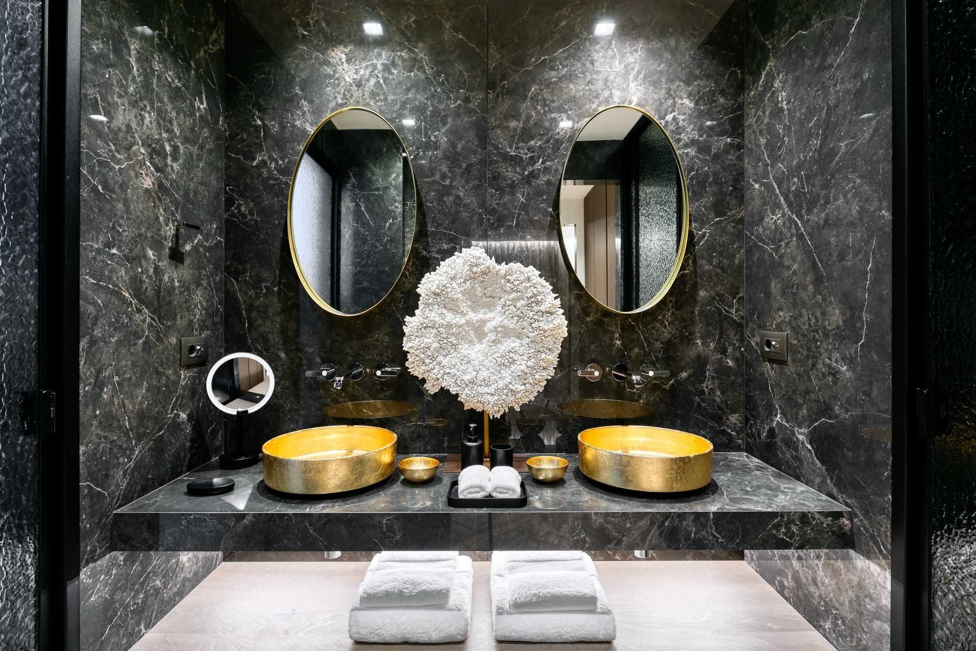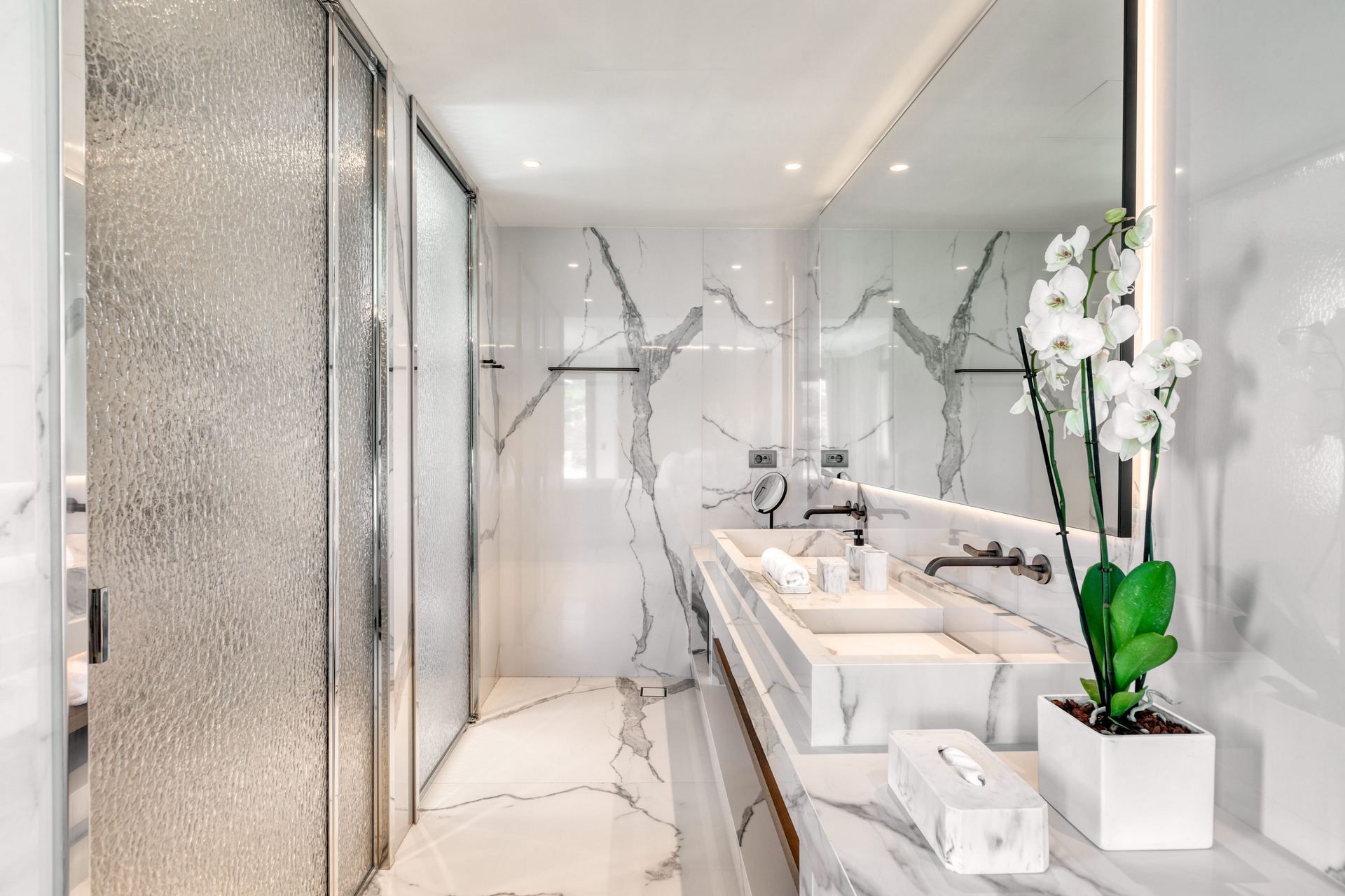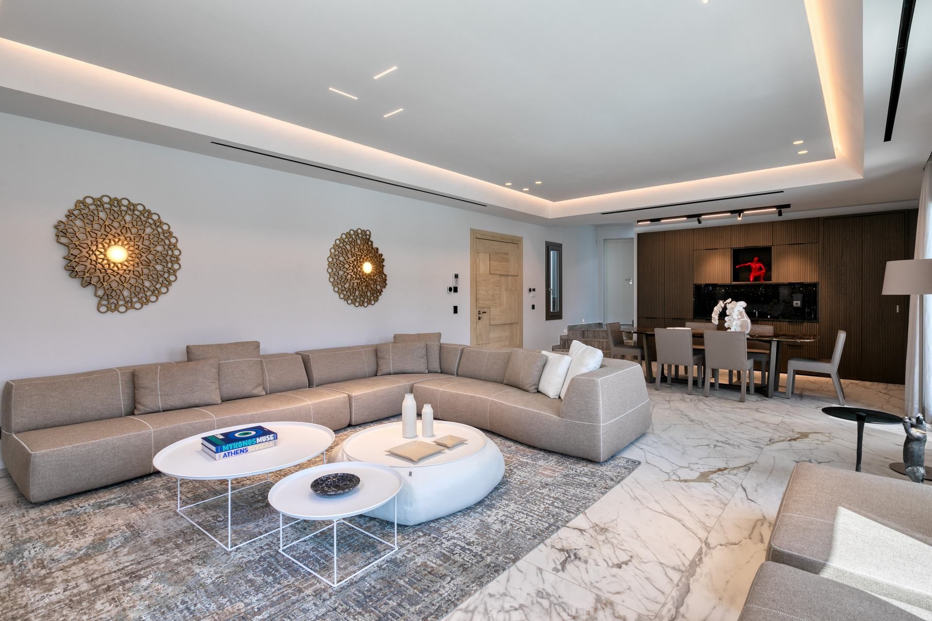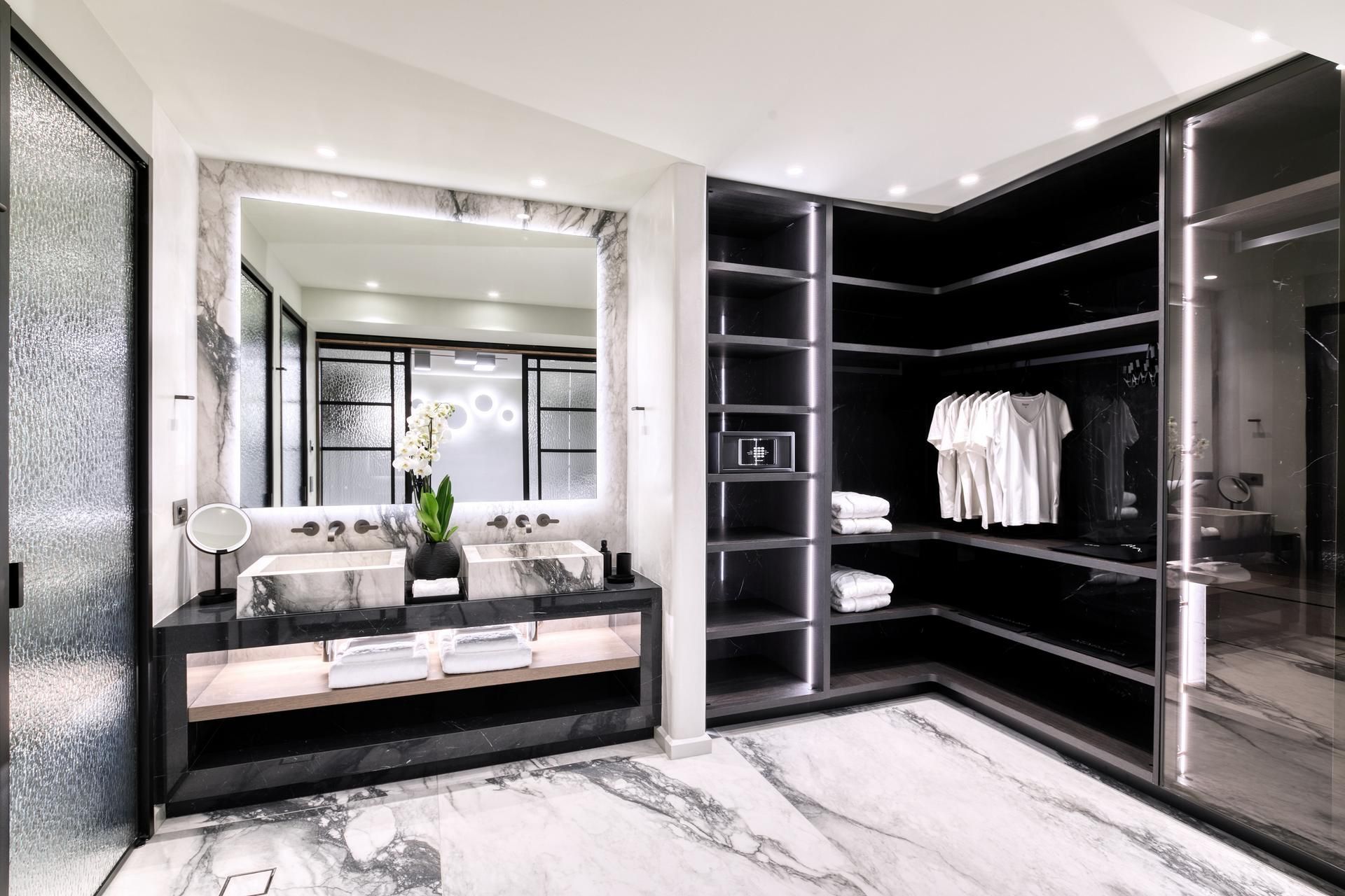 Scarlet is a contemporary, stylish modern property, with top-quality interior design and amenities. The cool, neutral tones, the marble flooring and dark wood finishing create an ambience of total luxuriousness. The spacious living room has huge window doors onto the pool terrace, there is a fully equipped kitchen and a dining room for up to 10 guests leading to the outdoor dining area, and there is also a fitted bar area for your morning espresso. On the upper level there are 2 master bedrooms, sharing an outdoor hot tub, while on the ground level there are 4 deluxe bedrooms with access to the terrace. There is also an independent guest suite accessed through the garden, with its own private heated and jetted swimming pool with a sundeck. Every part of the villa has modern ambient lighting to create the perfect setting for your perfect luxury vacation.