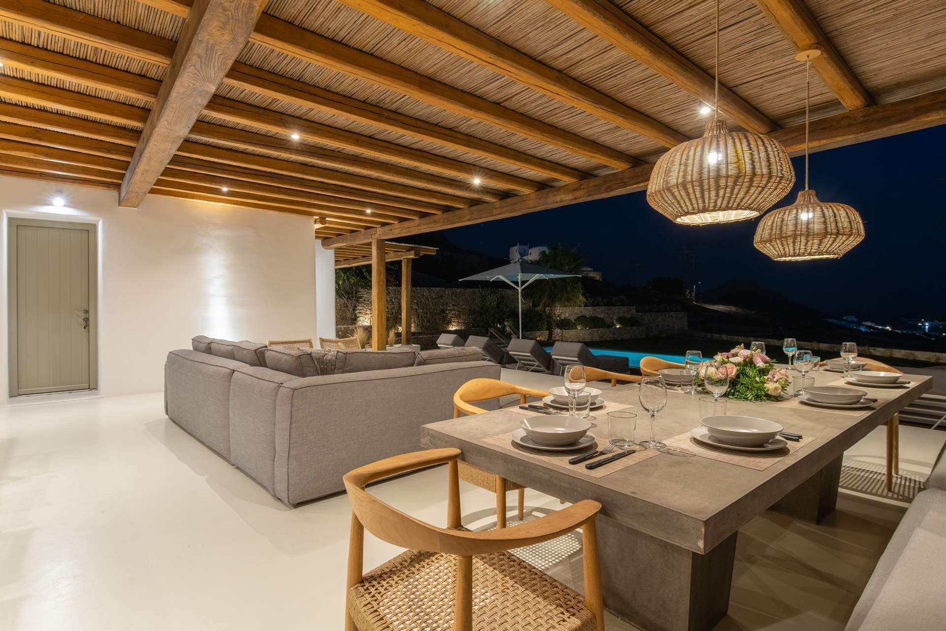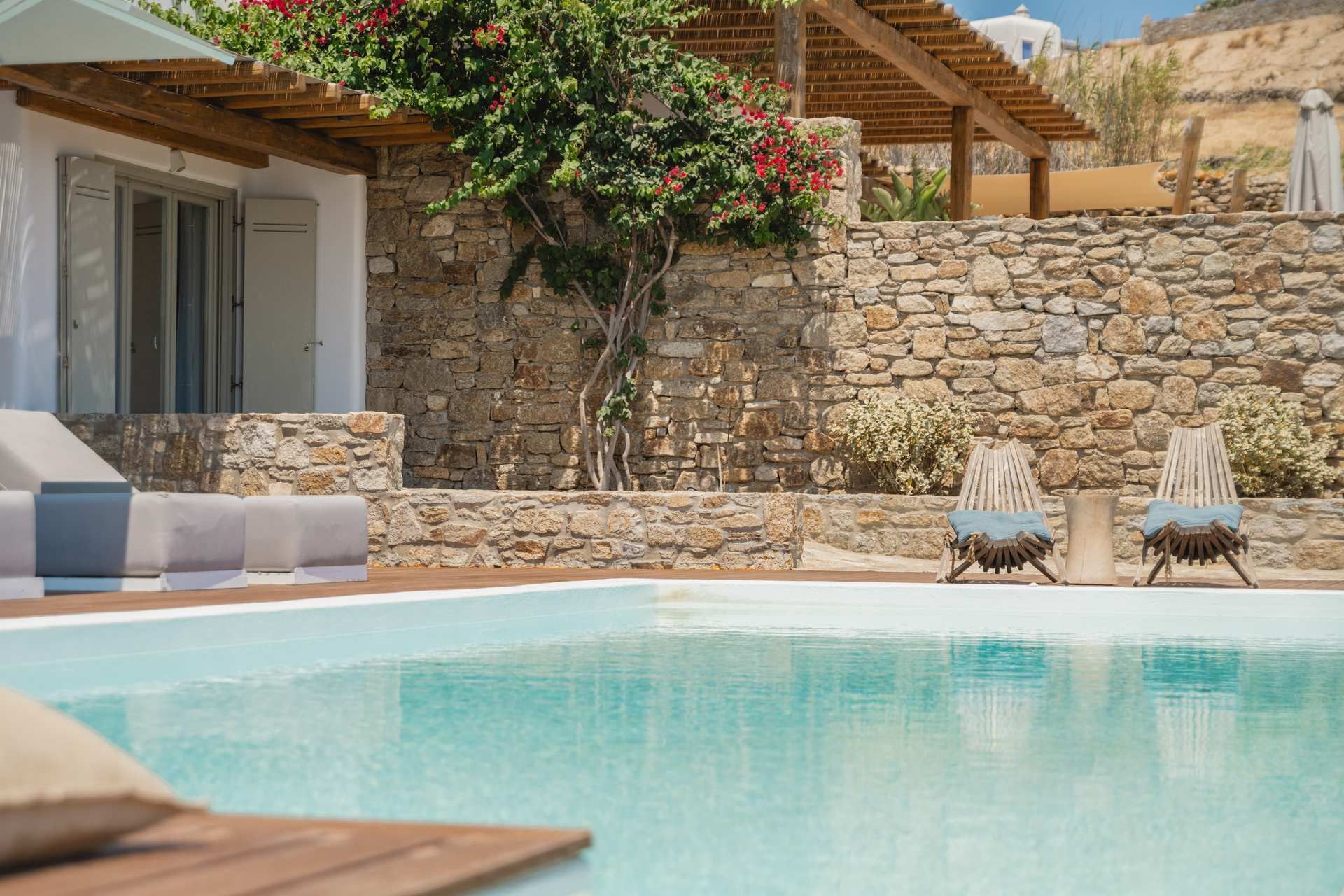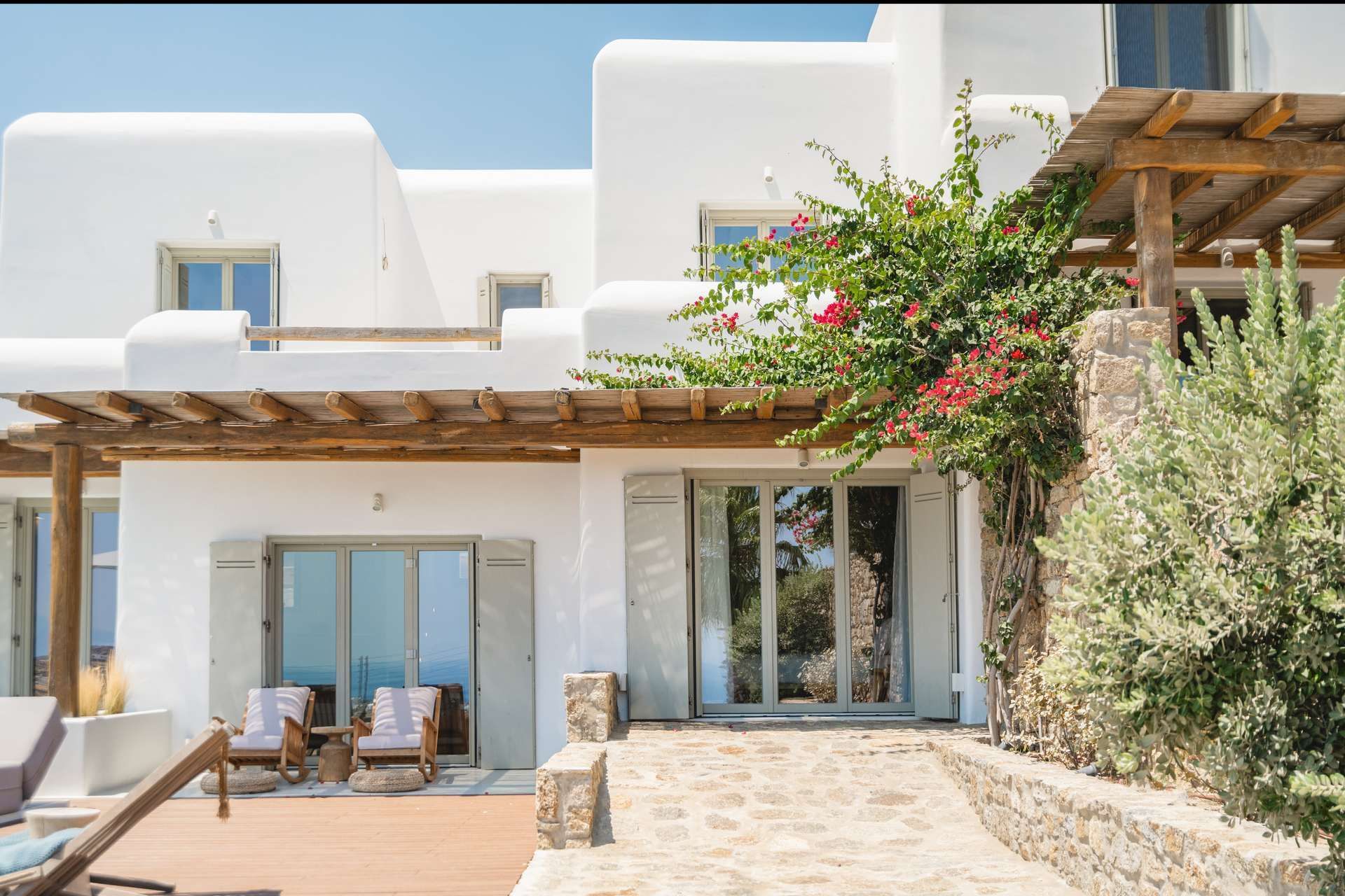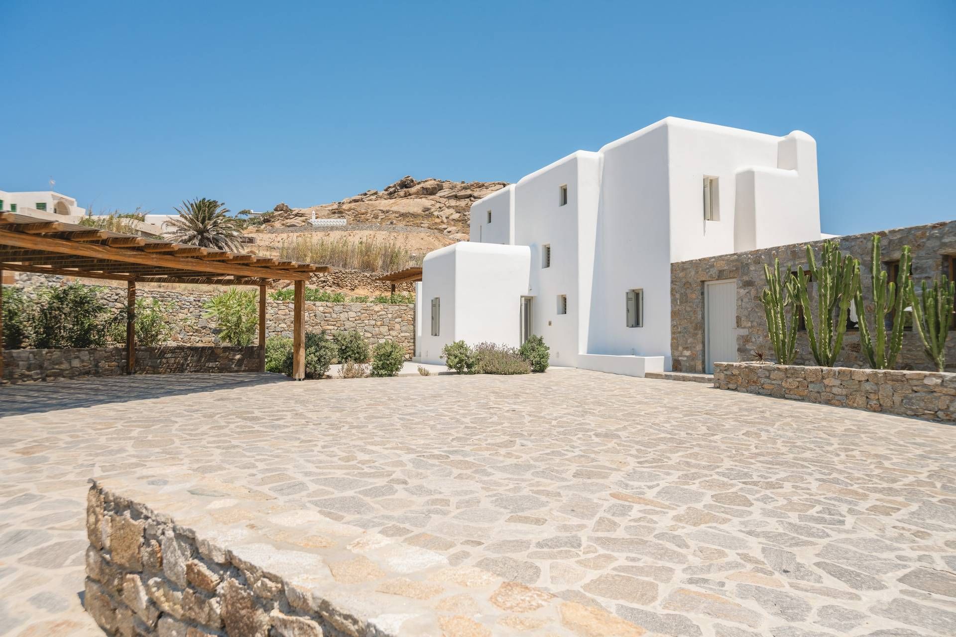 Kalafatis has a more laid-back atmosphere than some of the busier Mykonos areas and is popular with both families and water sports enthusiasts, with Agia Anna and other sandy beaches lying close by and Mykonos Town within a short drive. Villa Silk can welcome pets on request, and the estate offers private parking for a number of cars, which is useful for larger groups. Our concierge support can assist with transport, reservations, in-villa dining, childcare arrangements, and activities so that planning is kept simple.