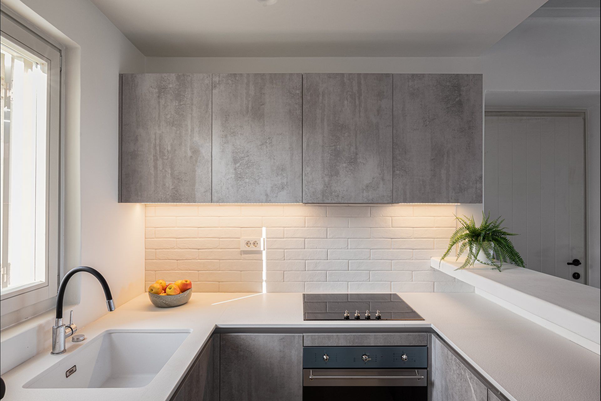 Inside, three individual villas mean families can spread. Each has its own living room, kitchen, and dining area, so breakfasts or early nights can be kept separate when needed. The fifteen ensuite bedrooms come in different configurations, including queen beds, doubles, and twins, some with desks and some with access to private balconies or terraces with sea view. Independent guest rooms with separate entrances are helpful for grandparents, teenagers, or staff, while the overall style is bright and uncluttered.