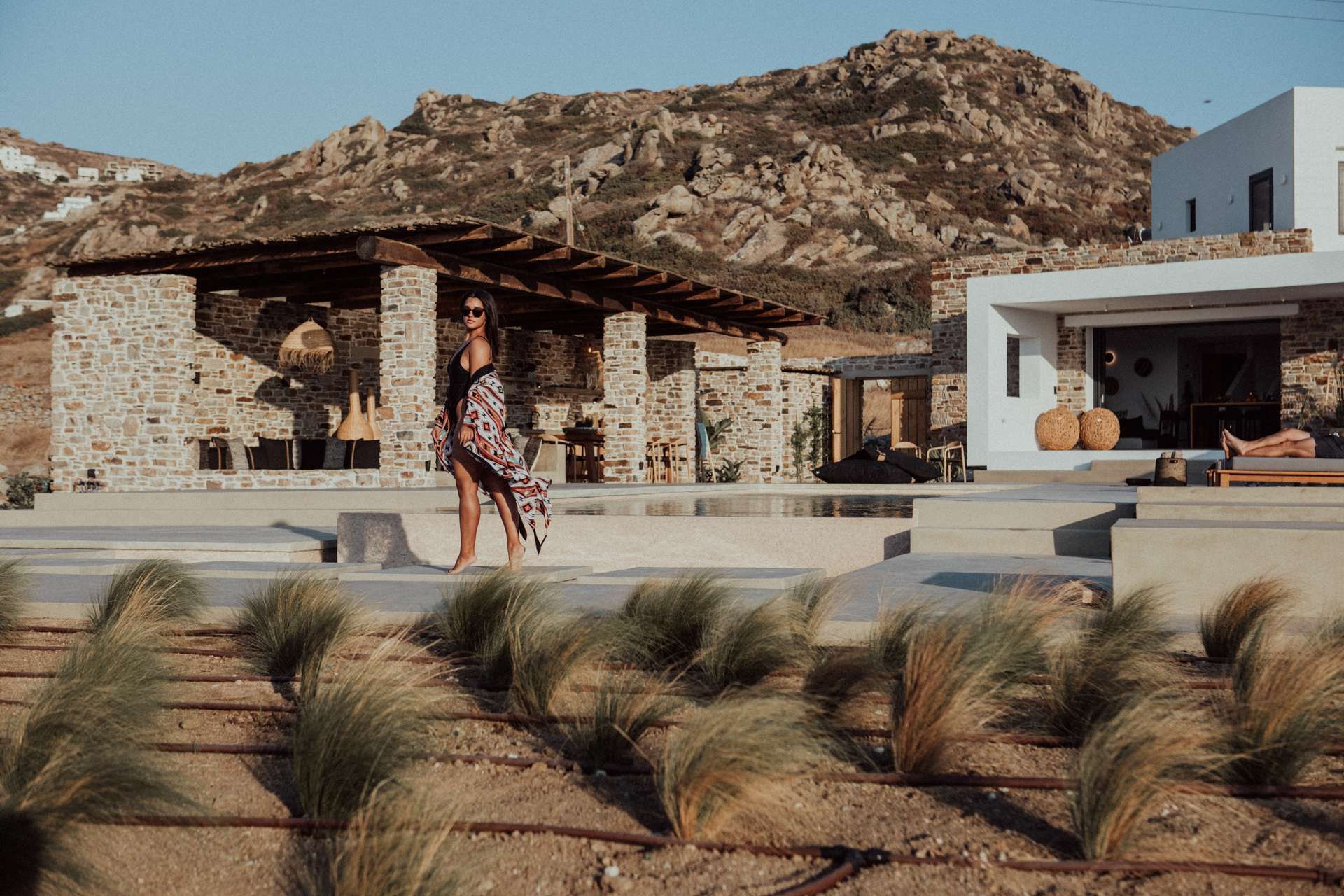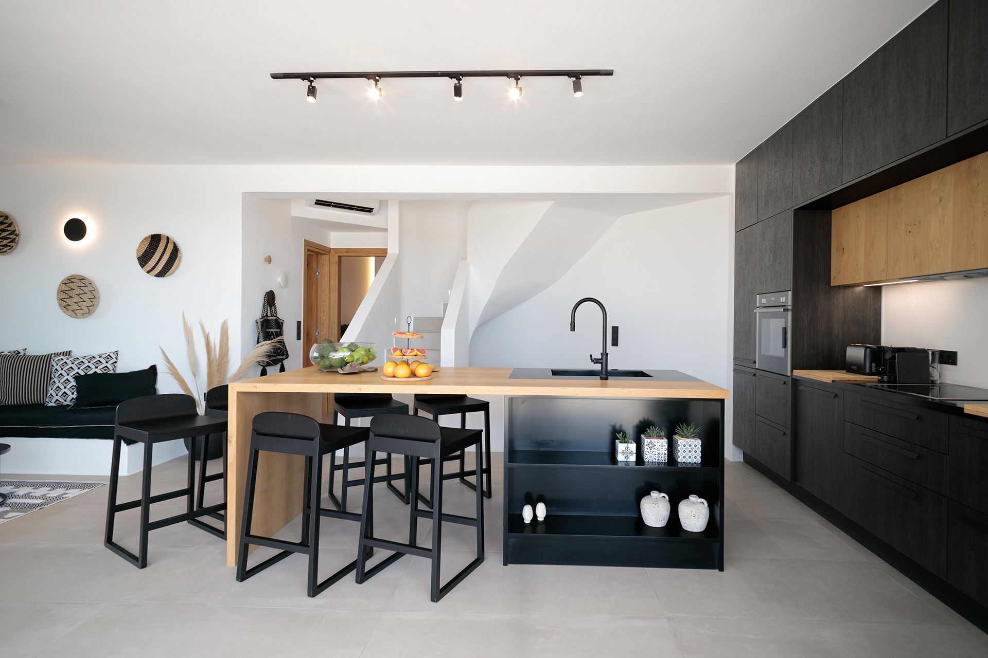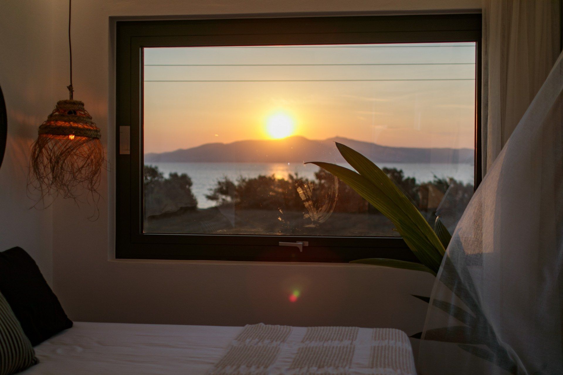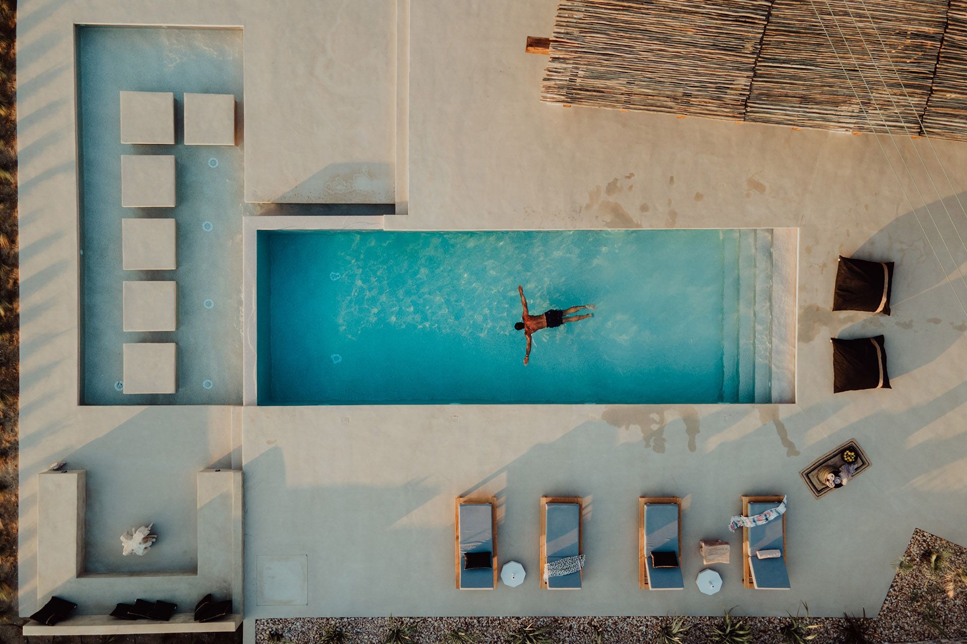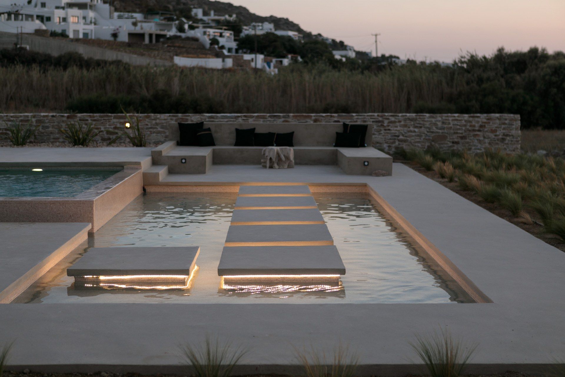 Villa Crumbelle is the kind of place where you can forget schedules, because the beach is literally at your doorstep. Set in Orkos, Naxos, it hosts up to eight guests plus four children across five bedrooms arranged over three levels. The design stays bright and minimal, with white surfaces, natural stone, and simple forms that feel contemporary yet deeply Cycladic. Panoramic sea views and sunset light shape the mood, while the pool and two jacuzzis anchor daily life outdoors.