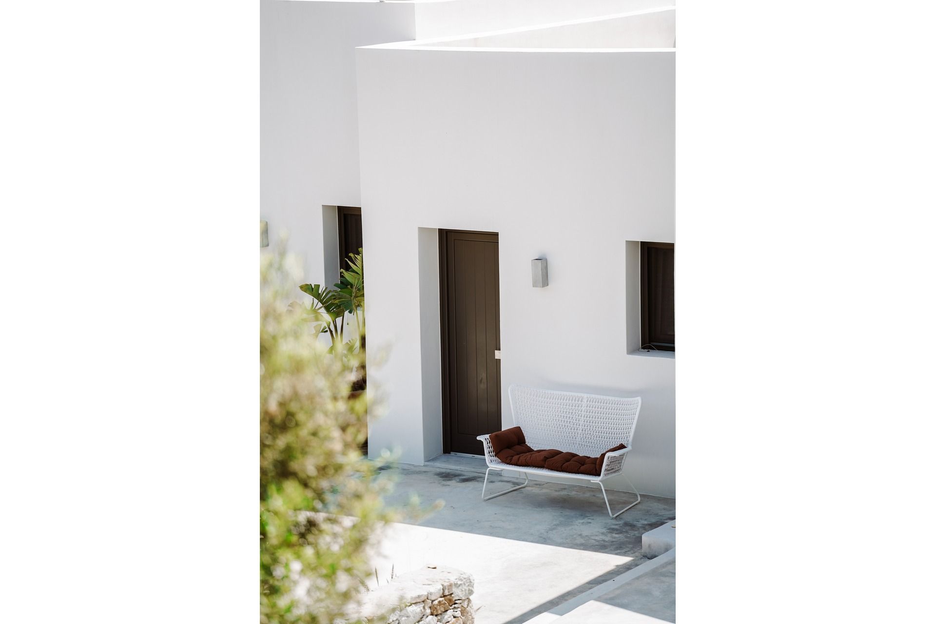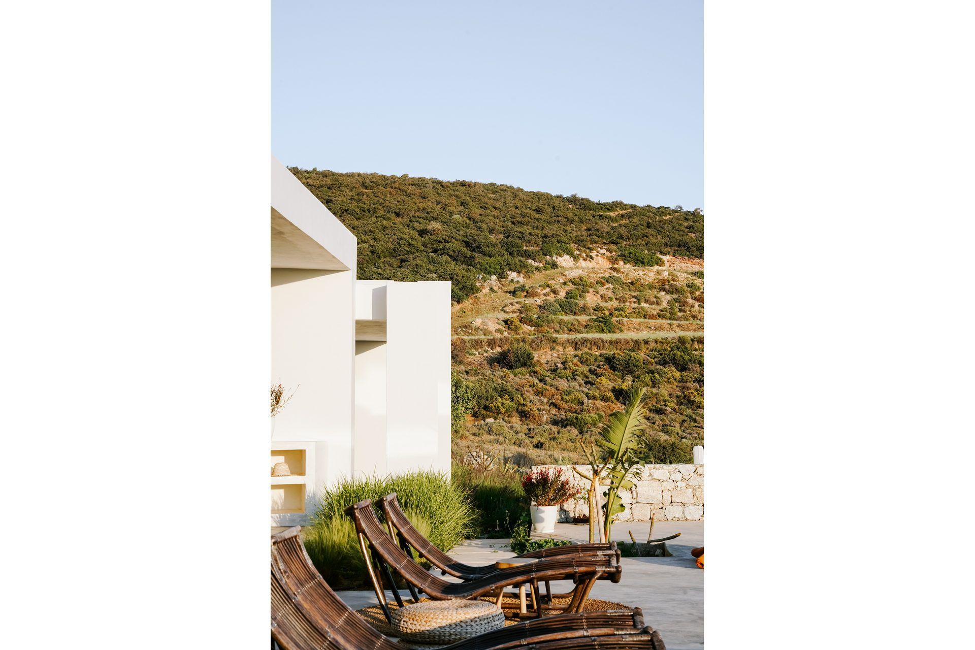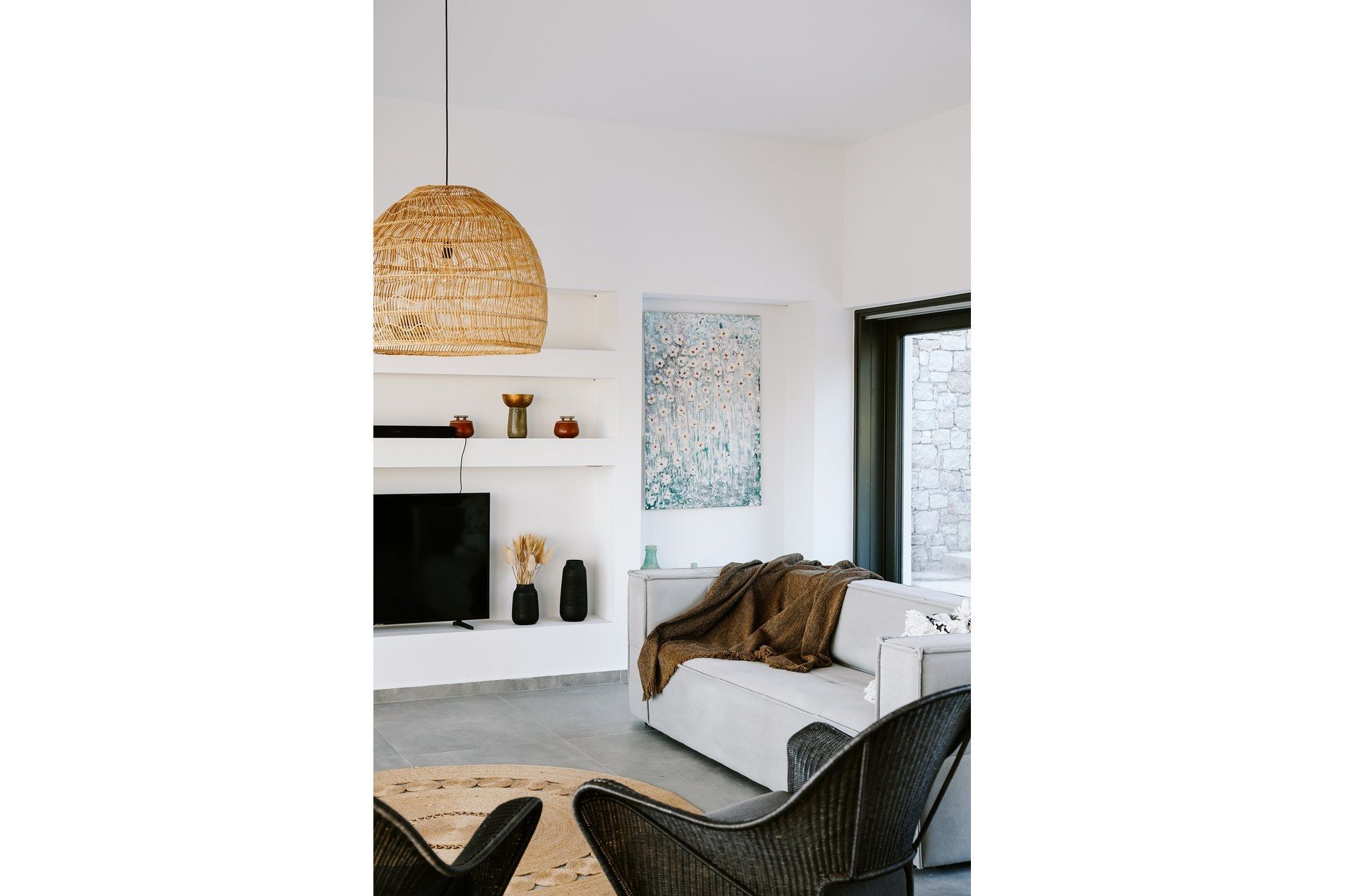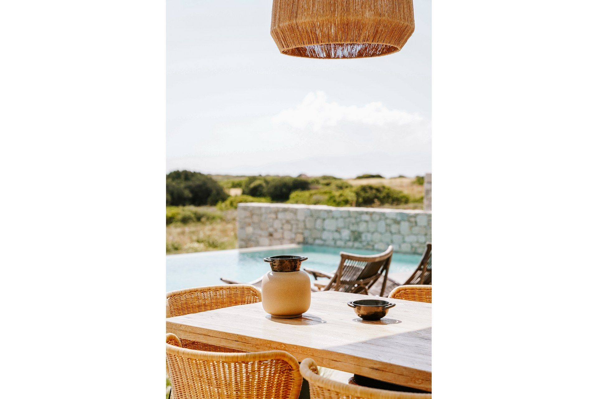 Villa Velour offers a grounded and flexible space for those who value understated comfort, thoughtful design, and the natural beauty of Naxos. Quietly located in the southwest part of the island, the villa accommodates up to six guests plus 2 children across three independent bedrooms, blending Cycladic architecture with a modern, earthy sensibility. It’s a place where you can be together without feeling confined, with open views, gentle sea breezes, and enough space to make each day your own.