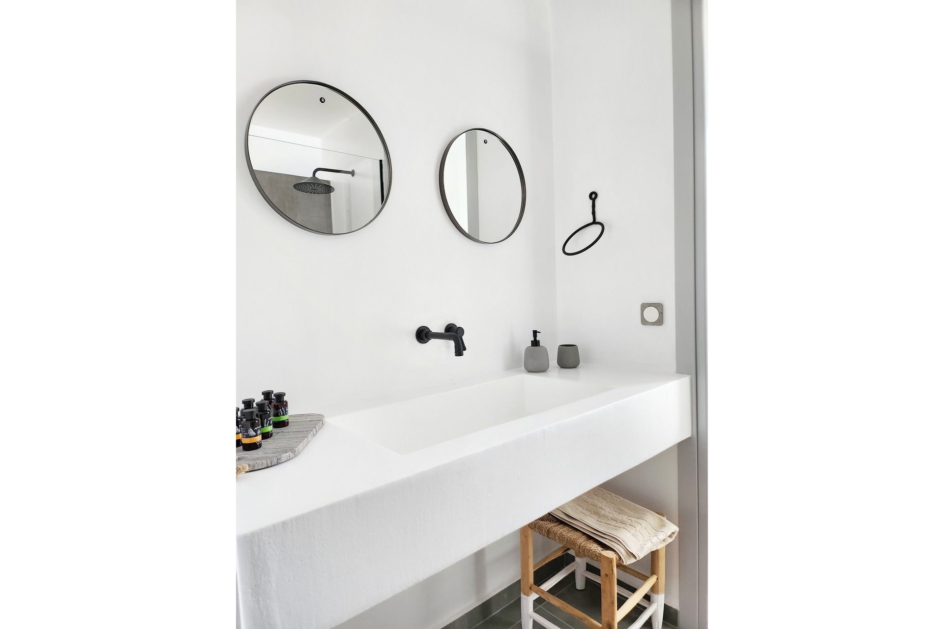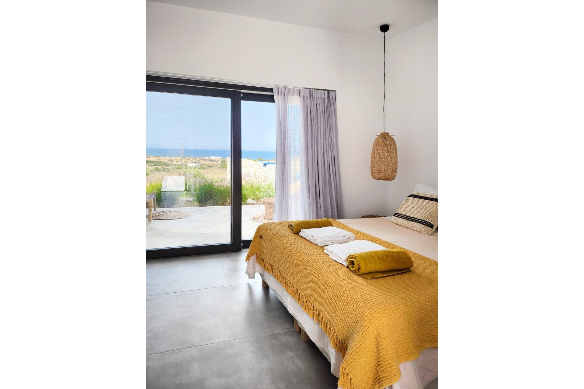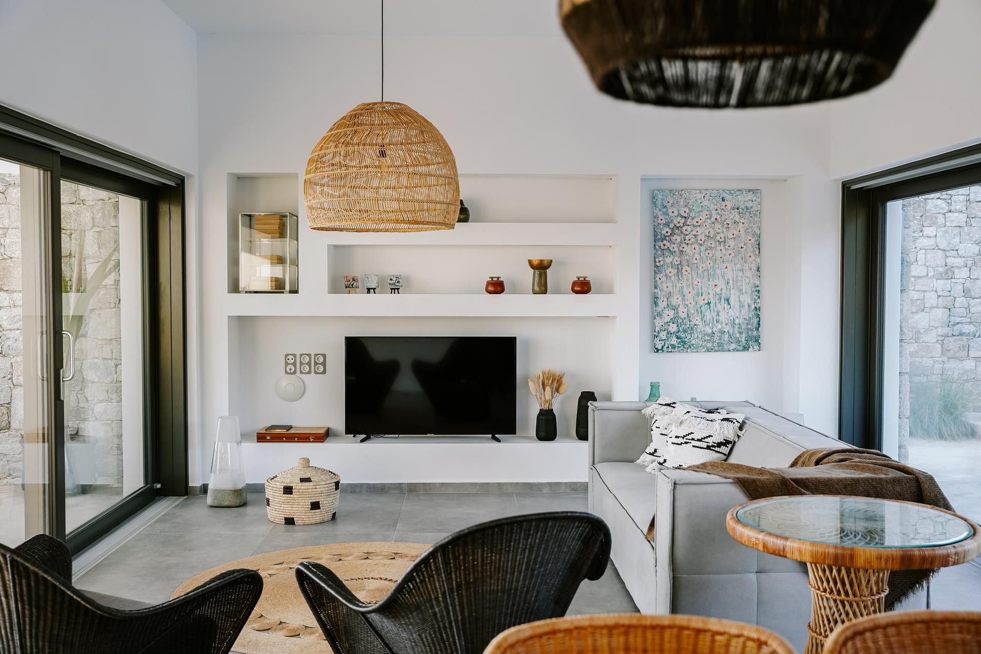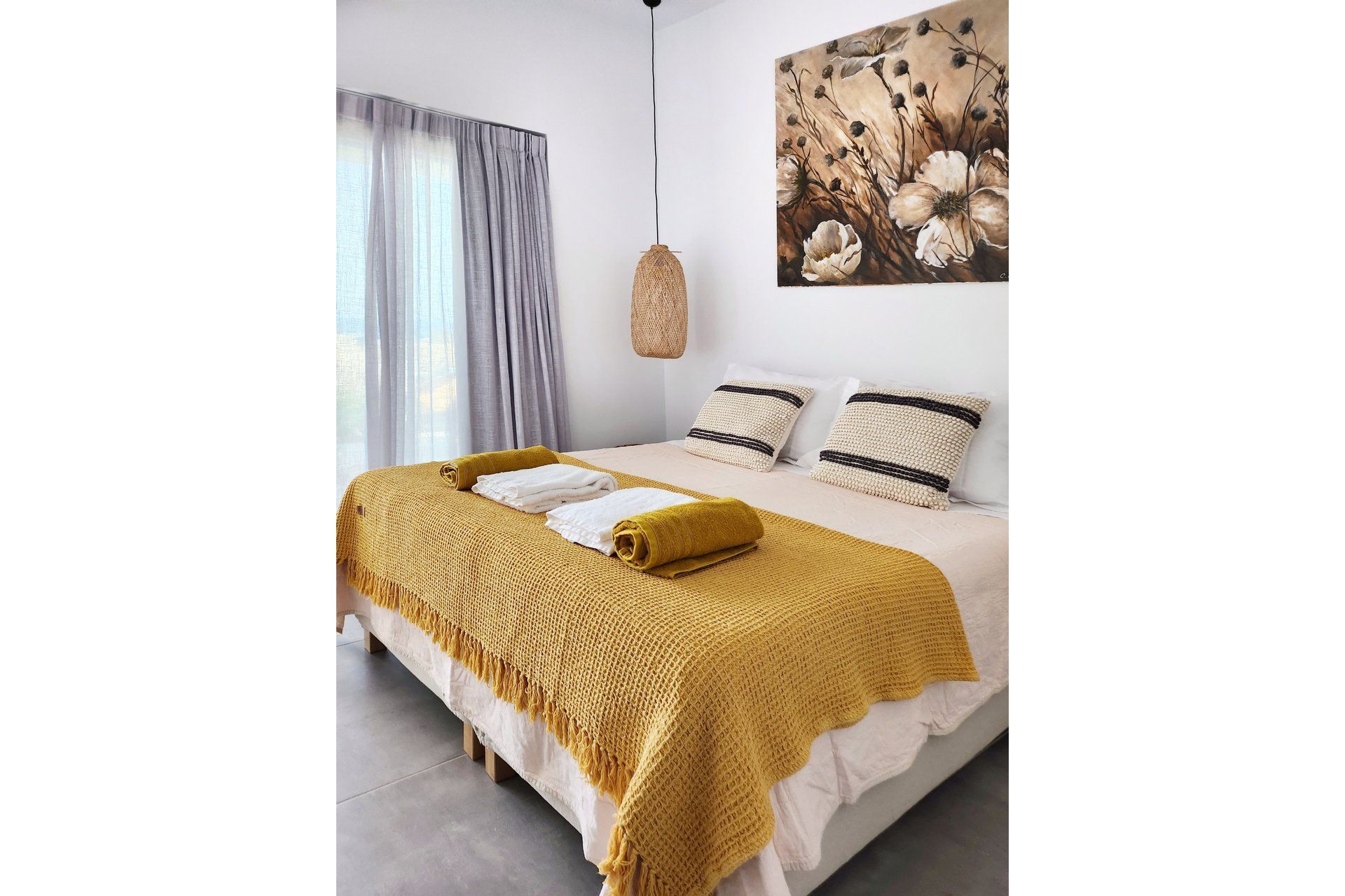 Villa Velour offers a grounded and flexible space for those who value understated comfort, thoughtful design, and the natural beauty of Naxos. Quietly located in the southwest part of the island, the villa accommodates up to six guests plus 2 children across three independent bedrooms, blending Cycladic architecture with a modern, earthy sensibility. It’s a place where you can be together without feeling confined, with open views, gentle sea breezes, and enough space to make each day your own.