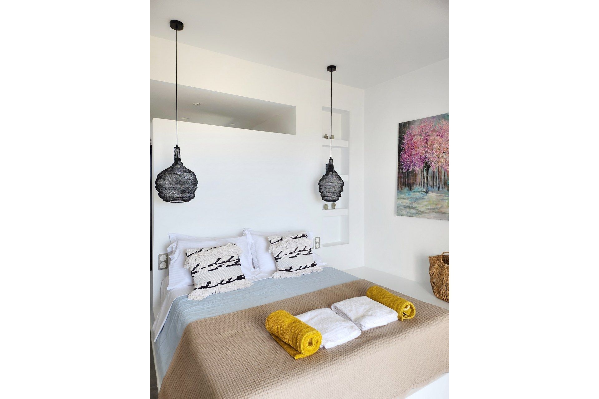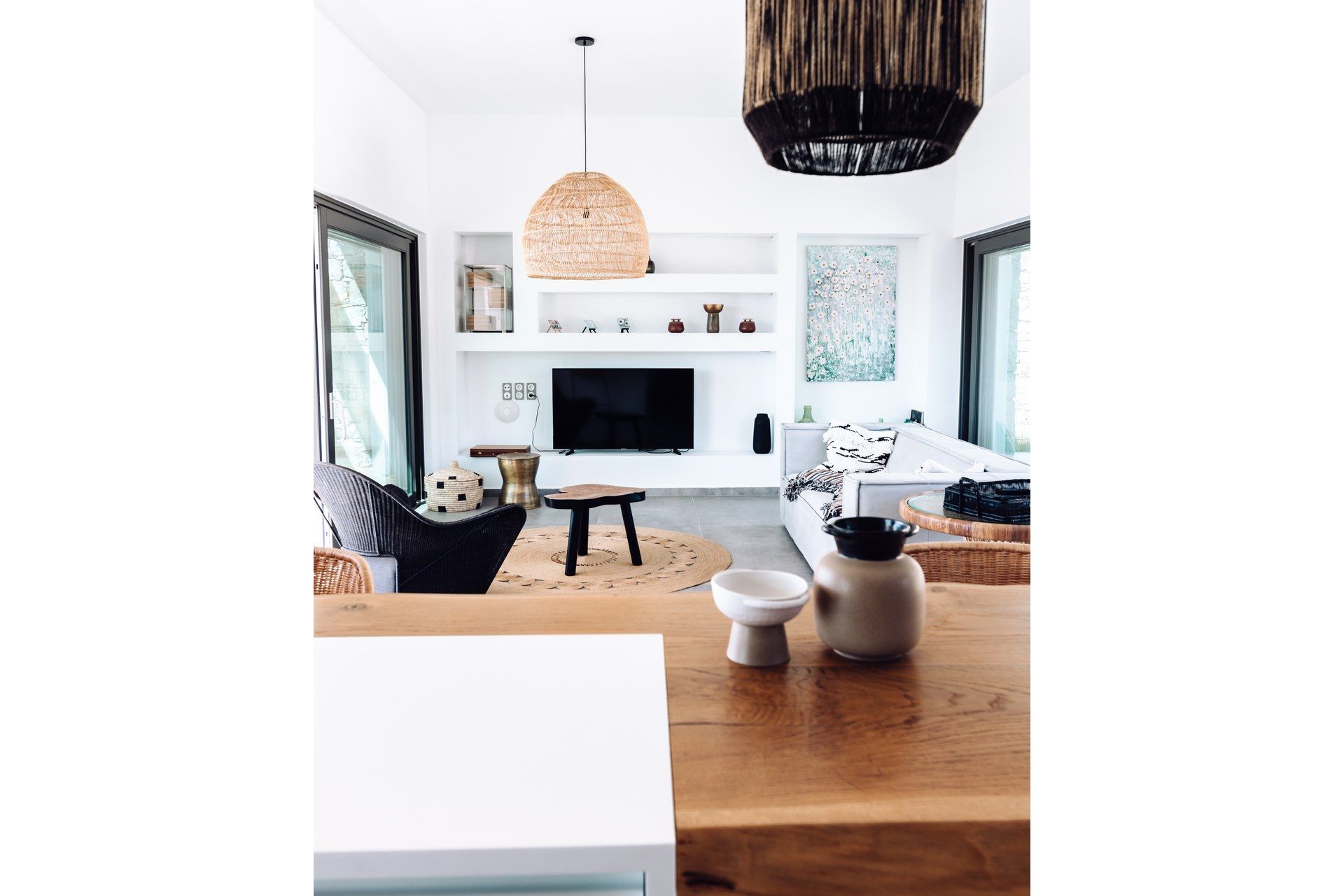 Velour is also located close to several beaches and just a short drive from Naxos Town, offering easy access to dining, shopping, and cultural sites. Essential services are nearby, and the villa includes weekly cleaning, private parking, and access to a shared calisthenics gym for more active days. Whether you prefer to spend your vacation exploring or unwinding at home, this is a space that offers quiet luxury without overstatement.