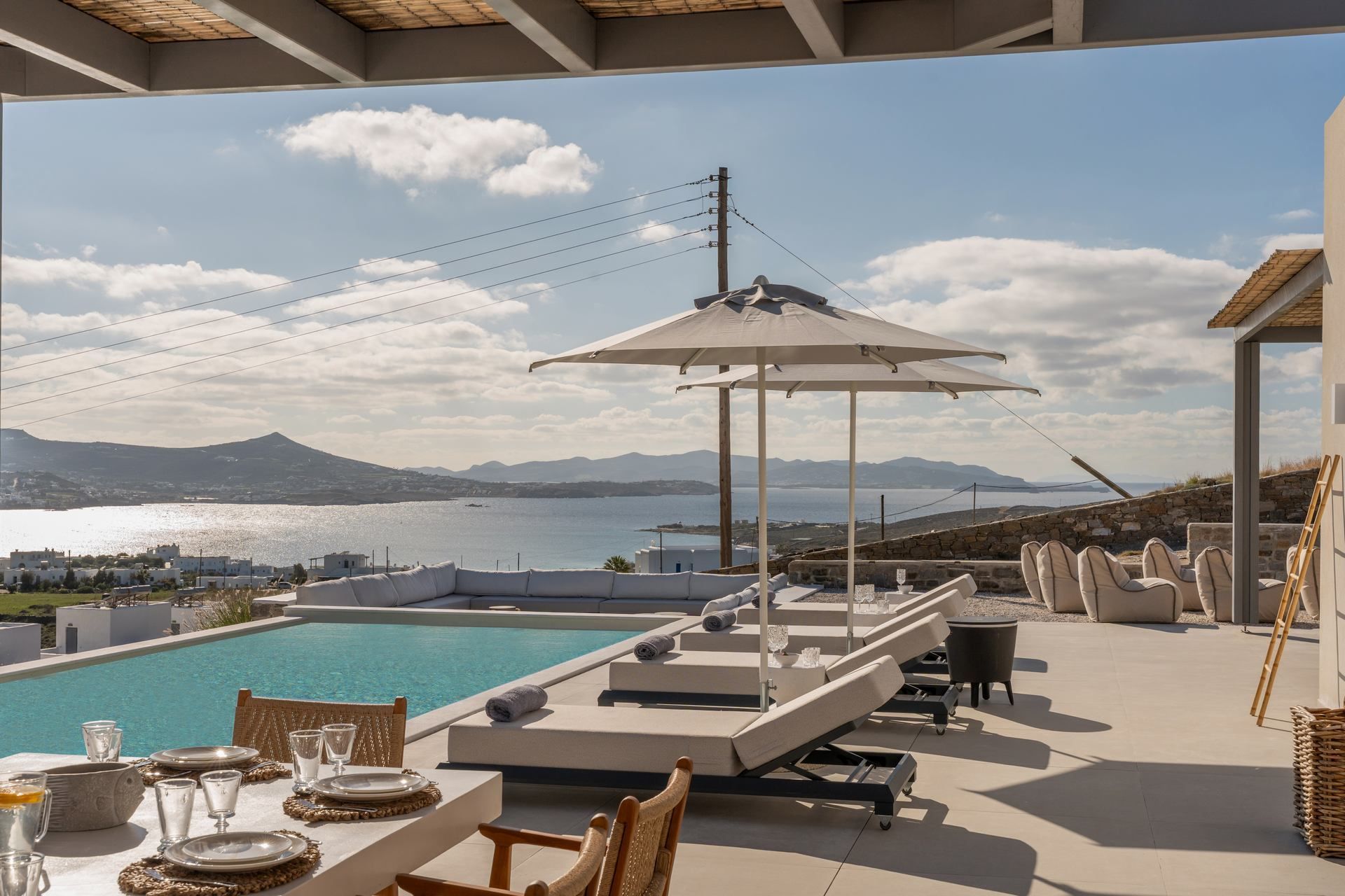 The location is especially convenient for guests arriving by ferry or wanting easy access to Parikia without staying directly in town. The port, local shops, and dining options are all a short drive away, while nearby beaches are ideal for quick swims without much fuss. The property is also well placed for exploring more of Paros, with the road north opening naturally toward Kolympethres and Naousa. In practice, that means Amphitrite offers both the privacy of a larger villa compound and the convenience of staying close to the island’s everyday life.