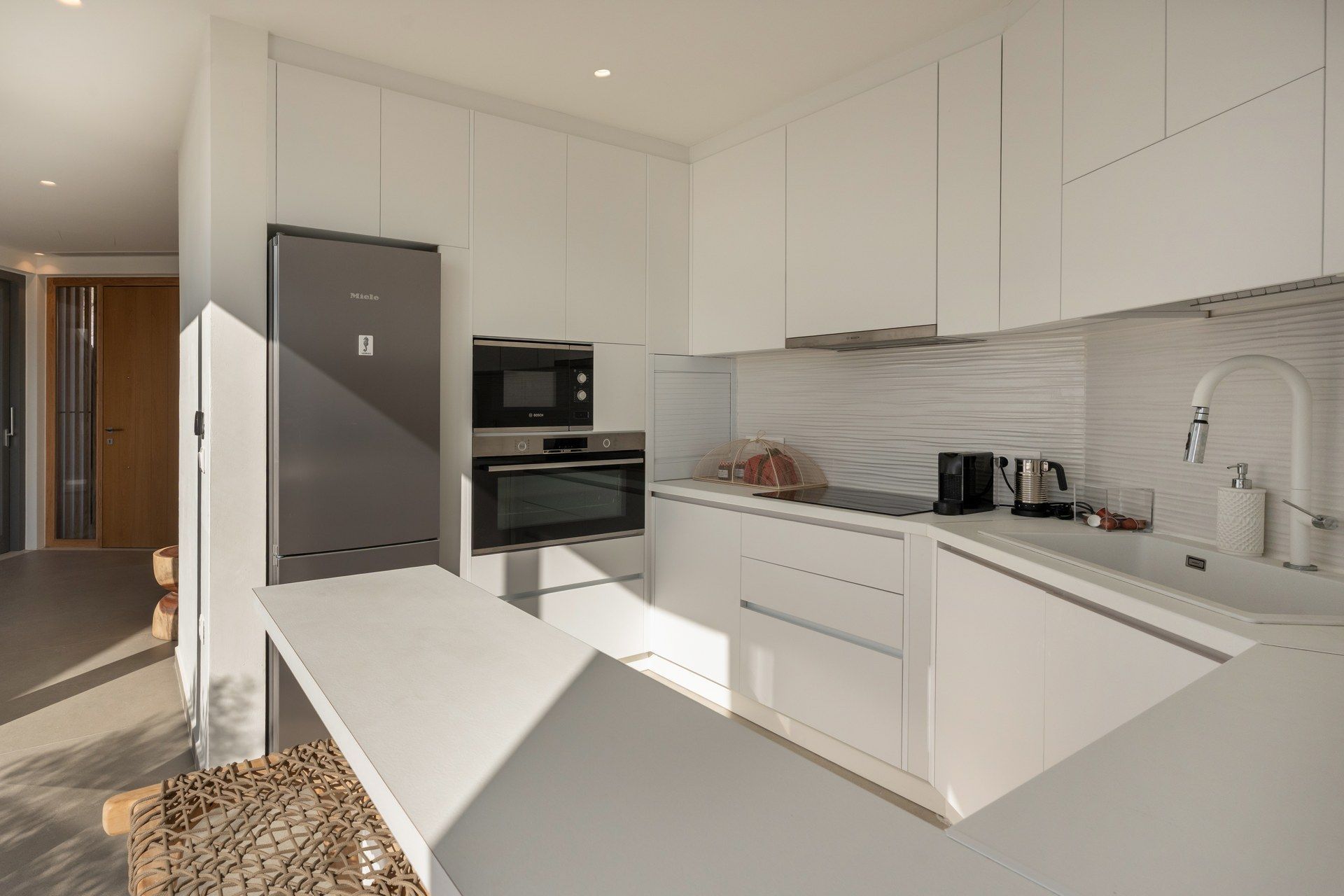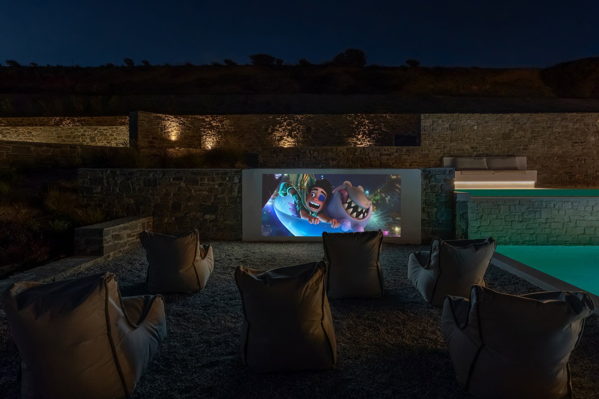The outdoor experience is generous from every angle, with two infinity pools stealing the show from day one. Around them, terraces unfold into dining areas, poolside lounges, sunbathing spaces, pergola-covered seating, bars, and BBQ corners, creating a layered setting that supports group gatherings. The addition of two open-air cinemas gives a more distinctive evening atmosphere and makes the outdoor spaces feel fully lived in well after sunset. Even with all of this, the terraces retain a sense of calm, helped by the clean design, the slope of the land, and the way each villa holds its own outdoor life without breaking the overall flow.
