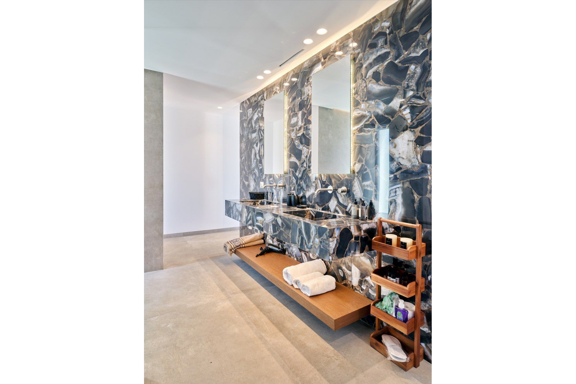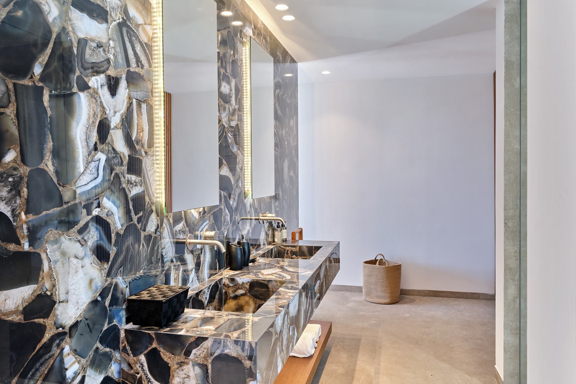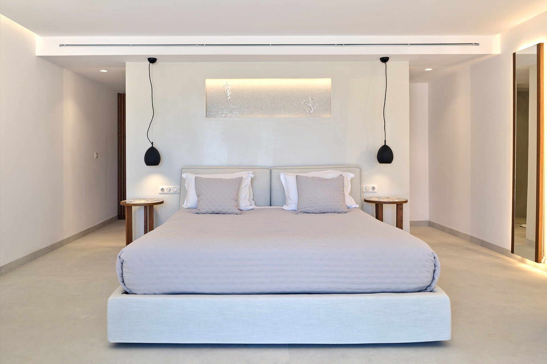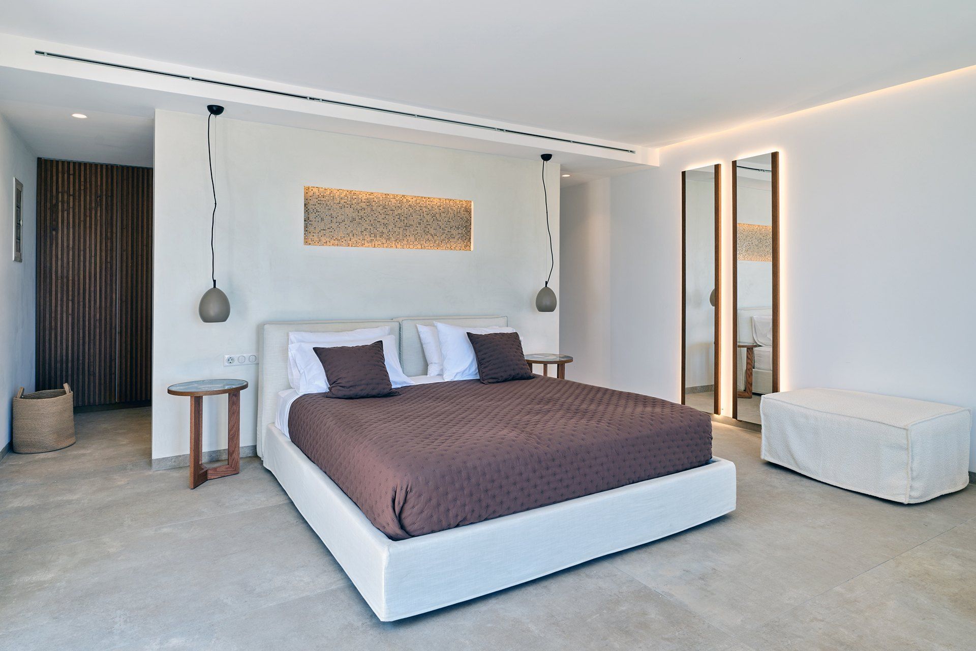 The exterior carries much of the villa’s personality. The pool works as the natural center of the property, but the terrace around it is what makes the space feel so comfortable, creating room for dining, lounging, swimming, and sitting out of the sun. The pool bar and BBQ add a more social energy, and the pergola-covered spaces bring just enough shade and structure to keep the day outdoors. The whole setting feels designed for longer stays.