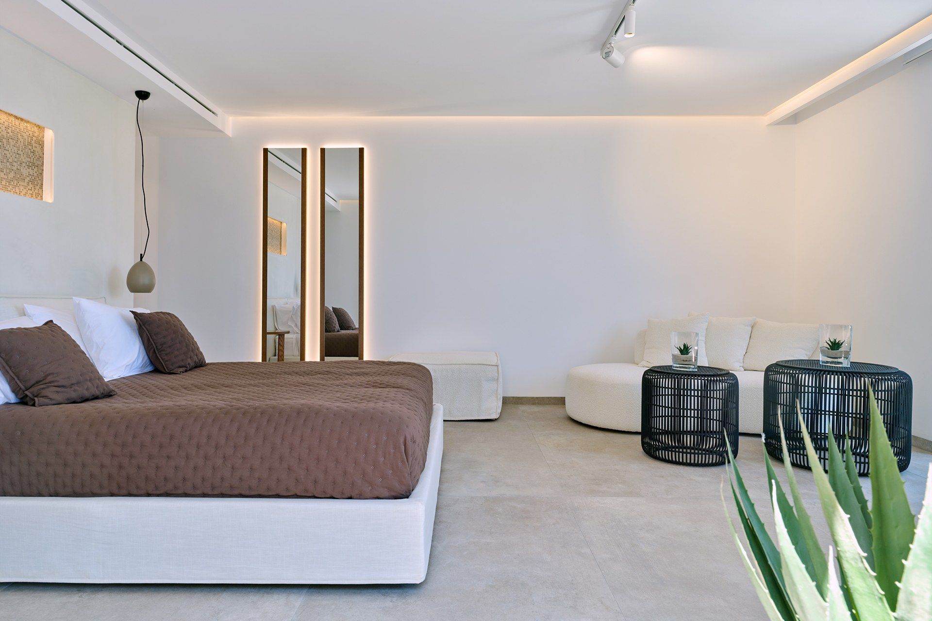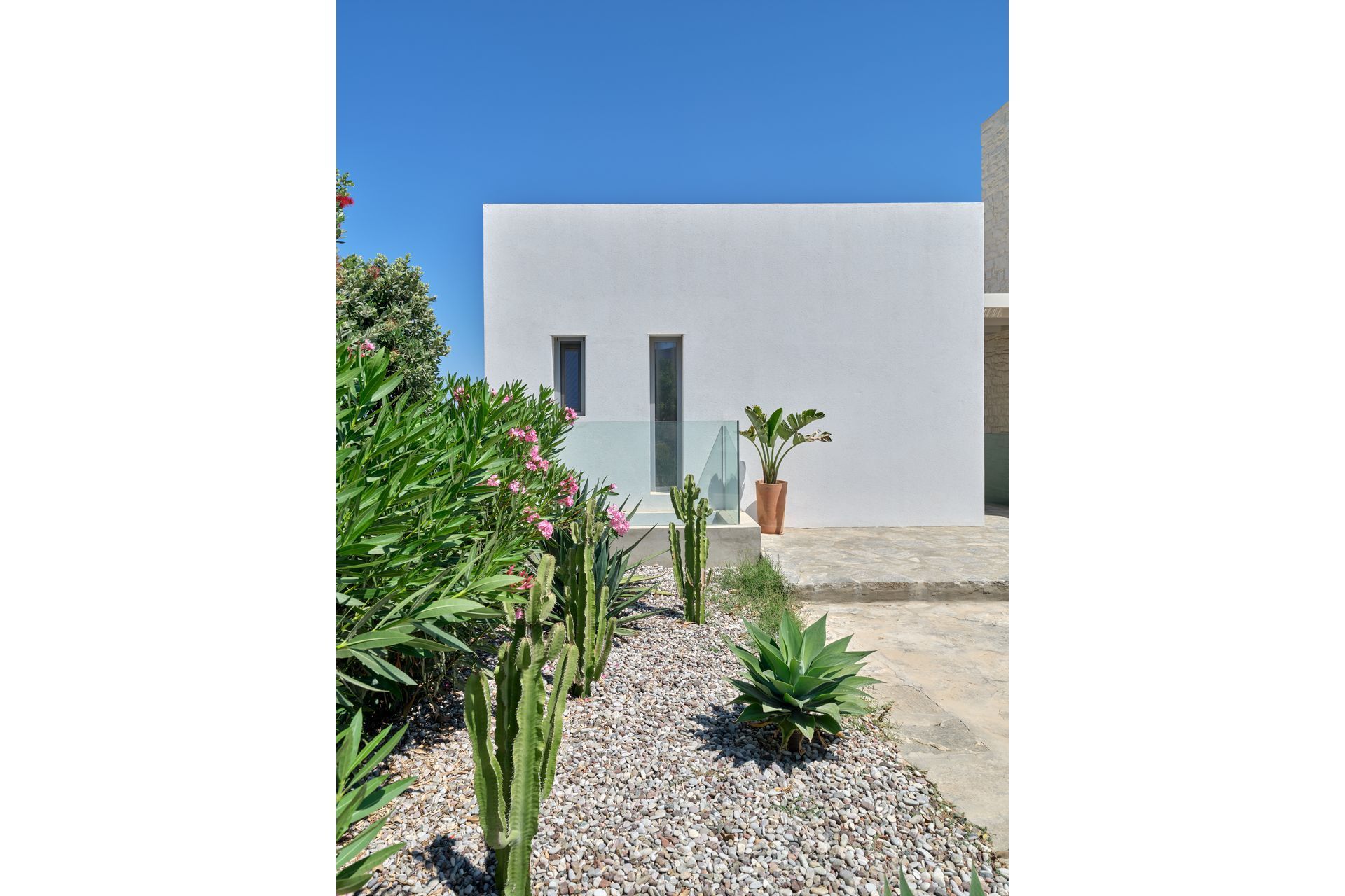 Villa Brigitte sits in Santa Maria, Paros, just a few steps from the shore. Hosting up to 12 guests across six bedrooms, the property is arranged over three levels, with two independent guest rooms, adding flexibility for couples, friends, or families. The architecture stays true to the Cycladic setting, while the overall feel is clean and more contemporary, with sea views, generous terraces, and calm interiors that make the villa feel easy from the moment you arrive.