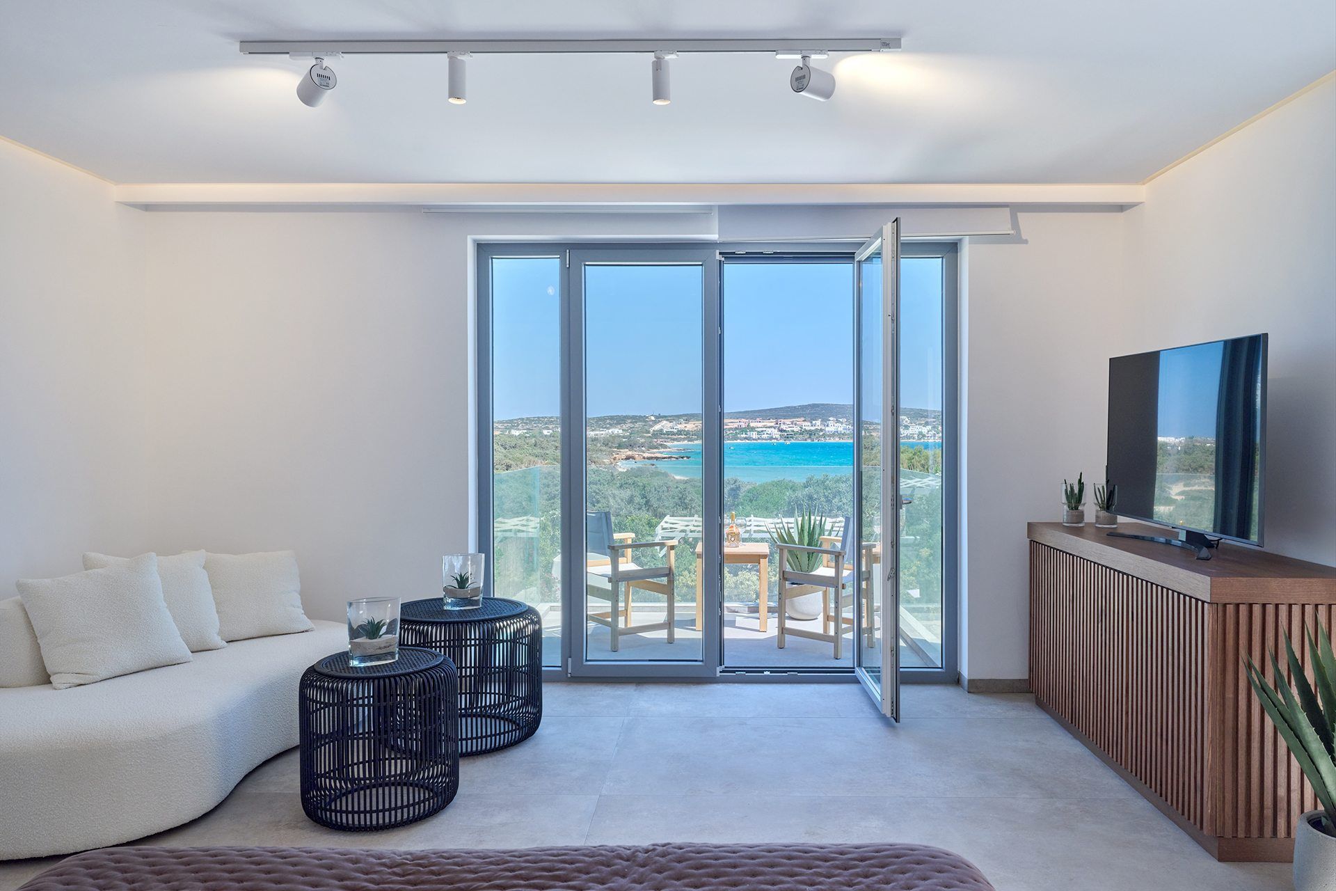 1 living area with direct access to a spacious veranda with sea views