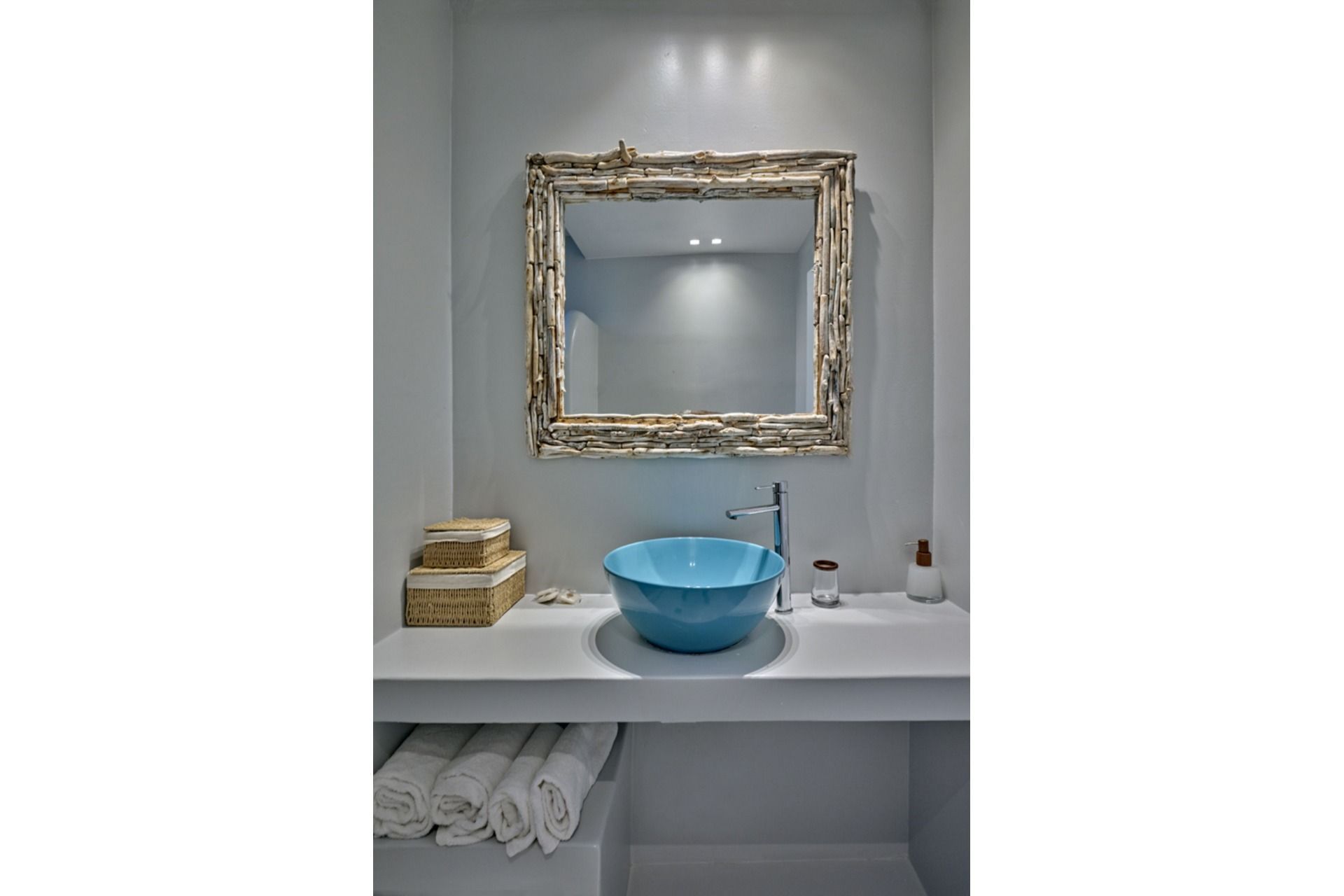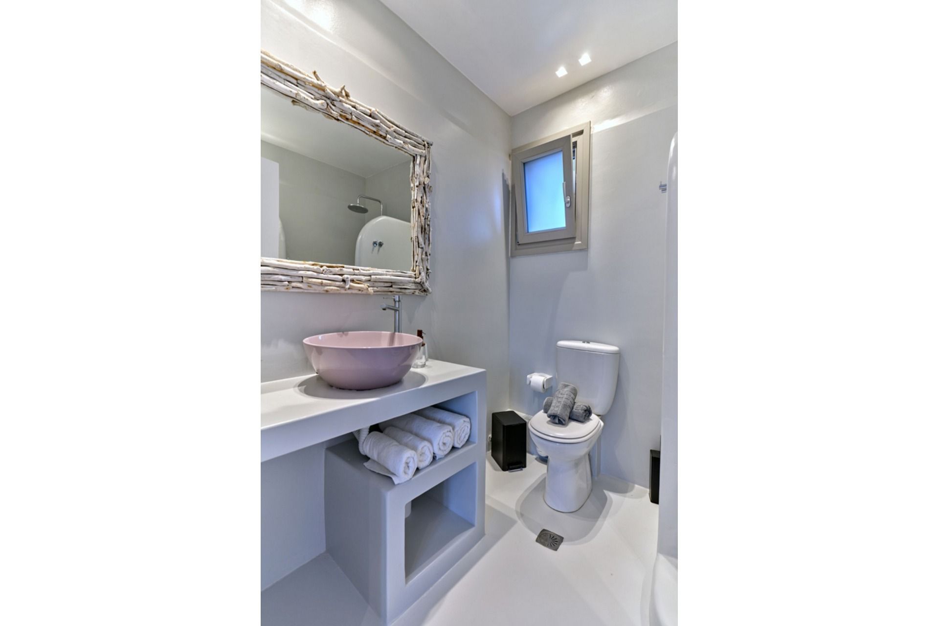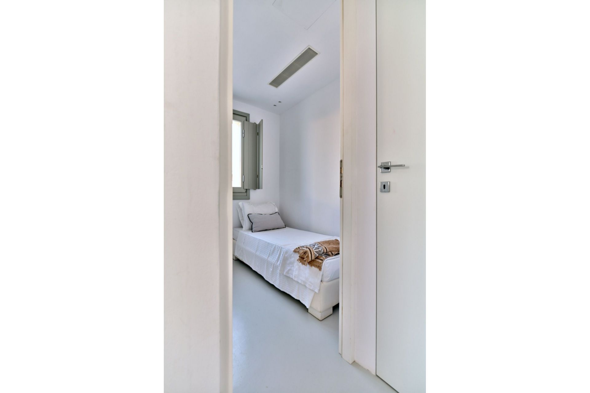 A big part of Caroline’s appeal is how easily the stay extends beyond the villa itself. A quieter, unorganized stretch of Santa Maria can be reached on foot, while the main beach is just a little further along for guests who prefer a more organized setup. Naousa is also within easy driving distance for dinner, shopping, and evenings out. Private parking for two cars is included, and the presence of a staff room may also be useful for longer or more service-oriented stays.