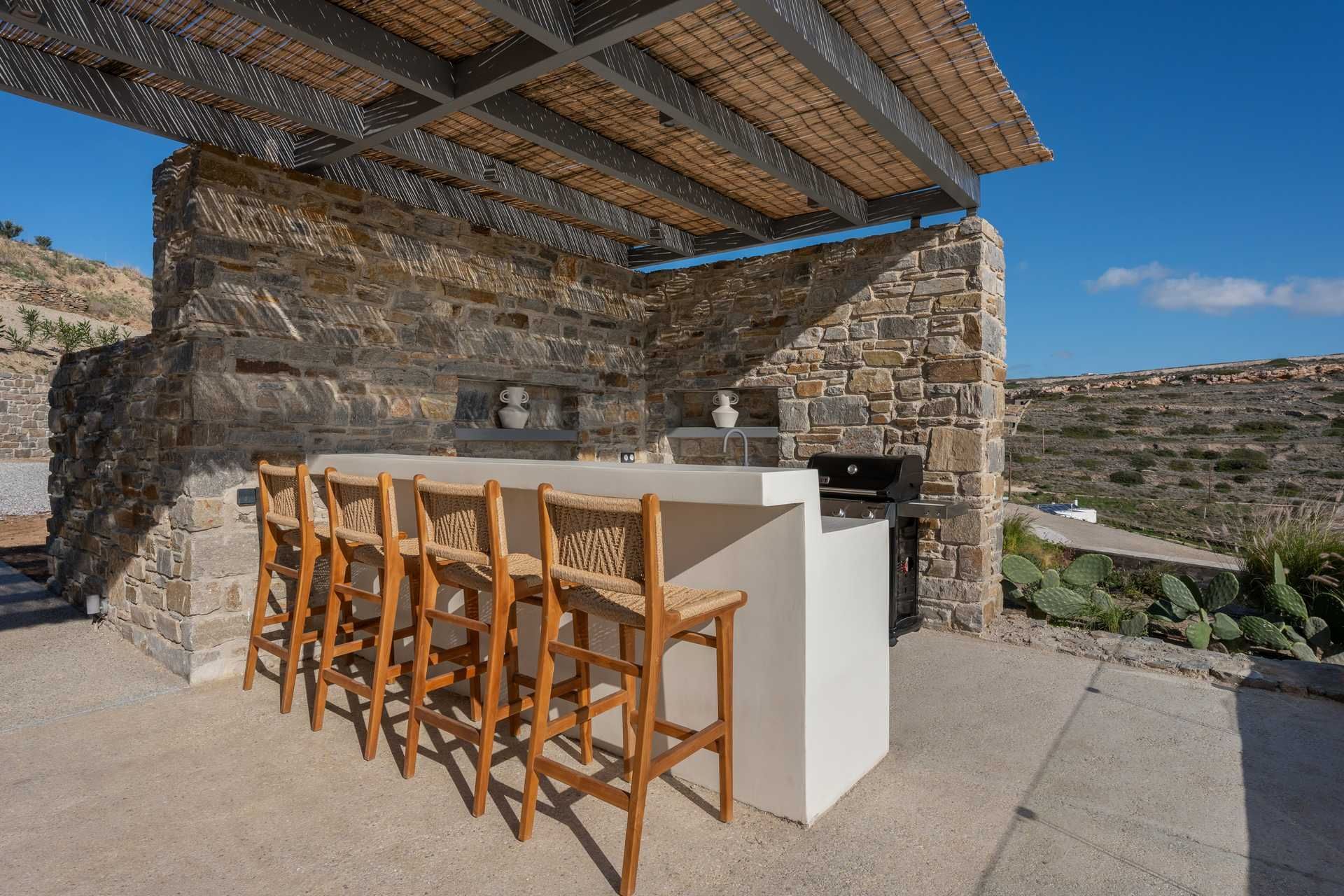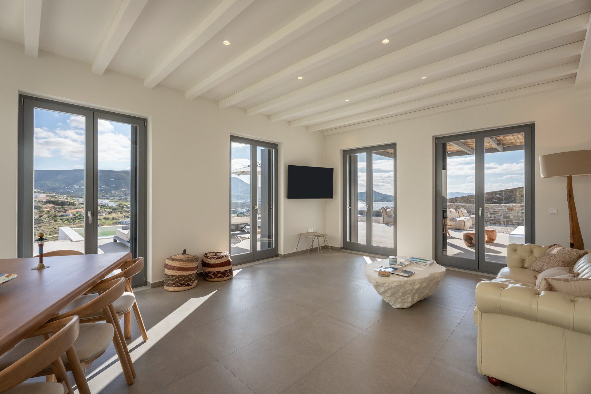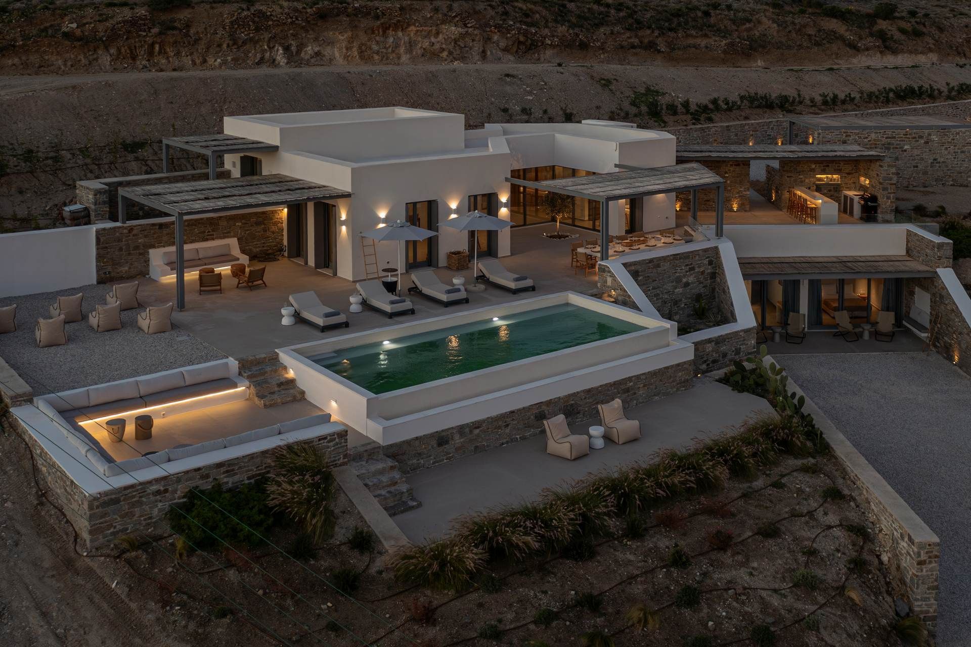 Set in the hills near Parikia, Cyclamen is a modern Paros villa with a broad, sunlit outlook over the sea and the island’s softer landscape. The property hosts up to twelve guests across five ensuites and a flexible living space that can easily become an additional bedroom, making it especially appealing for groups who want comfort, privacy and style. Between the views, the outdoor living, and the easy drive to nearby beaches, the whole experience feels relaxed from the start.