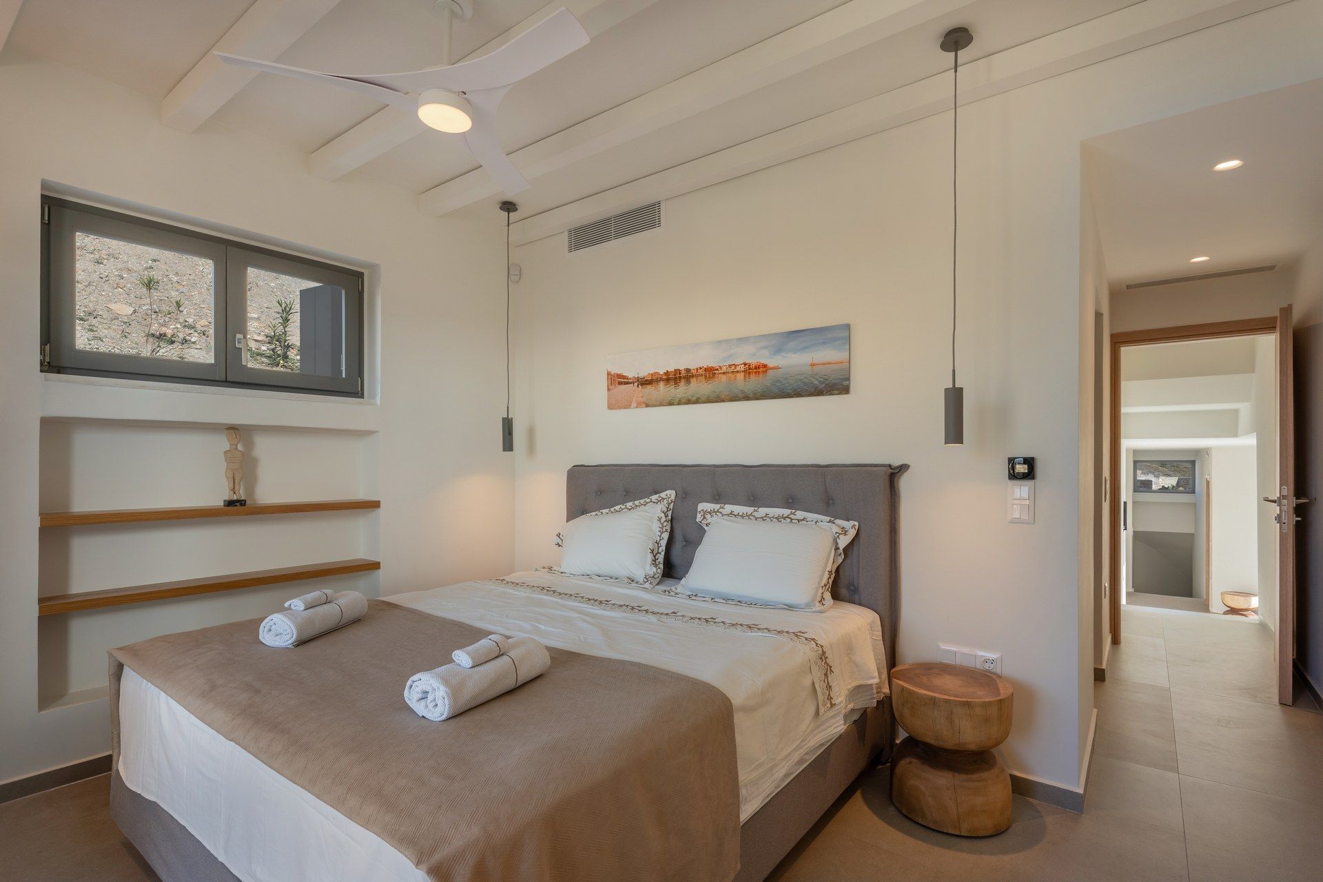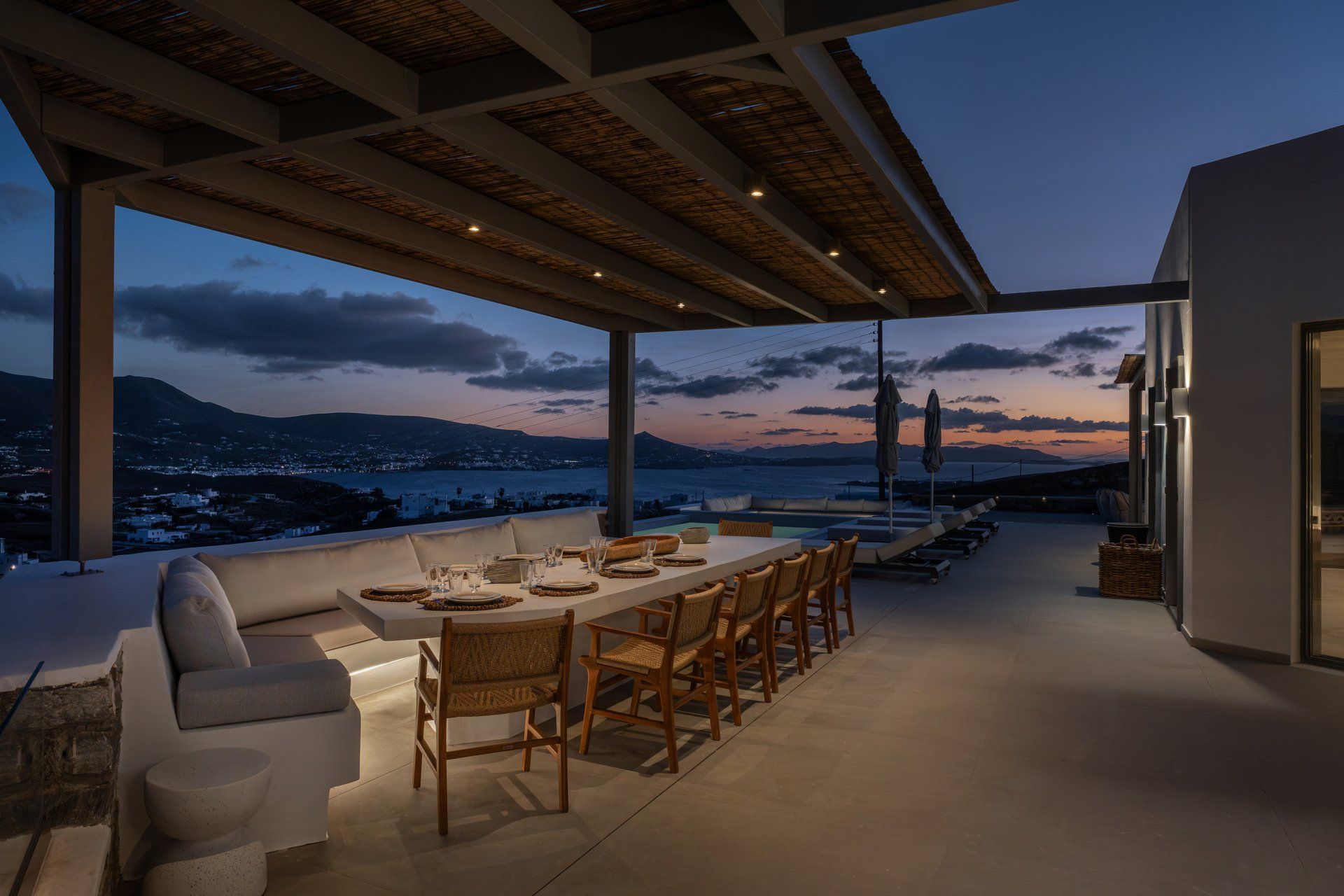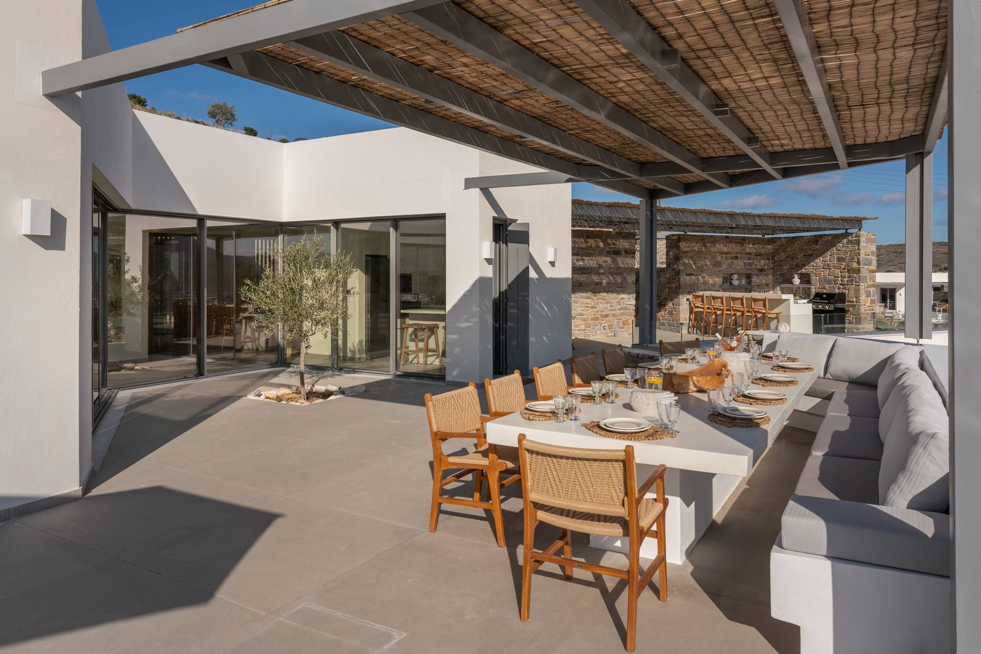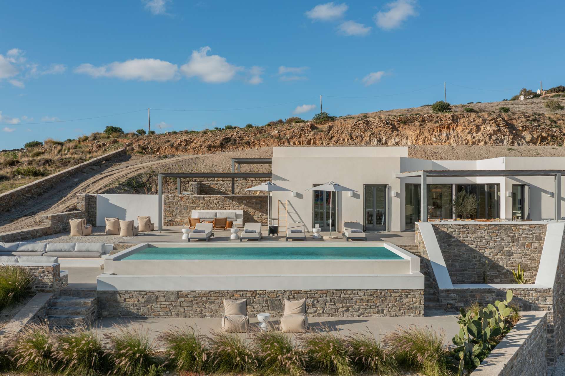 Set in the hills near Parikia, Cyclamen is a modern Paros villa with a broad, sunlit outlook over the sea and the island’s softer landscape. The property hosts up to twelve guests across five ensuites and a flexible living space that can easily become an additional bedroom, making it especially appealing for groups who want comfort, privacy and style. Between the views, the outdoor living, and the easy drive to nearby beaches, the whole experience feels relaxed from the start.