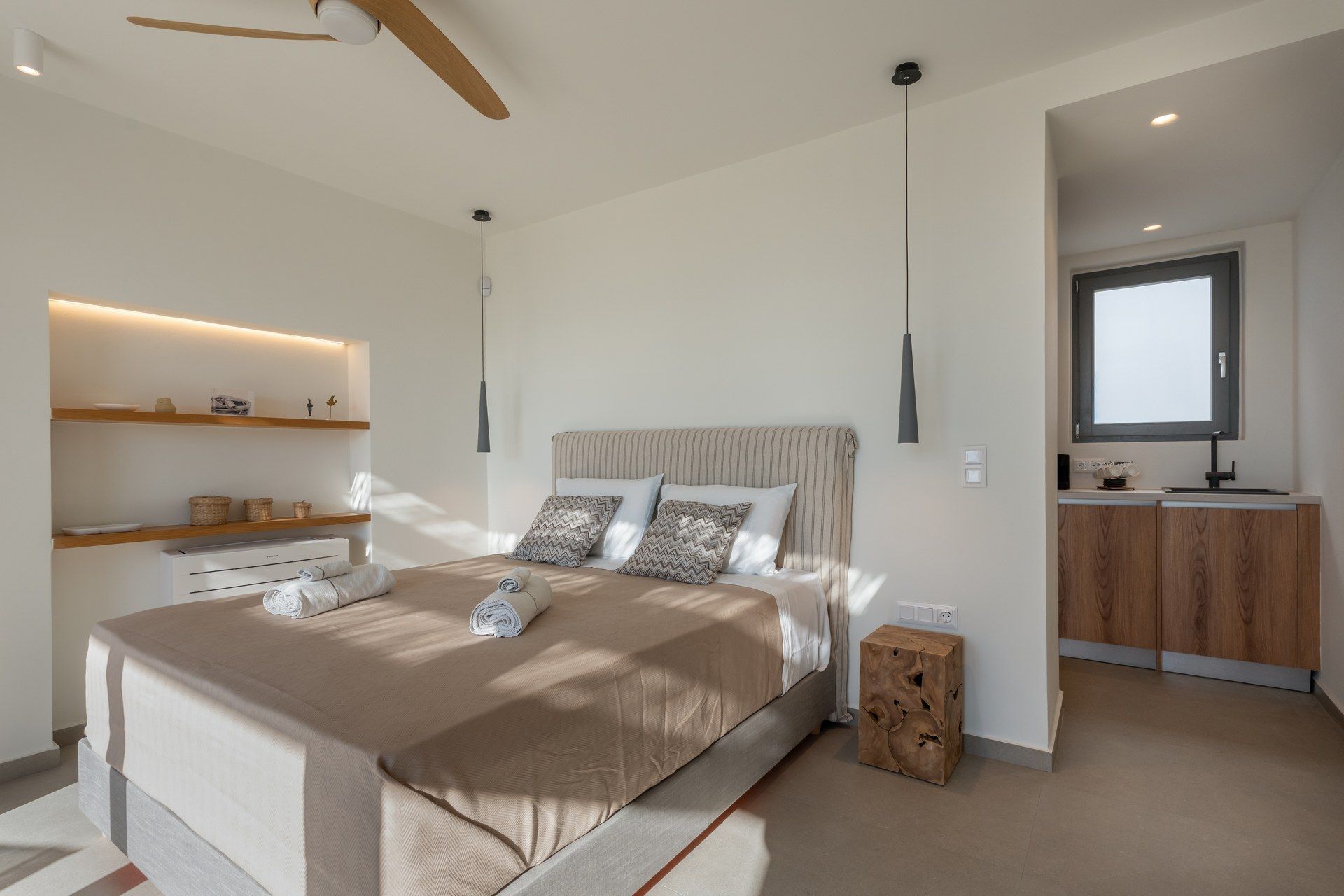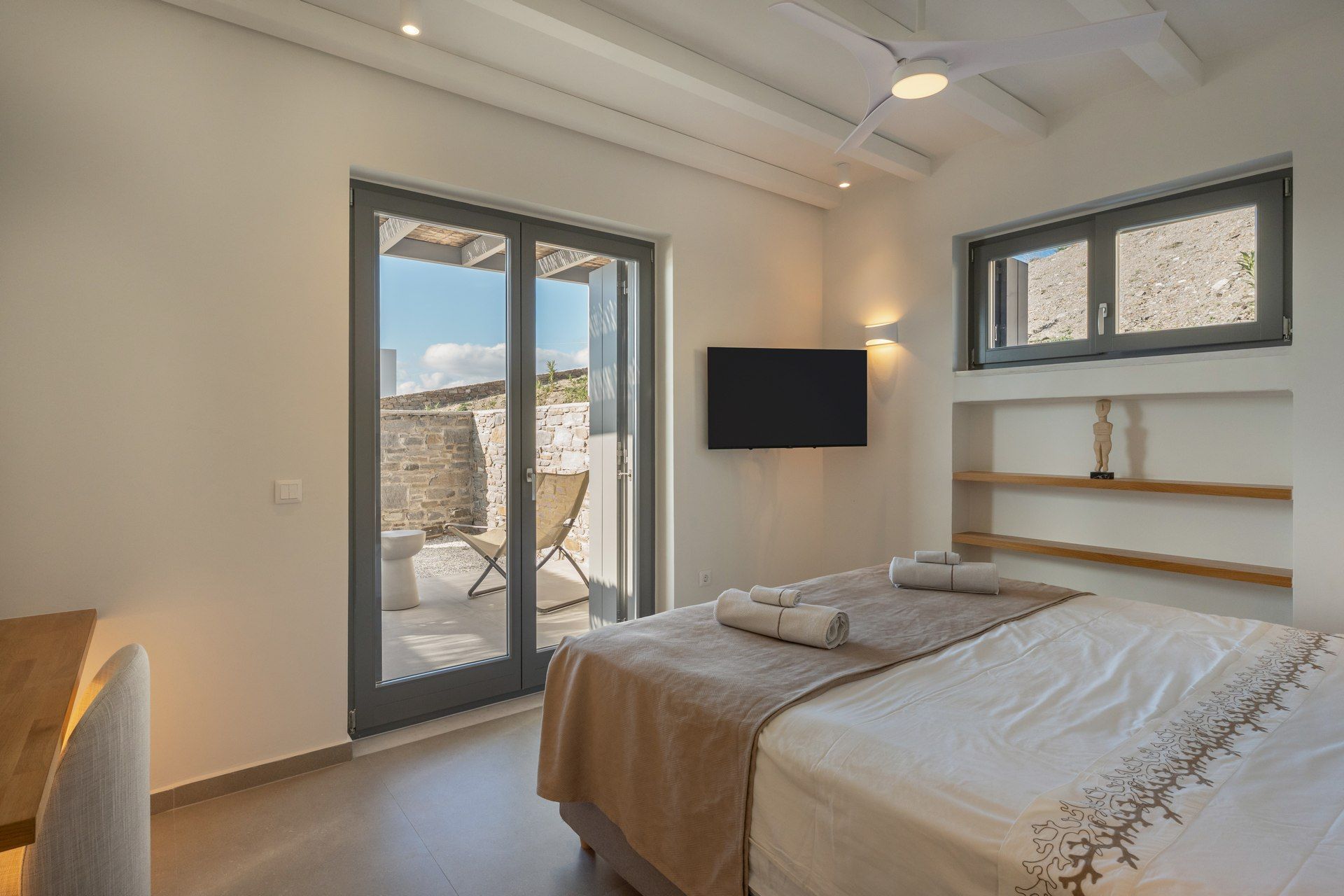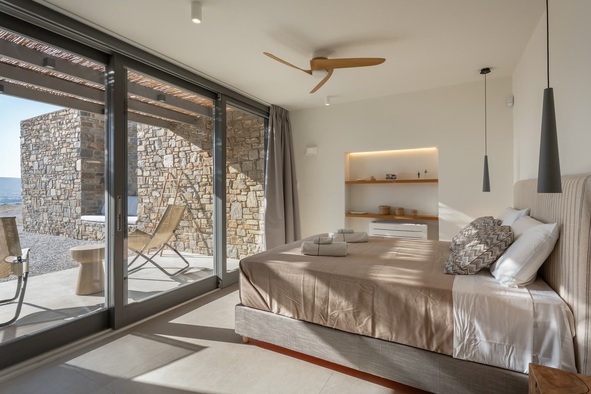 Krios Beach is less than 2 kilometers away for swimming and relaxed seaside dining, while Parikia offers access to shops, restaurants, and the port within a short drive. The area feels like a mix of convenience and calm, making it easy to move between time at the villa and time exploring. Overall, Cyclamen suits guests who value space, simplicity, and a slower, more considered kind of summer.