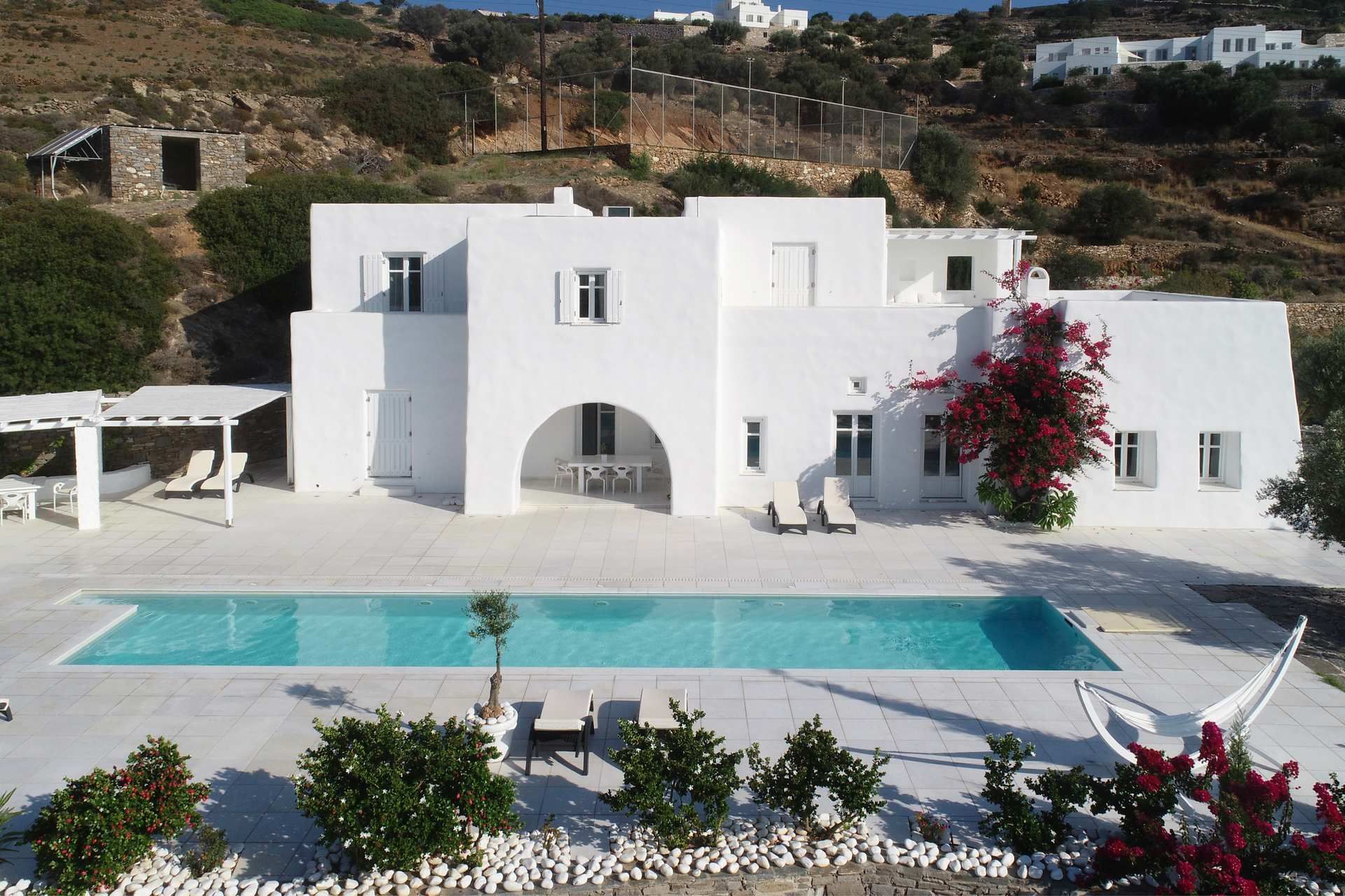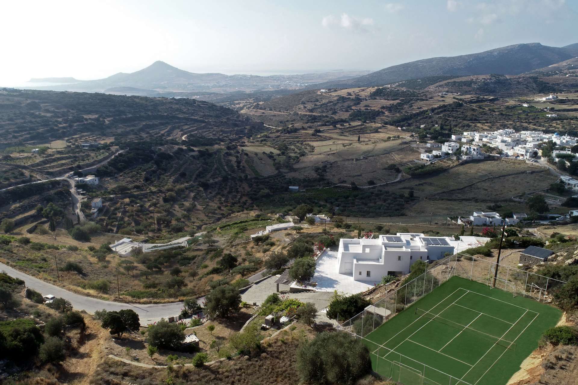 Mirabella is a unique hilltop luxury villa set in 8 acres of land, with open views to Paros’ southeast coast and natural privacy away from indiscreet eyes. You will find it in Kostos, an authentic Cycladic village, perhaps Paros' last undiscovered secret. The villa’s wind-protected location lets you enjoy a fresh, healthy microclimate. It is ideal for up to 12 discerning guests – friends or family - who want to feel close to nature and mix downtime by the pool with playtime on the padel court.