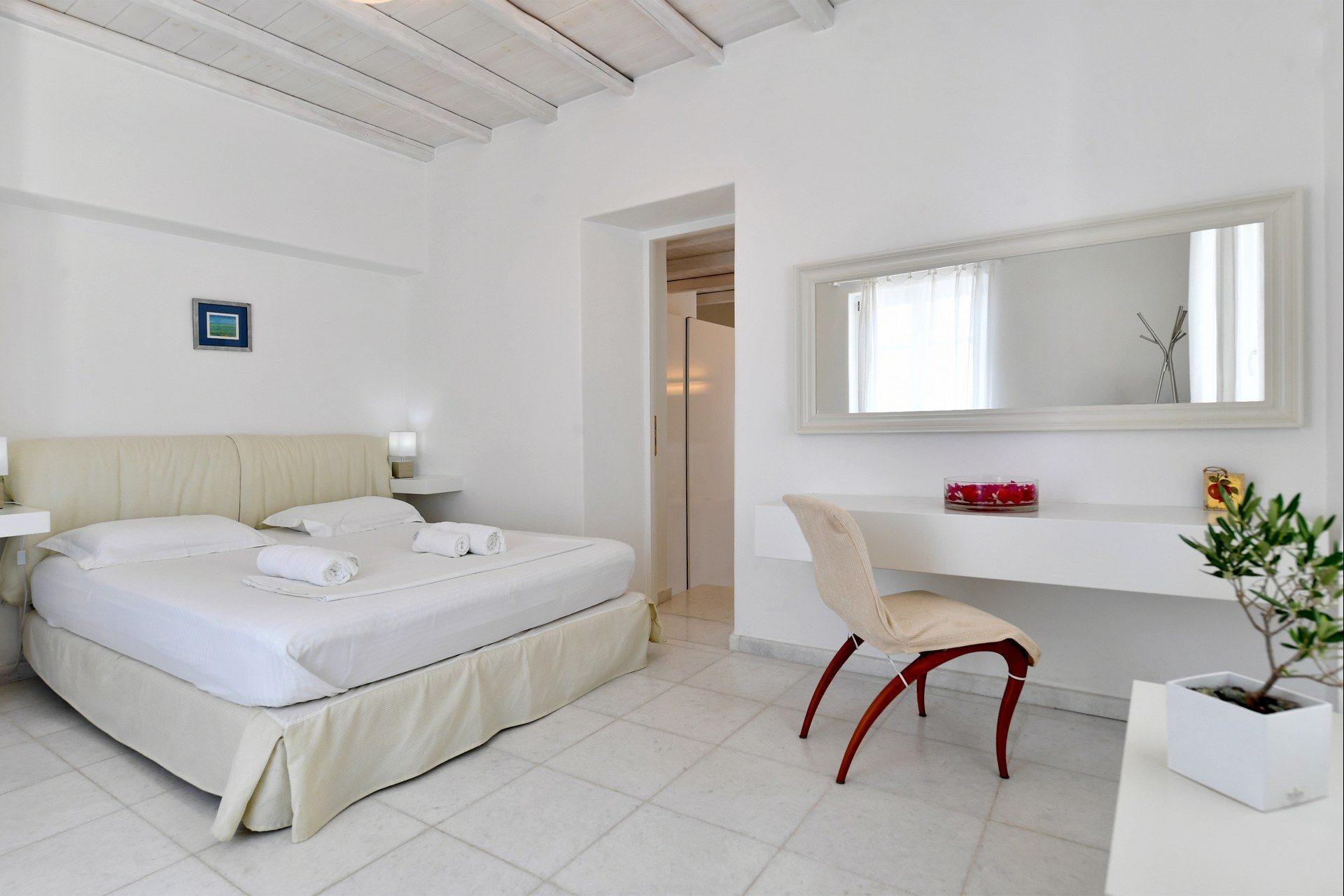 1 master bedroom with king size bed, en-suite bathroom, hairdryer, underfloor cooling system, Wi-Fi, access to pool, mountain view