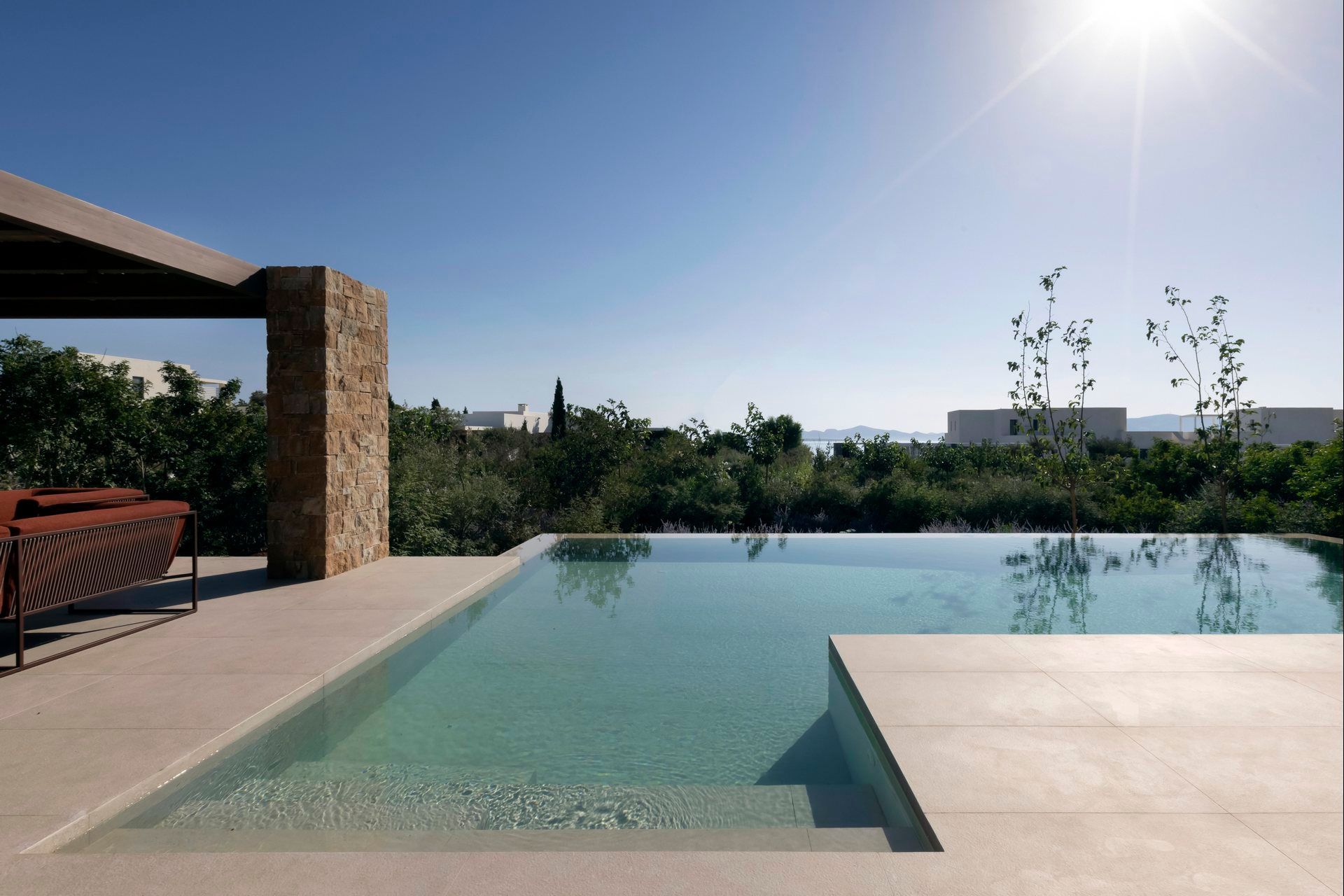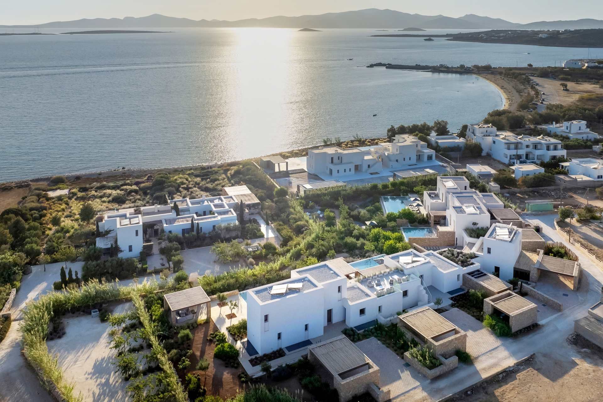 On Paros’ softer south coast, Nausica offers the shape of a private retreat with the spirit of a shared home. Four villas hold fifteen ensuite bedrooms for up to thirty guests, arranged to make space feel fluid and natural. Upper floors catch the blue horizon, lower levels spill into pools and gardens, and shaded corners keep everything connected. It's a place that welcomes company without crowding—and holds its pace, even when plans shift.