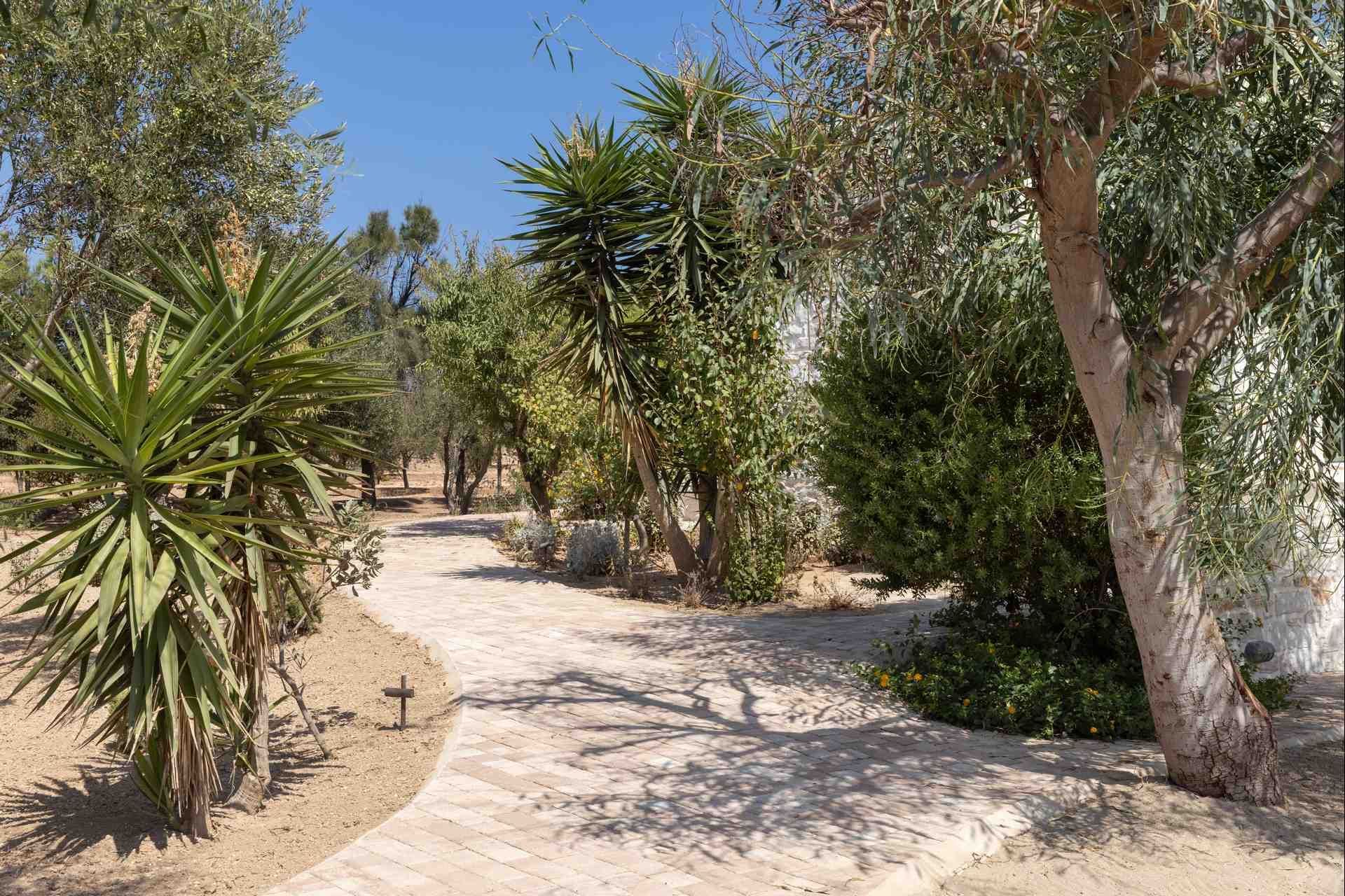 Odelia lets outdoor living spread across the estate in a way that feels more generous and more livable, with each house gaining its own places to swim, lounge, dine, and drift into shade. The gardens and vineyards lend the grounds a softer, more settled atmosphere, while the beach volley court, playground, and ping pong table make the estate especially easy for mixed-age groups. BBQs and outdoor dining areas create the ideal setting for shared meals, but the strongest impression is one of openness and movement, with the sea reached on foot and always quietly present in the background.