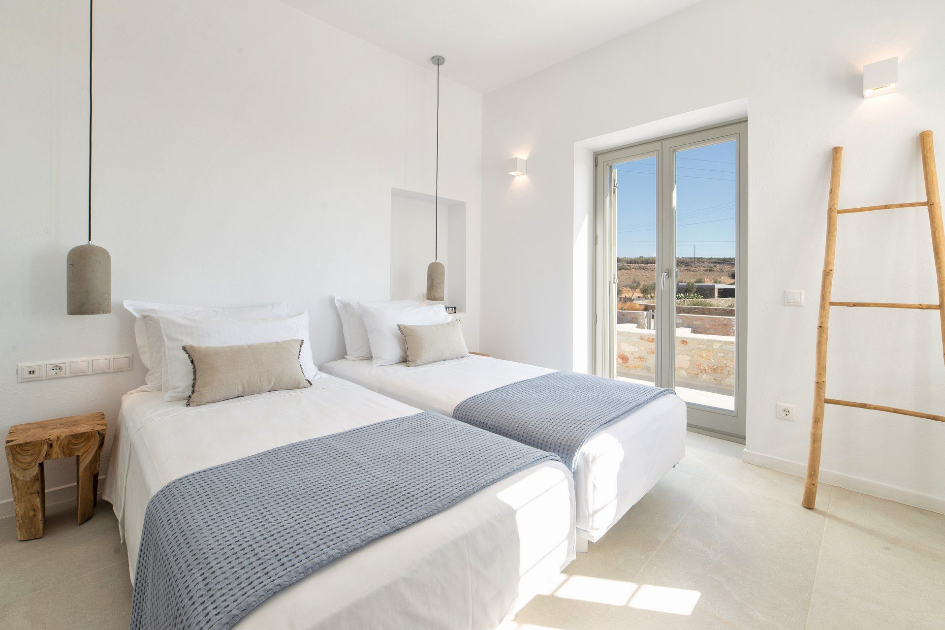 Sugar Cube was designed and constructed by its architect-owners. Bright and modern yet filled with the traditional Cycladic spirit, the villa offers a great base to explore Paros and hop over to Antiparos via the port of Pounta, which is only a 10-minute drive away. Parikia is roughly 15 minutes by car, offering plenty of options for shops, cafés, and evenings out. A car is practical for exploring; if you’d rather not drive, our concierge can arrange private transfers so plans stay easy.