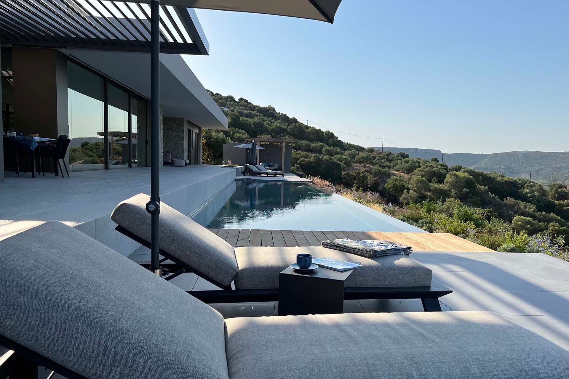 Built of natural materials and stone with a crisp, geometric style, this luxury villa sits in total harmony with the beautiful Peloponnesian landscape, creating a relaxing ambiance. Start your day with breakfast alfresco in the shaded dining area, then drift between lounges and sunbeds as the views open out from the terrace. Your private infinity pool is likely to become the heart of the day, from morning dips to last swims at dusk.