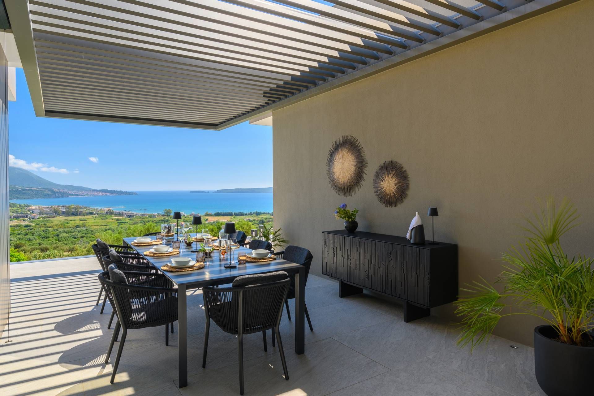 Dining area for up to 8 guests, access to the pool terrace, pool and sea view
