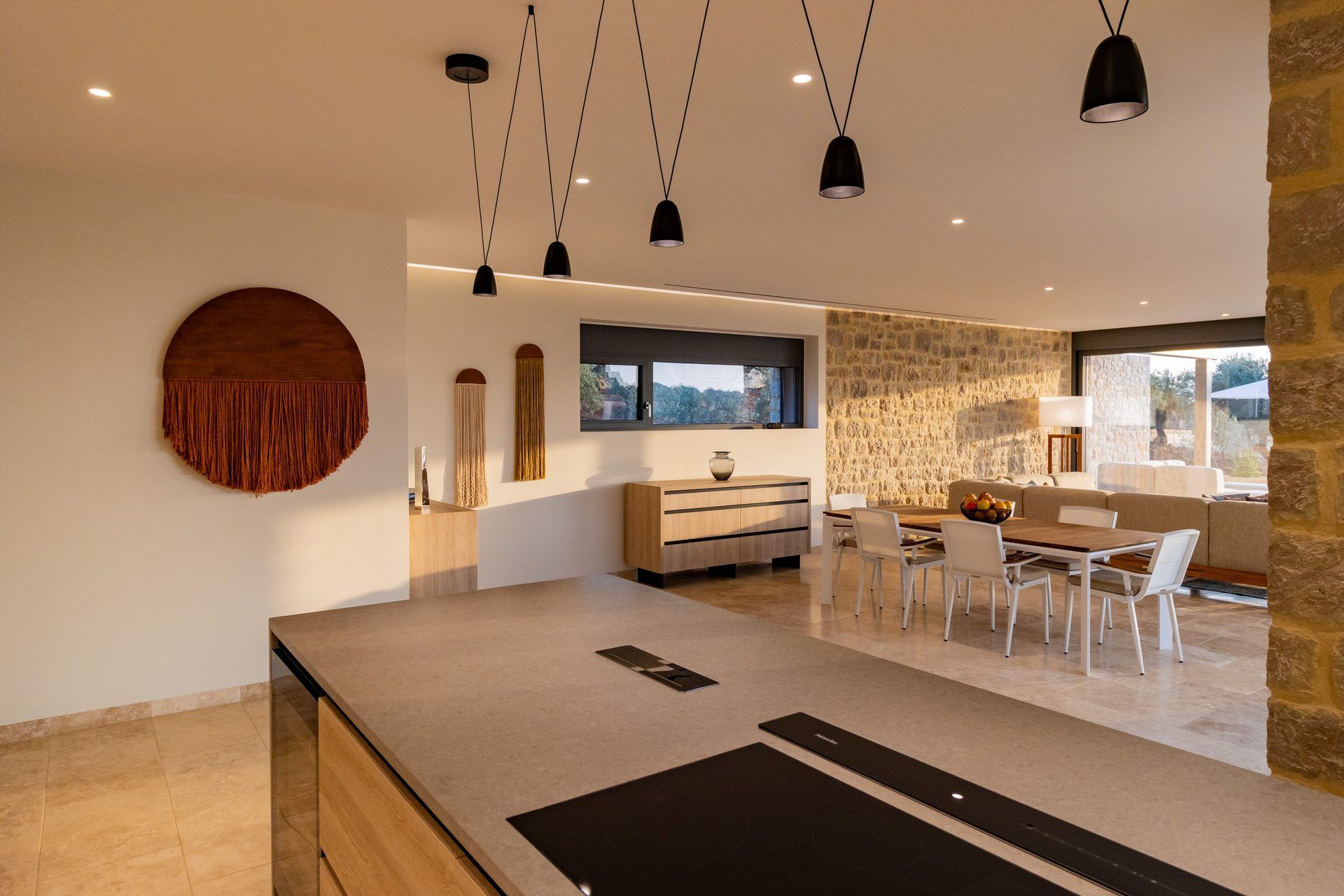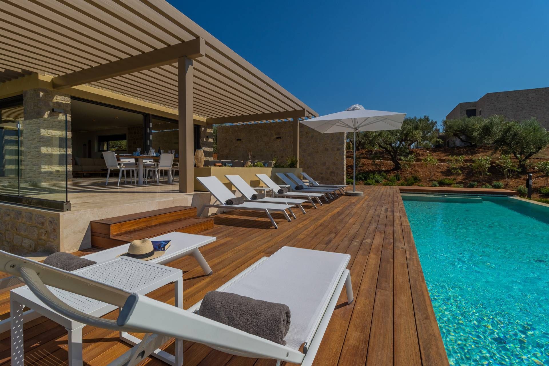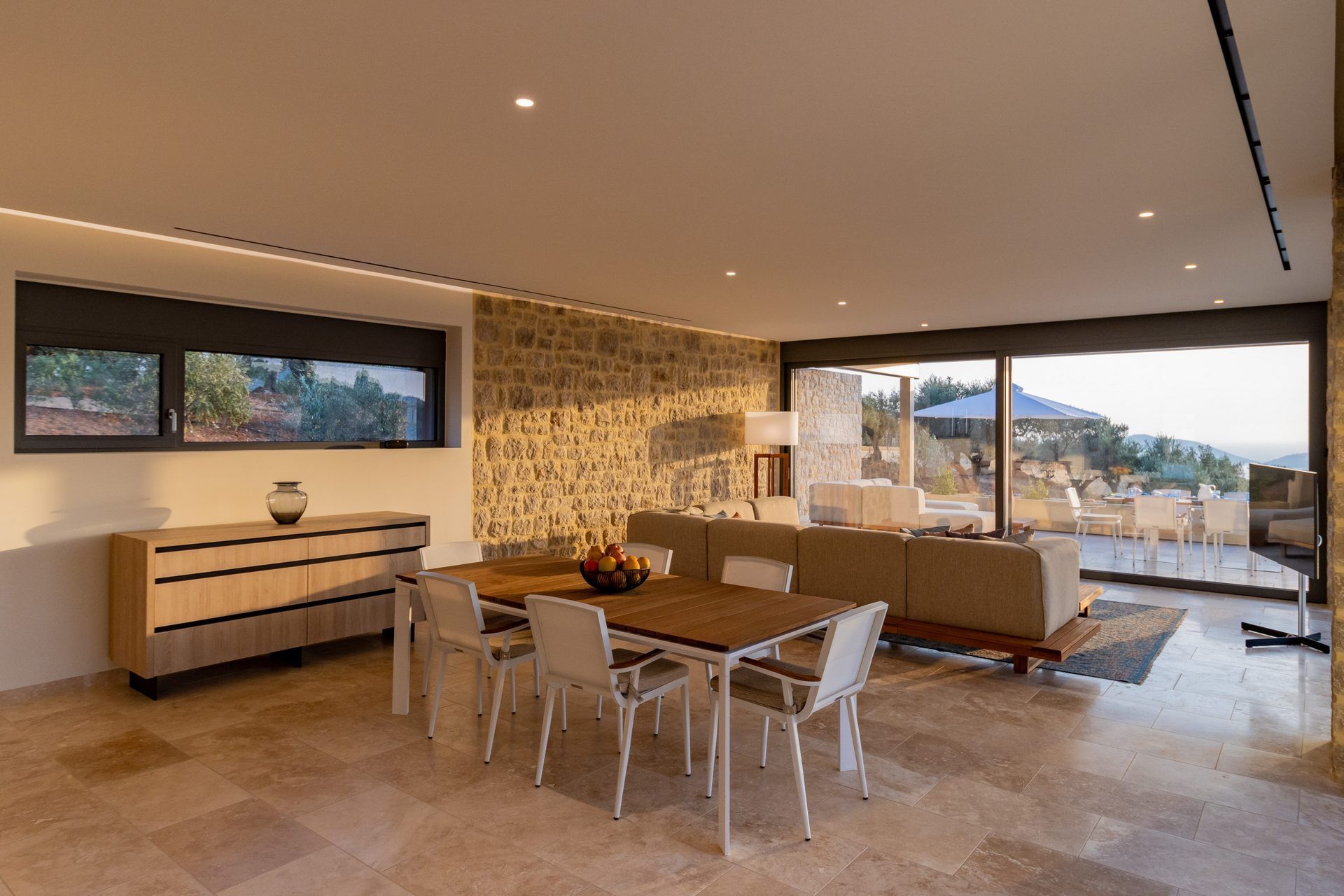 Built of natural materials and indigenous stone, Lillian blends wonderfully with the landscape, making you feel as if it had always been there. The first thing you’ll see from the patio is an impressive infinity pool on a wooden deck surrounded by loungers and umbrellas. A few steps further, you will find the lounge and dining area – totally protected from the sun and winds – waiting to host memorable dinner parties under the starry sky. Don’t forget to make good use of the BBQ and taste local Mediterranean cuisine.