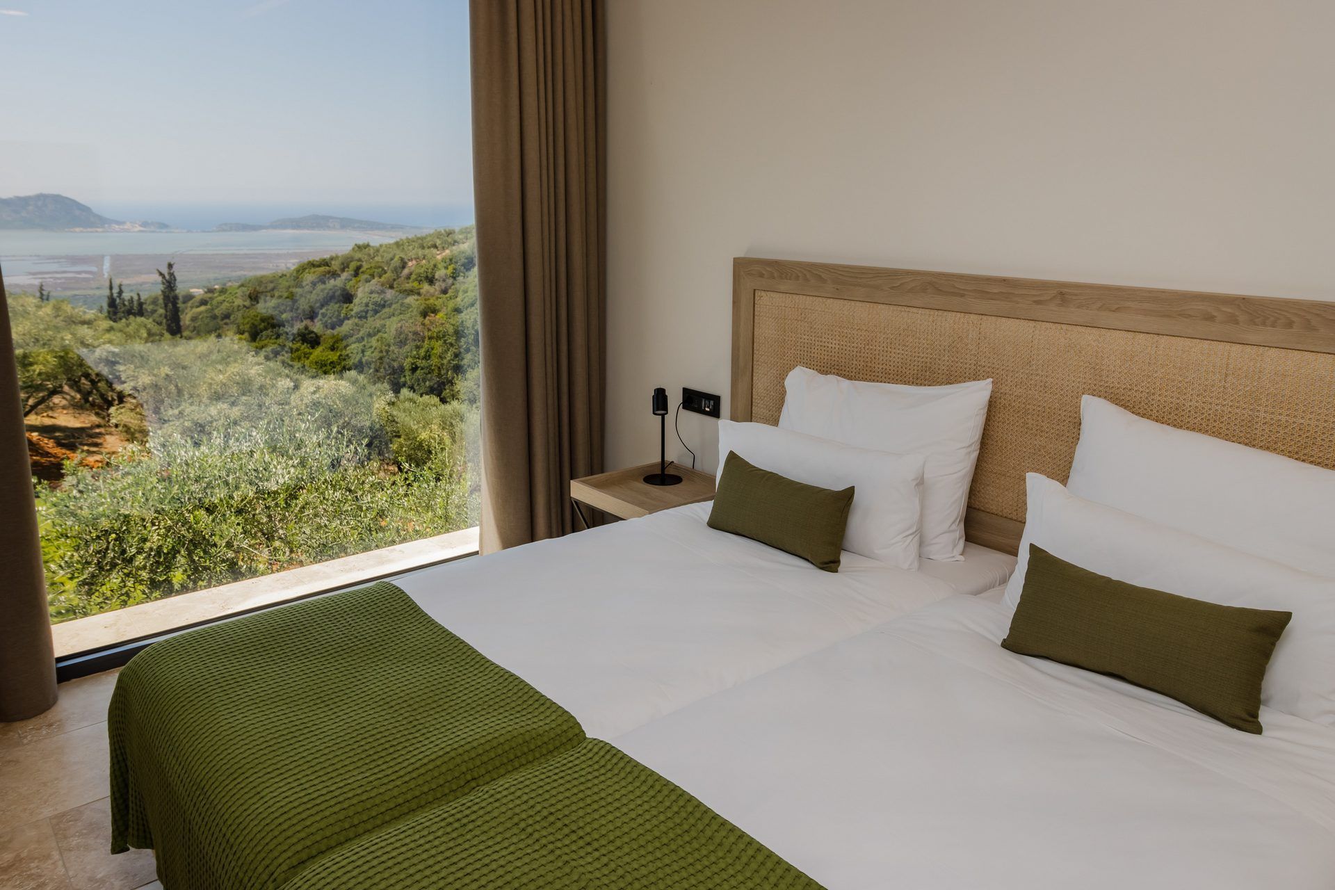 Lillian is a luxury Peloponnese four-bedroom villa, perfect for a group of family and friends that want to indulge in privacy. Standing gracefully on a hilltop surrounded by local trees, the villa offers stunning vistas of the sparkling sea and the Gialova lagoon. Its prime location grants easy access to the most pristine beaches, like Voidokilia, and the historic Pylos town, so you can fully explore the best of the southwest Peloponnese at your own pace.